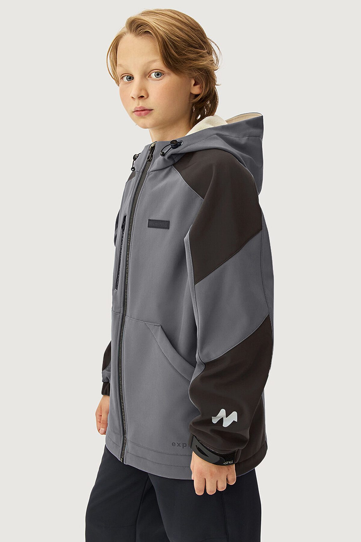 Ветровка для мальчика СКАЙЛАЙН из Softshell идеально подходит активным детям на прогулках, которые много двигаются и не сидят на месте. Softshell - это инновационный материал нового поколения, внешний слой которого защищает от влаги и ветра, внутренний слой из флиса сохраняет тепло и отводит лишнюю влагу, а промежуточный мембранный слой имеет хорошую паропроницаемость и позволяет коже дышать. Softshell приятный на ощупь, легкий и эластичный материал, не сковывающий движения ребенка.Функционал: - центральная застежка с влагоотталкивающей молнией, - ветрозащитная планка, - карман на молнии, - нижние карманы, - капюшон с кулисой для регулировки объема. Мы все продумали до мелочей, поэтому модель оснащена:- кулисой по низу для регулировки объема изделия, - манжетами на резинке с дополнительной регулировкой на липучках для защиты от проникновения холодного ветра, - светоотражающими элементами для безопасности ребенка в темное время суток.Когда носить? Весной и осенью с теплой поддевой, а также прохладным летом.Температурный режим от +5°С до +15°С.Уход за изделиями из Softshell аналогичен уходу за изделиями из мембранной ткани и достаточно прост — большинство загрязнений легко удаляются влажной салфеткой или щеткой с водой. Возможна машинная стирка при 30°С с использованием жидких средств для мембранной ткани. Отжим на минимальных оборотах, сушить на вешалке в расправленном виде.