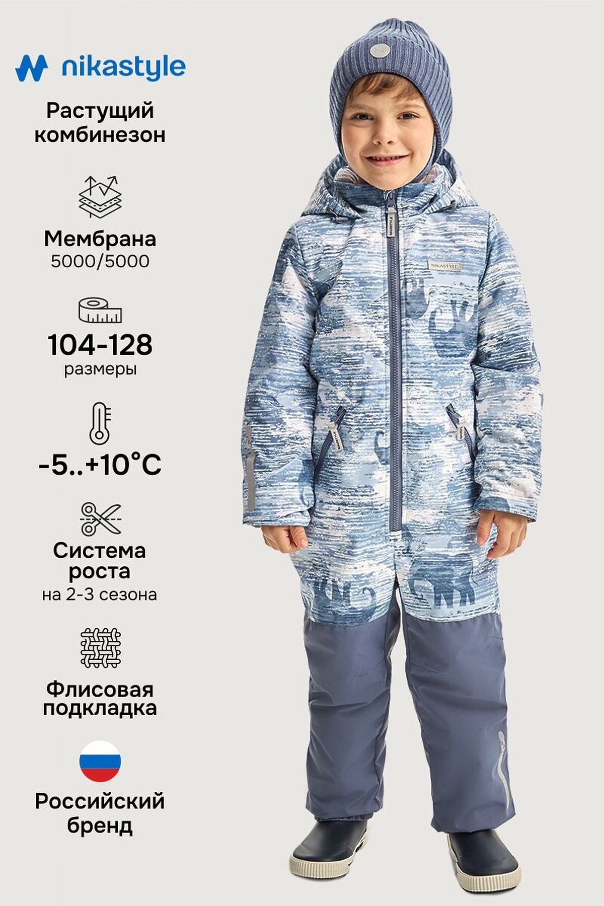 Комбинезон САВАННА с системой роста на один размер (длина рукавов и брючин увеличивается на 4-5см).Комбинезон из мембранной ткани 5000/5000 с водо- грязеотталкивающей технологией TEFLON.Мембранная ткань - это непродуваемый и водонепроницаемый материал, который надежно защитит от ветра и влаги. Благодаря дышащим свойствам мембраны ребенку будет комфортно в любую погоду, и он не вспотеет. Ткань обработана снаружи экологически чистым протектором TEFLON для защиты от воды и грязи. Мембрана в сочетании с утеплителем нового поколения FIBERlite сохранит тепло во время прогулок, позволит телу дышать. Флисовая подкладка отводит влагу и имеет хорошие теплоизоляционные свойства. Функционал: - центральная застежка и карманы на молнии, - ветрозащитная планка, - капюшон с кулисой для регулировки объема, - резинка на спинке для создания силуэта, - внутренние бретели для возможности снять верхнюю часть изделия в помещении. Мы все продумали до мелочей, поэтому модель дополнительно оснащена:- трикотажными манжетами, - флисовой подкладкой до талии, - силиконовыми штрипками, - светоотражающими элементами для безопасности ребенка в темное время суток. Область колен и шов сидения проклеены, низ брюк на резинке.В комбинезоне предусмотрена СИСТЕМА РОСТА. Удлинить рукава и штанины можно, удалив строчку на подкладке и комбинезон подрастет вместе с ребенком. Комфортная температура эксплуатации от -5°С до +10°С. Рекомендуем приобрести комплектом аксессуары, обувь и другие вещи из капсулы в карточке товара, которые отлично сочетаются с изделиями коллекции.