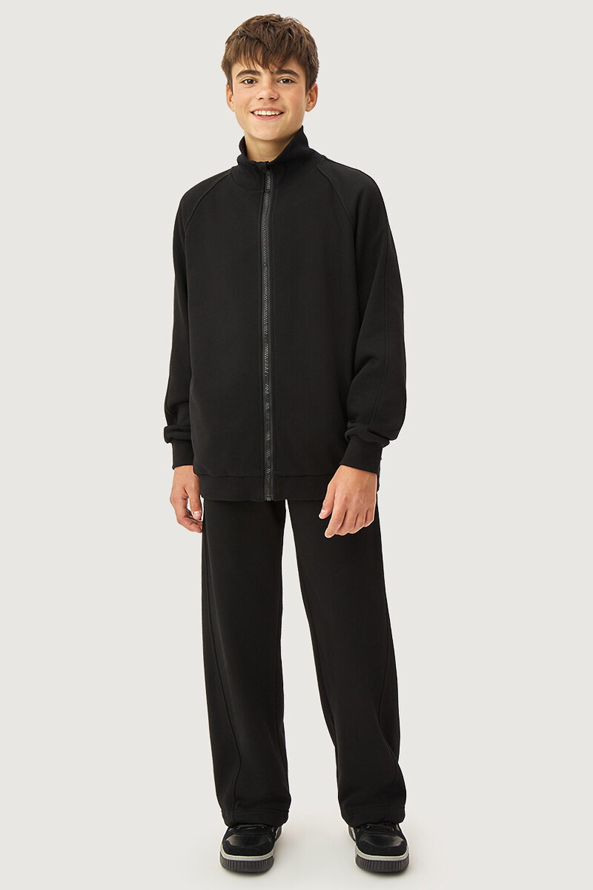 Спортивный костюм ФИЗ-РА из петельного, плотного хлопкового трикотажа. Состоит из двух предметов — толстовки и брюк. Толстовка свободного силуэта, с воротником-стойкой, на молнии, с карманами в рельефах. Манжеты, пояс и воротник из трикотажного полотна «кашкорсе». Брюки свободного силуэта, с боковыми карманами. Пояс из трикотажного полотна «кашкорсе», с резинкой и со шнуром, для дополнительной регулировки объема по талии. Низ брюк с утяжкой для регулировки ширины.Костюм можно носить в качестве самостоятельной одежды при t° от +10°С до +20°С, а также в качестве второго слоя под верхнюю одежду.Прекрасный вариант для занятий спортом, прогулок и активного отдыха, в поездках просто незаменим. Комплект станет любимой вещью в гардеробе вашего ребенка. Рекомендуется предварительная стирка.