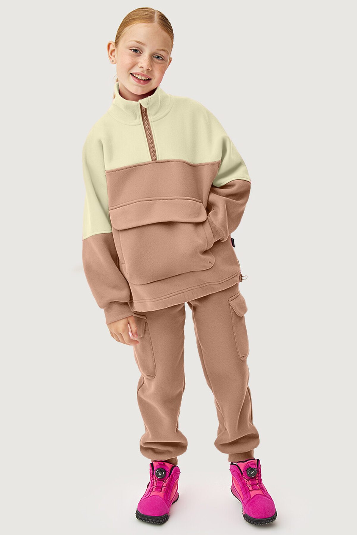 Костюм ХИП-ХОП из плотного хлопкового трикотажа с мягким стриженным начесом внутри. Состоит из двух предметов — анорака и брюк. Анорак свободного силуэта, воротник-стойка на молнии, большой накладной карман с боковыми входами. Манжеты, пояс и воротник из трикотажного полотна «кашкорсе». Брюки свободного силуэта, зауженные к низу, с боковыми карманами и накладными карманами, с трикотажными манжетами. Пояс с резинкой и со шнуром, для дополнительной регулировки объема по талии. Пояс и манжеты из трикотажного полотна «кашкорсе».Комплект можно носить в качестве самостоятельной одежды при t° от +10°С до +20°С, а также в качестве второго слоя под верхнюю одежду.Прекрасный вариант для прогулок и активного отдыха, в поездках просто незаменим. Комплект станет любимой вещью в гардеробе вашего ребенка. Рекомендуется предварительная стирка для удаления лишнего ворса с изделия.