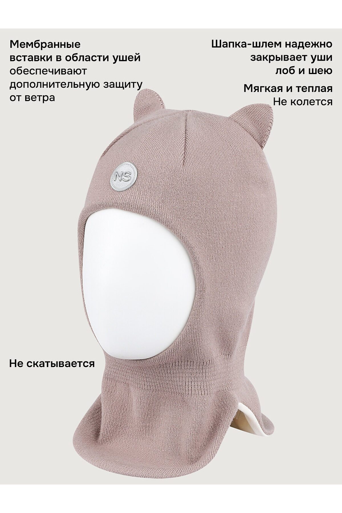 Балаклава КИТТИ из вискозной пряжи на хлопковой подкладке. Балаклава максимально надежно закрывает голову и шею, заменяет шарф и манишку. Мембранные вставки в области ушей надежно защитят ребенка от проникновения холодного ветра. Отличный крой обеспечивает идеальную посадку с плотным прилеганием на ушах и без сползания на глаза. Легко надевается благодаря эластичной горловине. Наличие светоотражающих элементов для безопасности ребенка в темное время суток. Комфортная температура эксплуатации от -5°С до +10°С. Балаклавы отлично сочетаются с верхней одеждой NIKASTYLE.