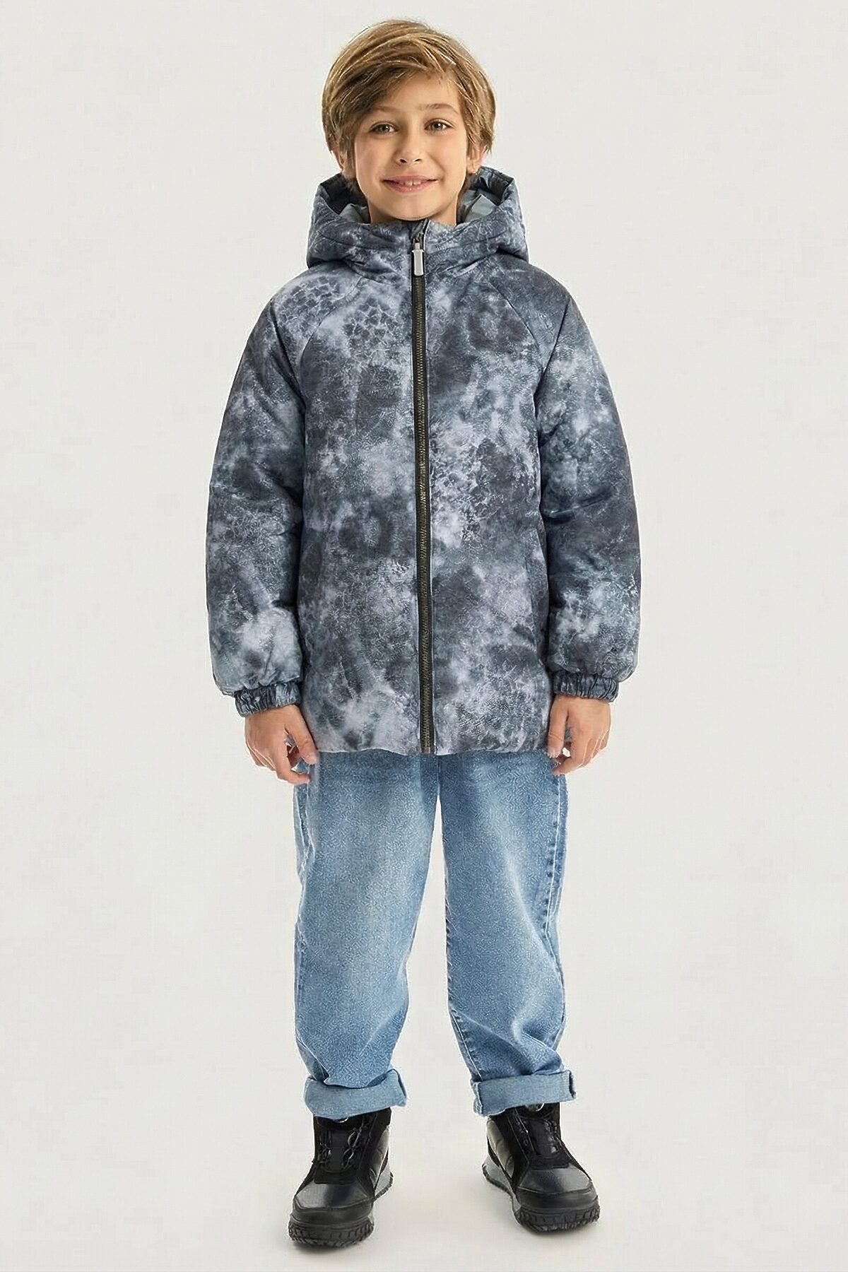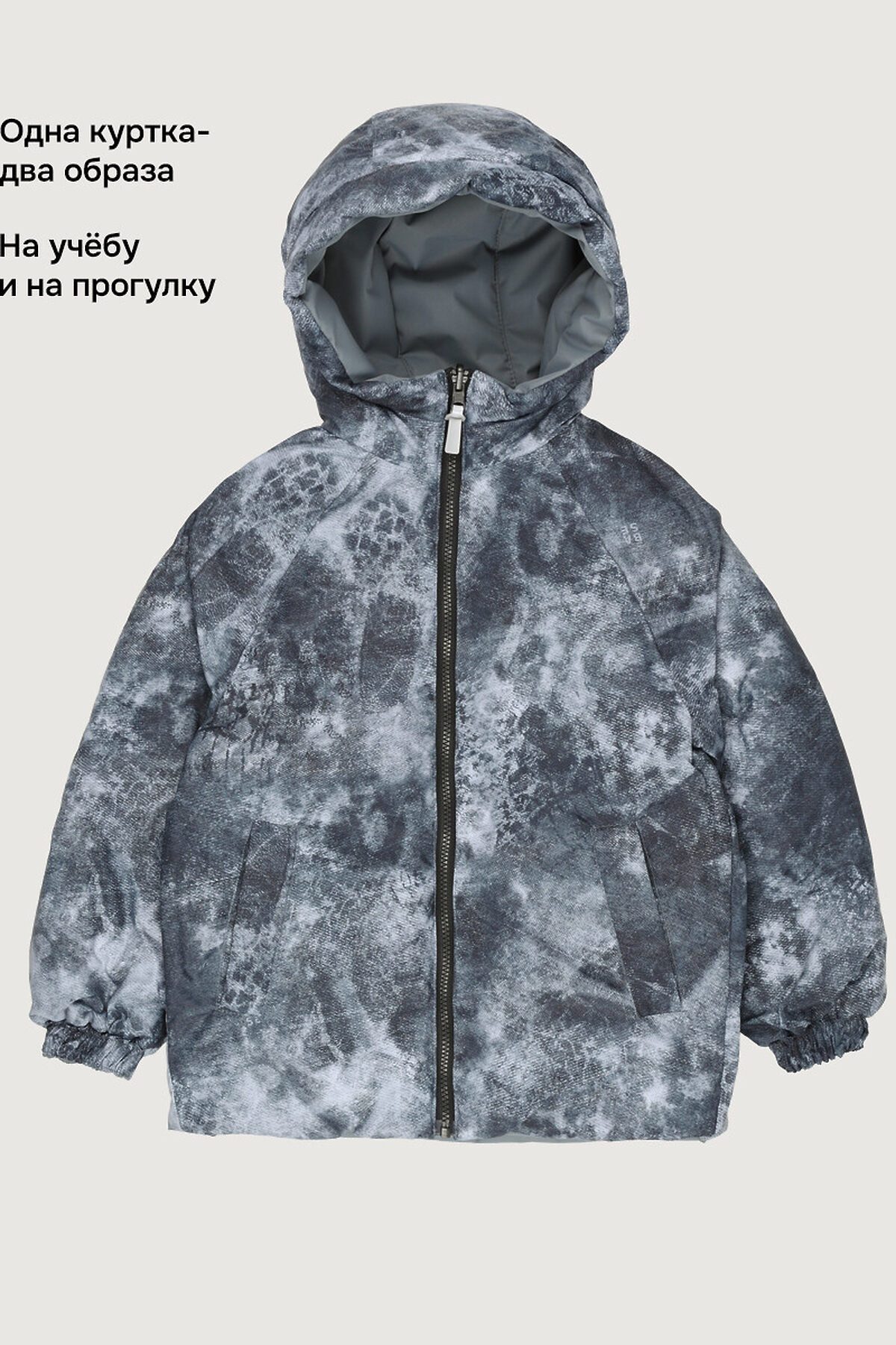 Куртка РЕВЕРС двухсторонняя. С одной стороны - лаконичный дизайн, с другой - стильный принт, что позволяет менять весенний образ в зависимости от настроения. Одна сторона куртки из мембранной ткани 5000/5000 простегана с утеплителем, вторая сторона из плащевой ткани с принтом. Мембранная ткань это непродуваемый и водонепроницаемый материал, который надежно защищает от ветра и влаги. Благодаря дышащим свойствам мембраны ребенку будет комфортно в любую погоду и он не вспотеет. Мембрана в сочетании с утеплителем нового поколения FIBERlite сохраняет тепло во время прогулок, позволяя телу дышать.Функционал: свободный крой, центральная застежка на молнию с перекидным слайдером, ветрозащитная планка, большие карманы с застежкой на кнопки, капюшон с регулировкой объема, манжеты на резинке. Мы все продумали до мелочей, поэтому внутренняя часть куртки с прорезными карманами. Комфортная температура эксплуатации от -5°С до +10°С. Рекомендуем приобрести комплектом аксессуары, обувь и другие вещи из капсулы в карточке товара, которые отлично сочетаются с изделиями коллекции.