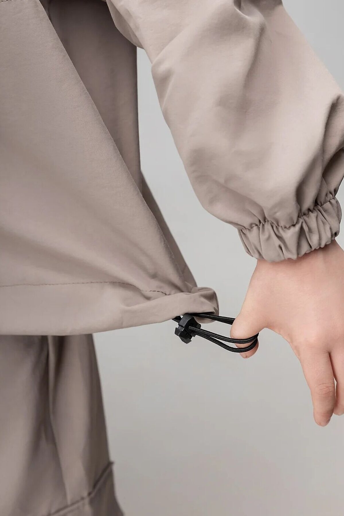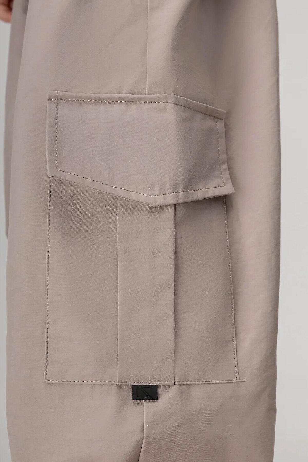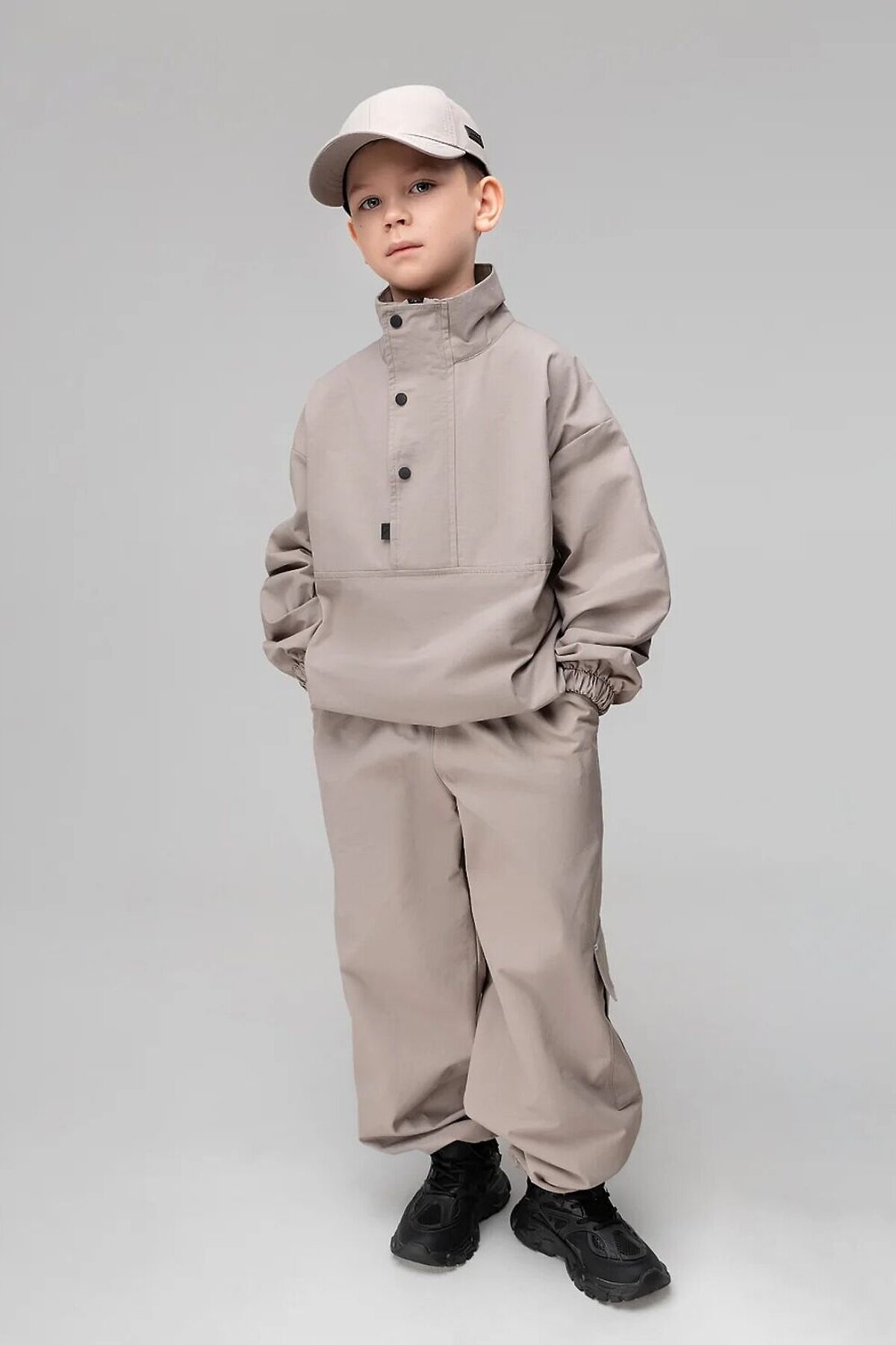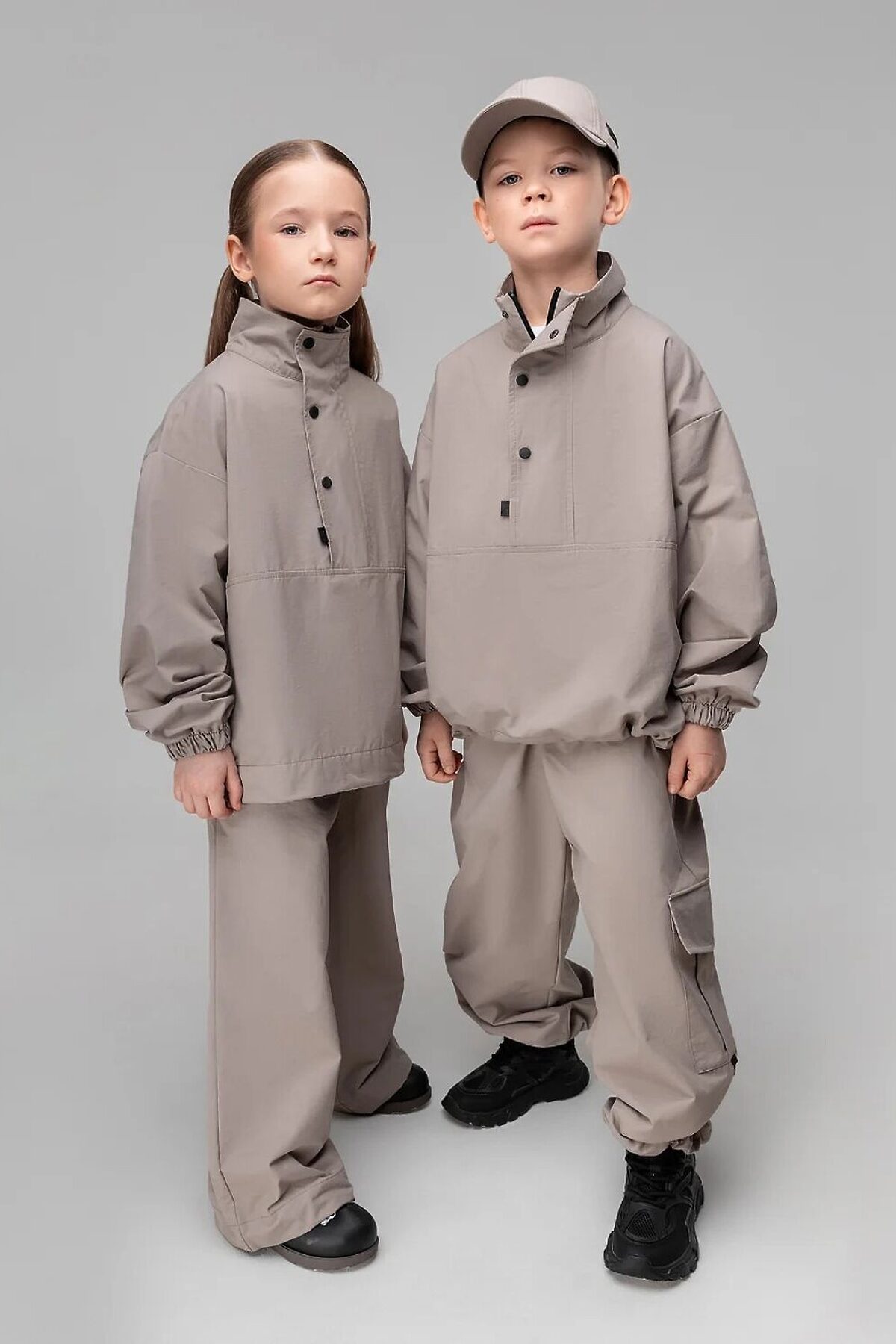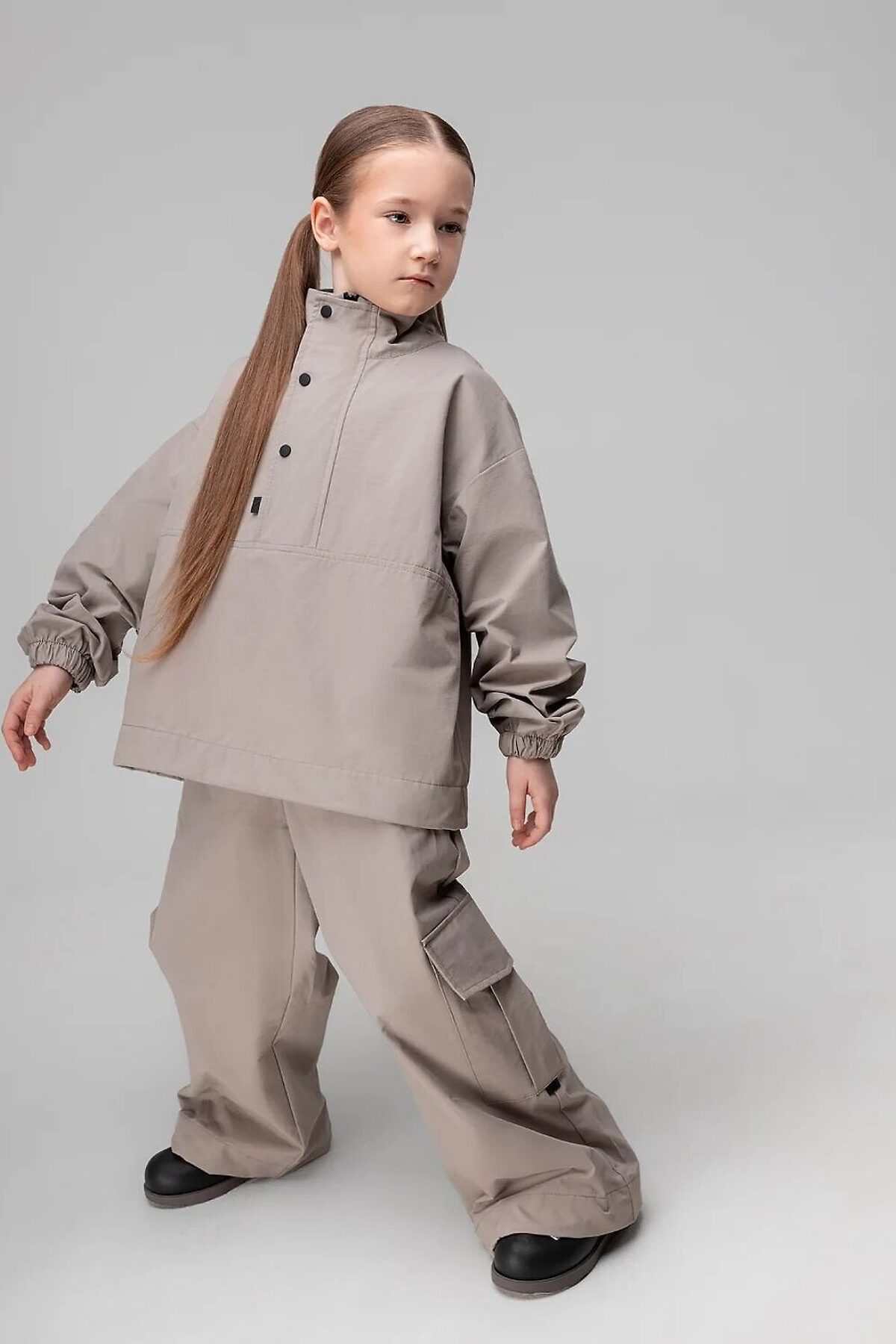 Свободная куртка без подклада на молнии с планкой на кнопках. Рукава с манжетой на резинке. По низу куртки имеется утяжка. Свободные, прямые брюки на поясе с внутренней резинкой. Брюки с двумя видами карман, боковые карманы и накладной карман по левому боковому шву закрытый клапаном, по низу брюк имеется дополнительная резинка с фиксатором для затяжки.