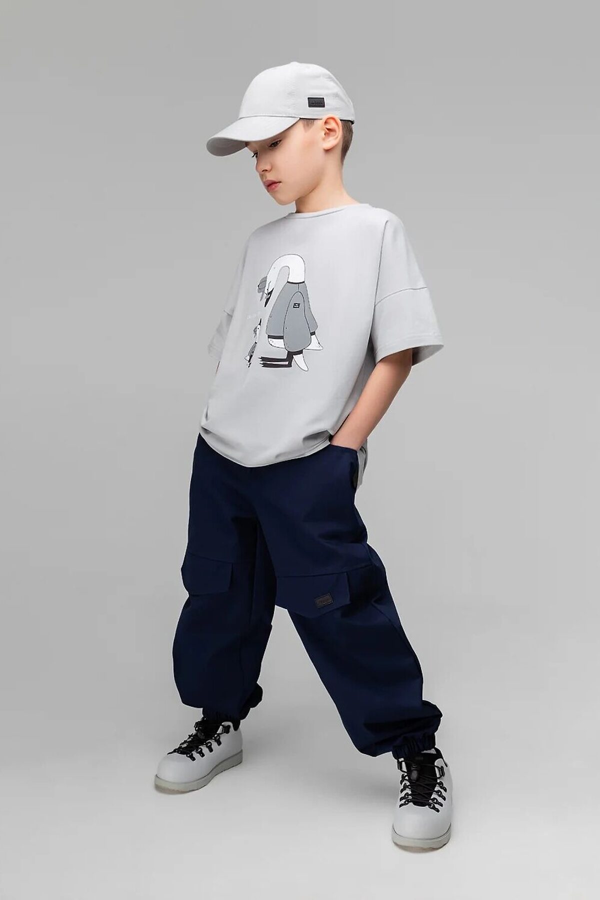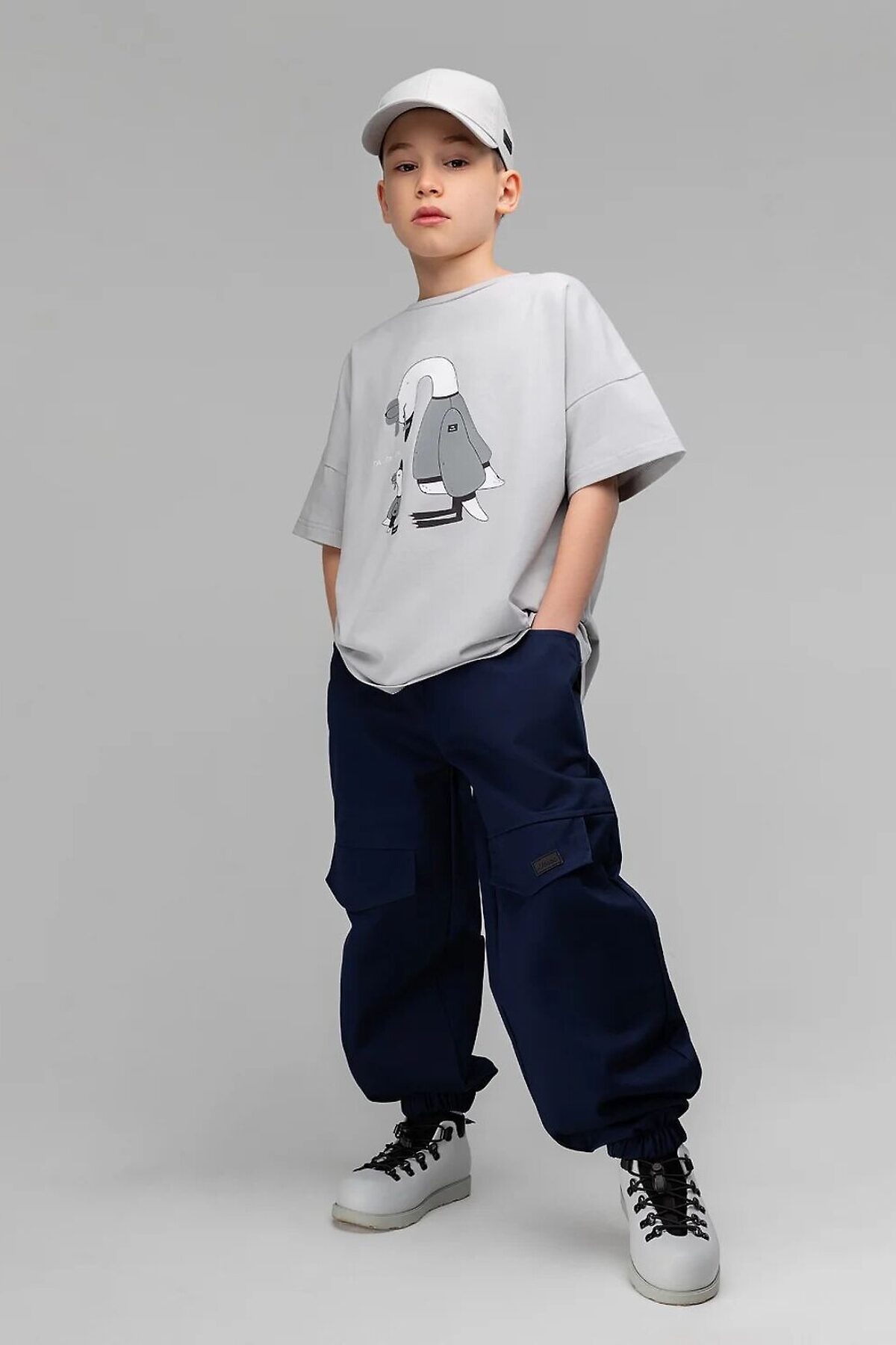 Свободные брюки, расширенные в бёдрах, по низу резинка. Брюки с боковыми карманами. На передних половинках декоративные клапаны.