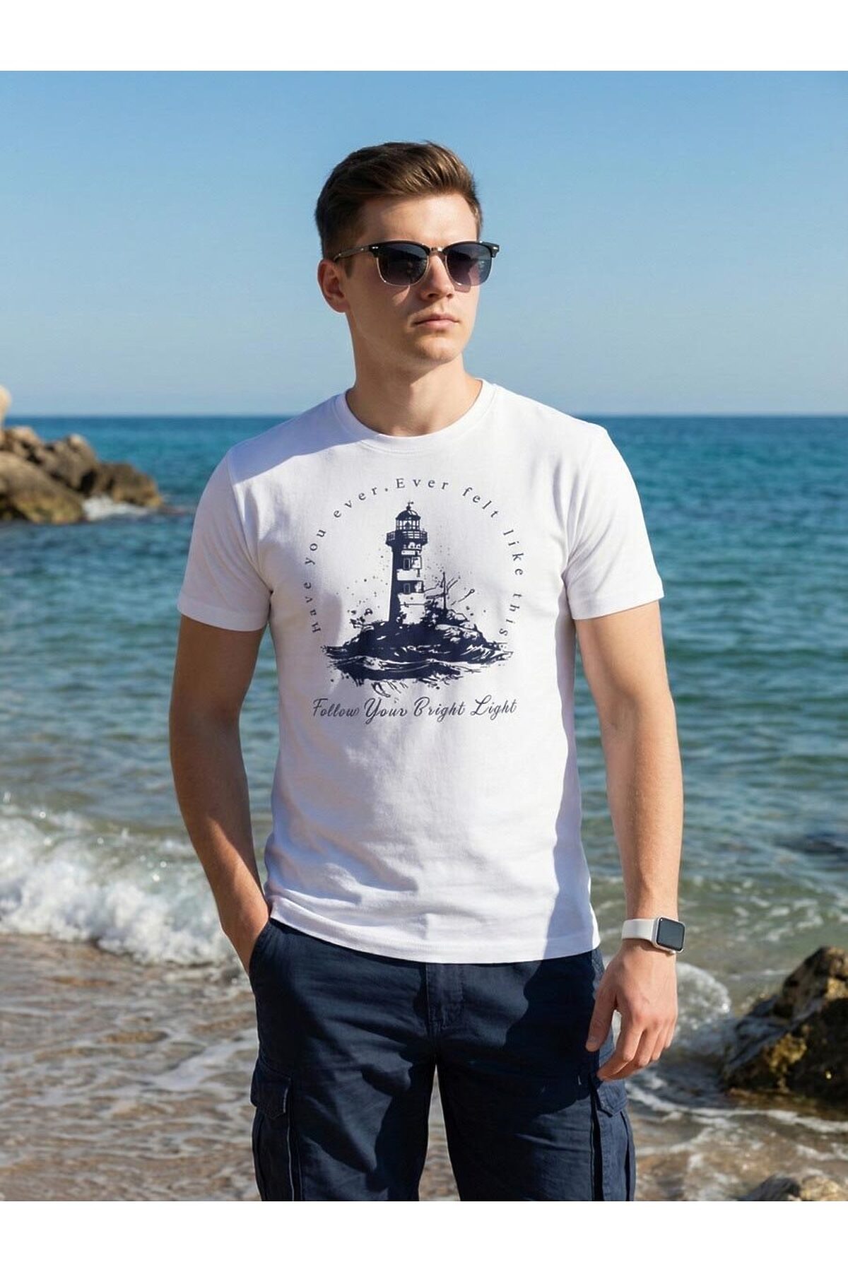 Мужская футболка F5, Regular fit (полуприлегающий силуэт), круглый вырез горловины, короткий рукав. Выполнена из классического трикотажного полотна.