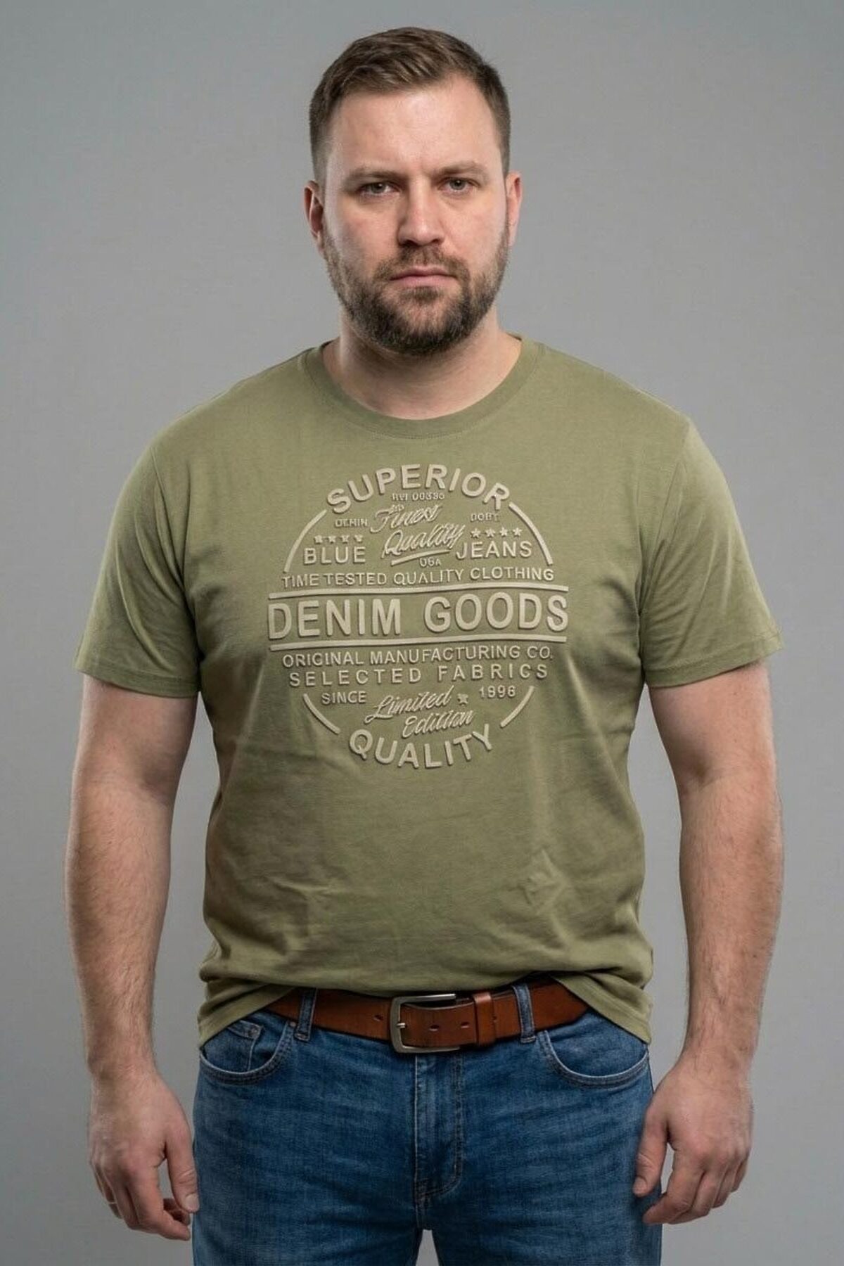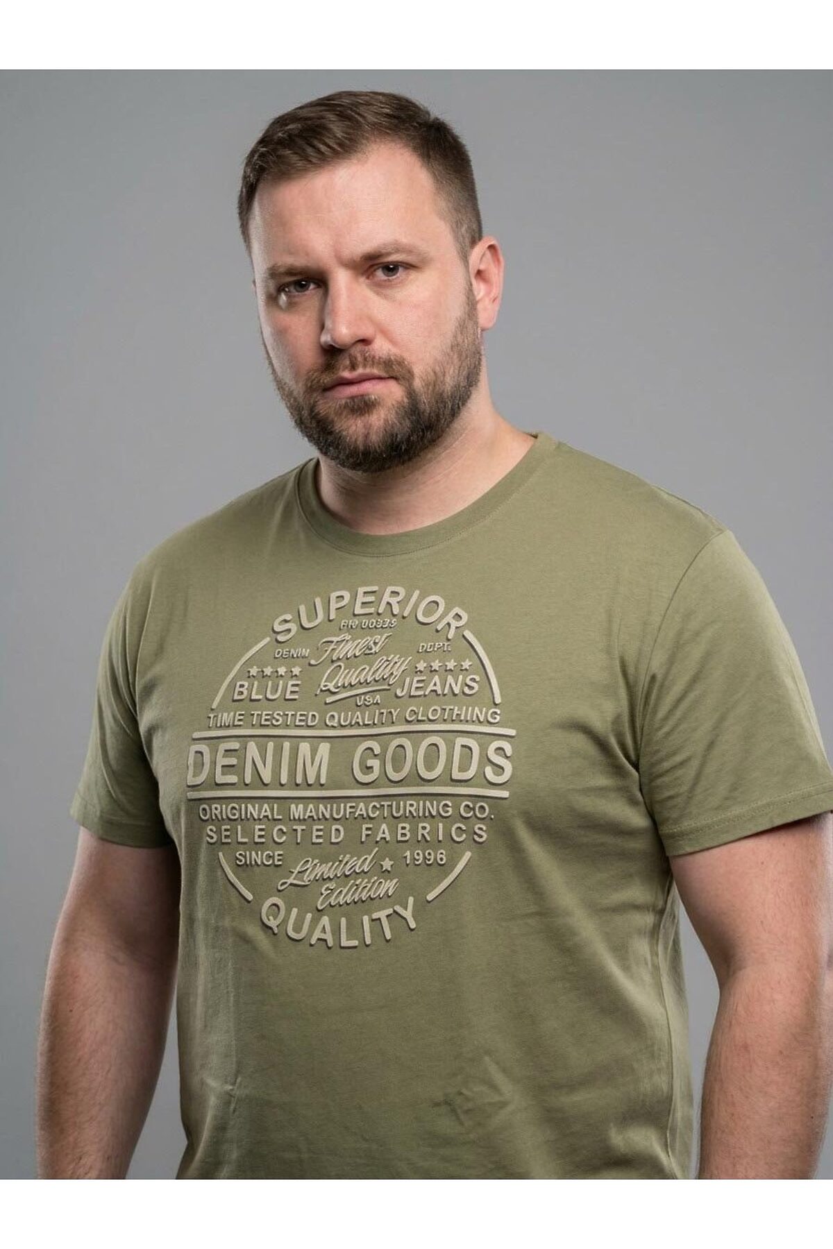 Мужская футболка F5, Comfort fit (свободный силуэт), круглый вырез горловины, короткий рукав. Специальная укрупненная размерная сетка с двойным шагом между размерами. Эта сетка сделана для того чтобы оставить тоже количество размеров футболки от М до XXXL, но охватить размеры с 48 по 64, вместо традиционного интервала размеров с 48 по 56. Выполнена из классического трикотажного полотна.