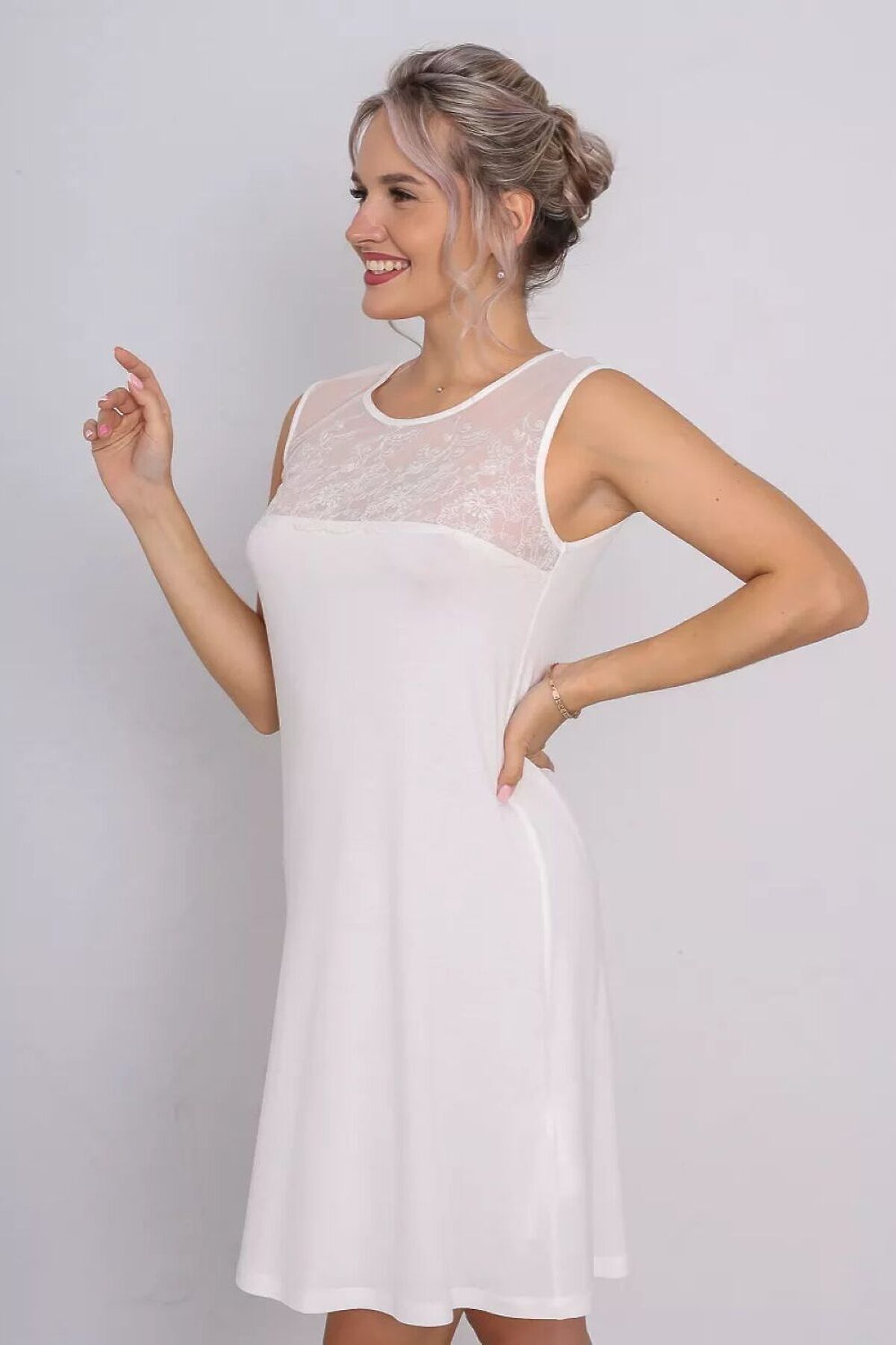 Ночная сорочка женская без рукава - идеальное решение для женщин и девушек, которые ценят комфорт и стиль. Ночнушка короткая, выполнена из вискозного полотна, состав ткани (92 % вискоза и 8% эластан) и обеспечивает оптимальный уровень воздухопроницаемости, позволяя коже дышать во время сна. Главная особенность этой сорочки - вырез горловины с округлой формой, который украшен сеткой, выполненной из высококачественного кружева премиум класса и прекрасно подчеркнет Вашу женственность. Это добавляет ночнушке нежности и элегантности, придавая Вам роскошный и соблазнительный образ. Сорочка предлагается в больших размерах, чтобы каждая женщина смогла найти свой идеальный вариант. Она идеально сочетается с любым типом фигуры, подчеркивая все ваши достоинства и скрывая недостатки. Погрузитесь в мир комфорта и стиля с этой рубашкой больших размеров. Она станет вашим незаменимым спутником для приятных и уютных моментов перед сном или утренних часов отдыха. Стильная, эротичная и сексуальная спальная вещь для дома. Подойдёт на любой рост: для высоких, для невысоких и дам среднего роста.