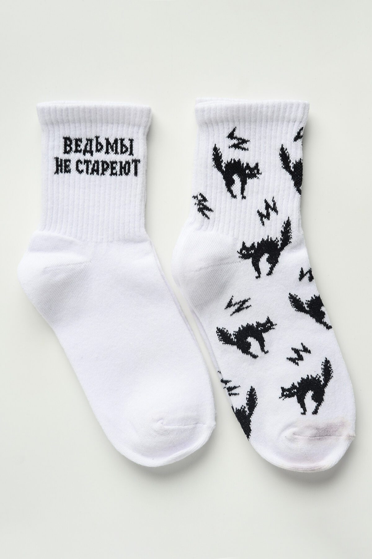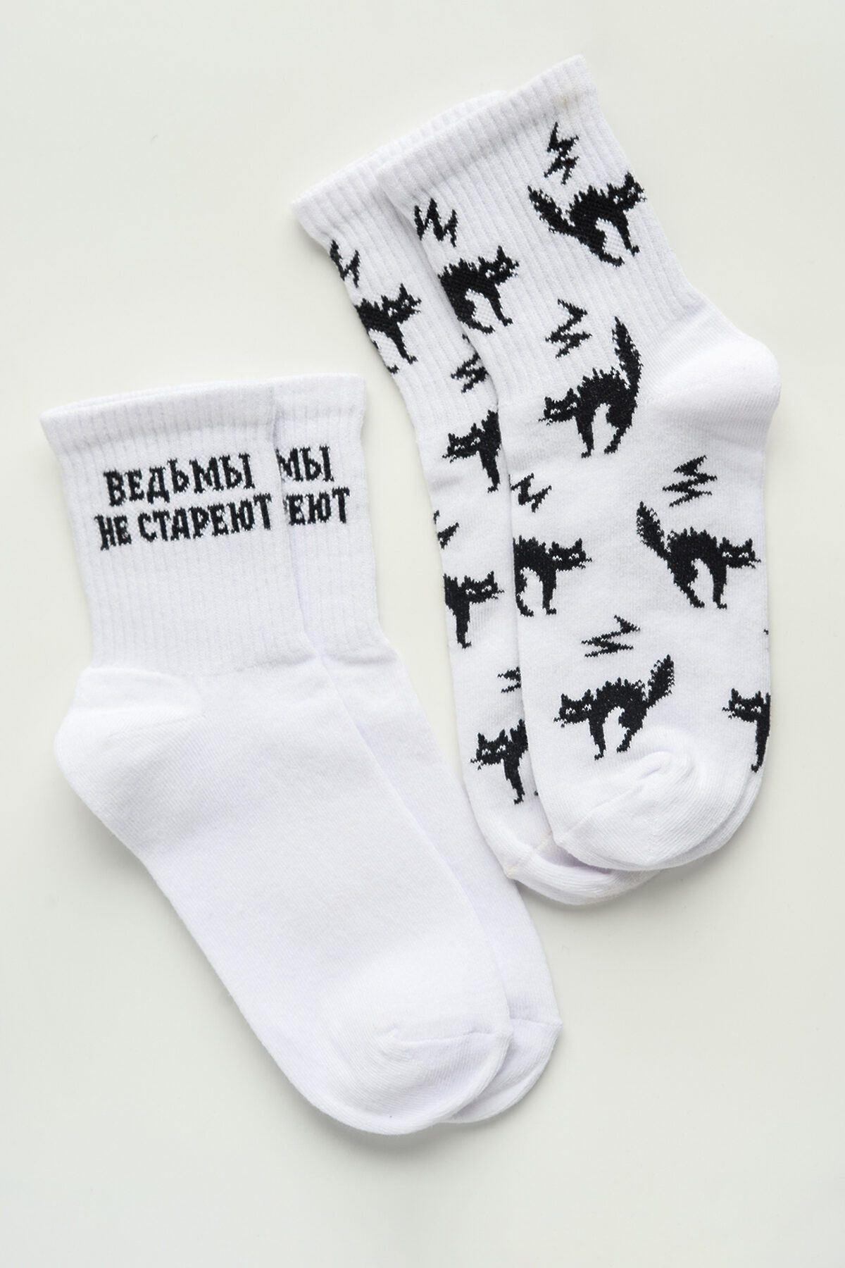 Почувствуй магию в каждом шаге! Набор стильных женских носков с загадочными надписями и волшебными рисунками. Мягкий и приятный материал бережно заботится о твоих ногах, обеспечивая комфорт на целый день. Идеально подходят для уверенных в себе и неординарных девушек. Добавь немного мистики в свой образ и подчеркни свою индивидуальность! В комплекте 2 пары, размер 36-39. Преврати каждый день в маленькое чудо вместе с нашими носками!
