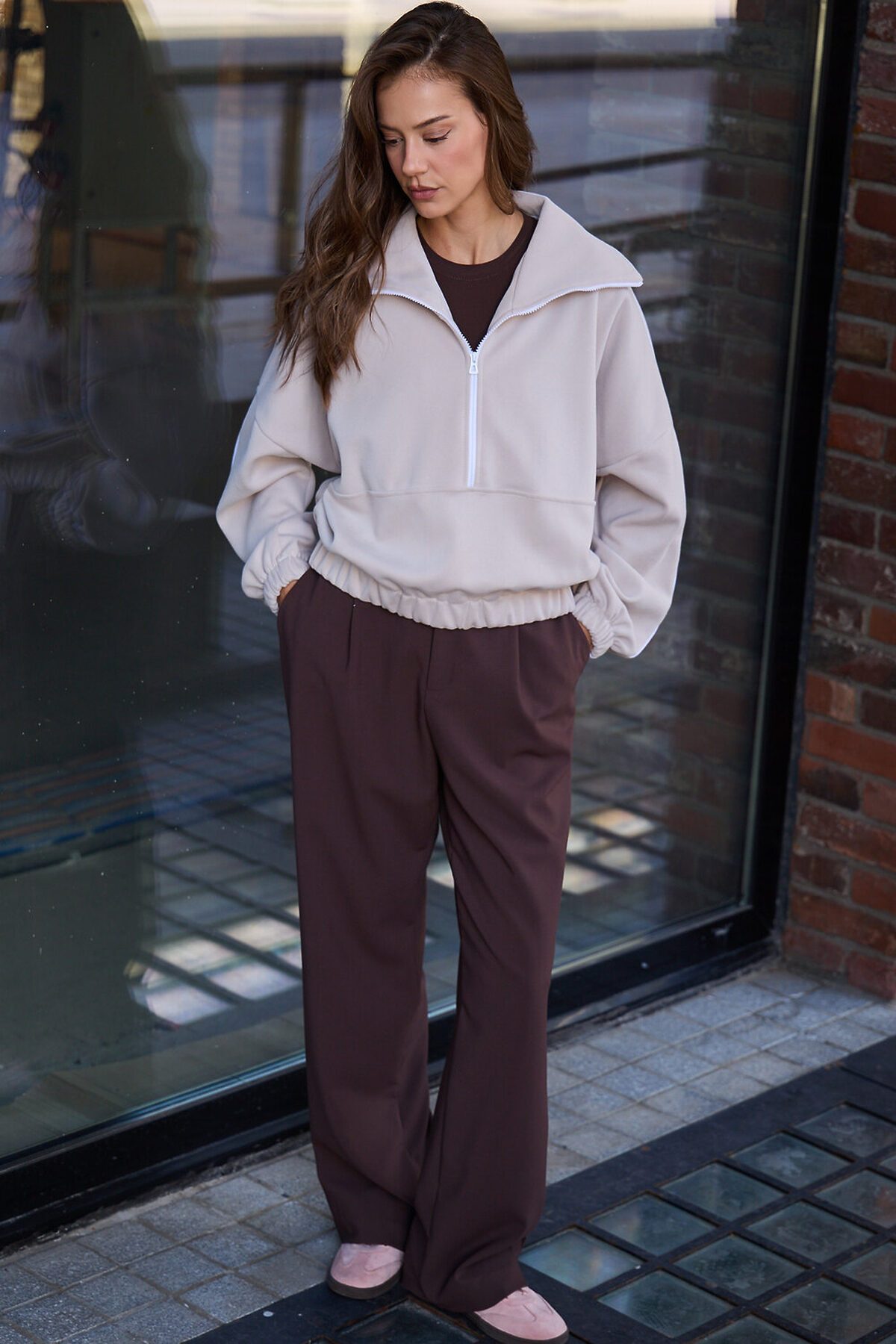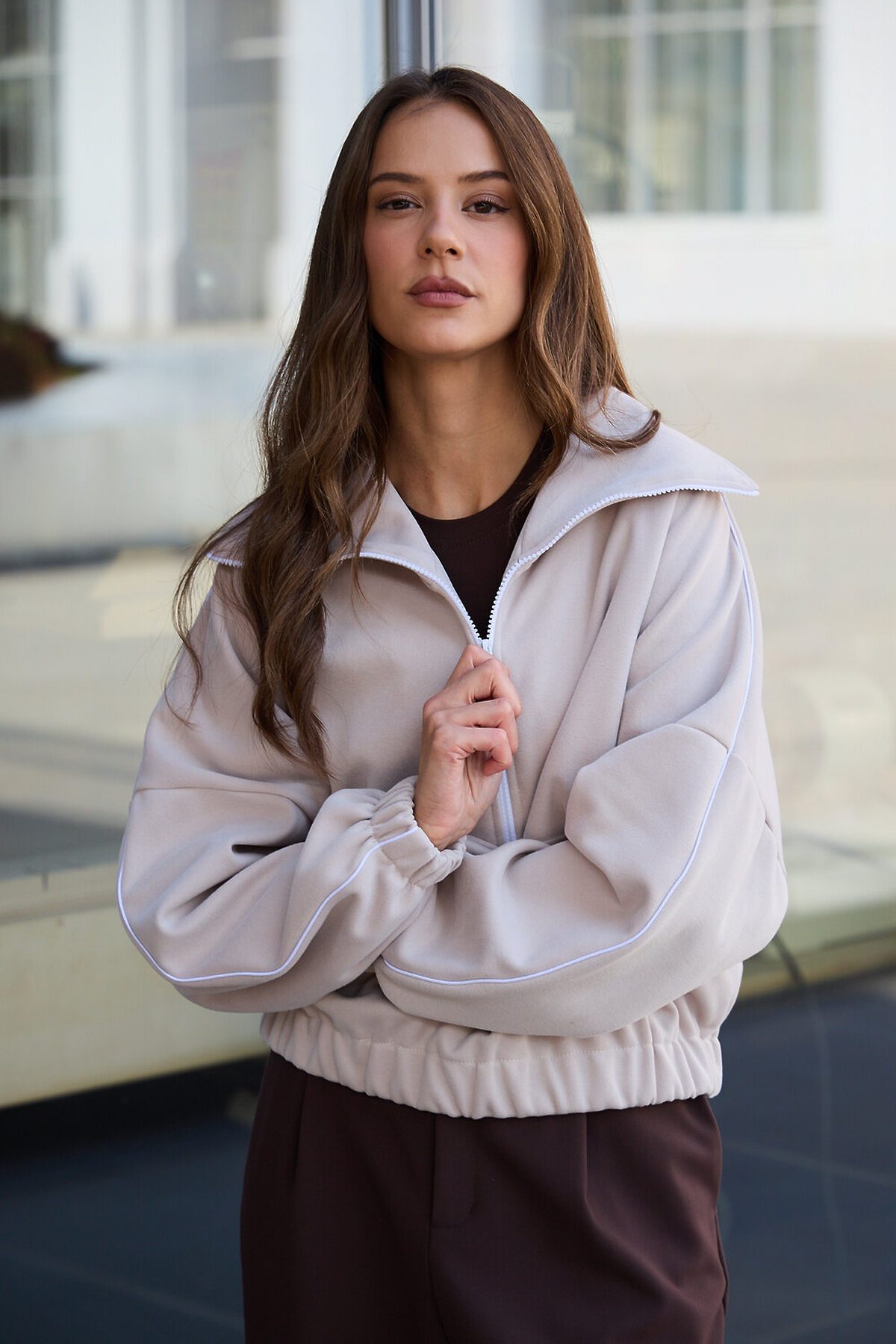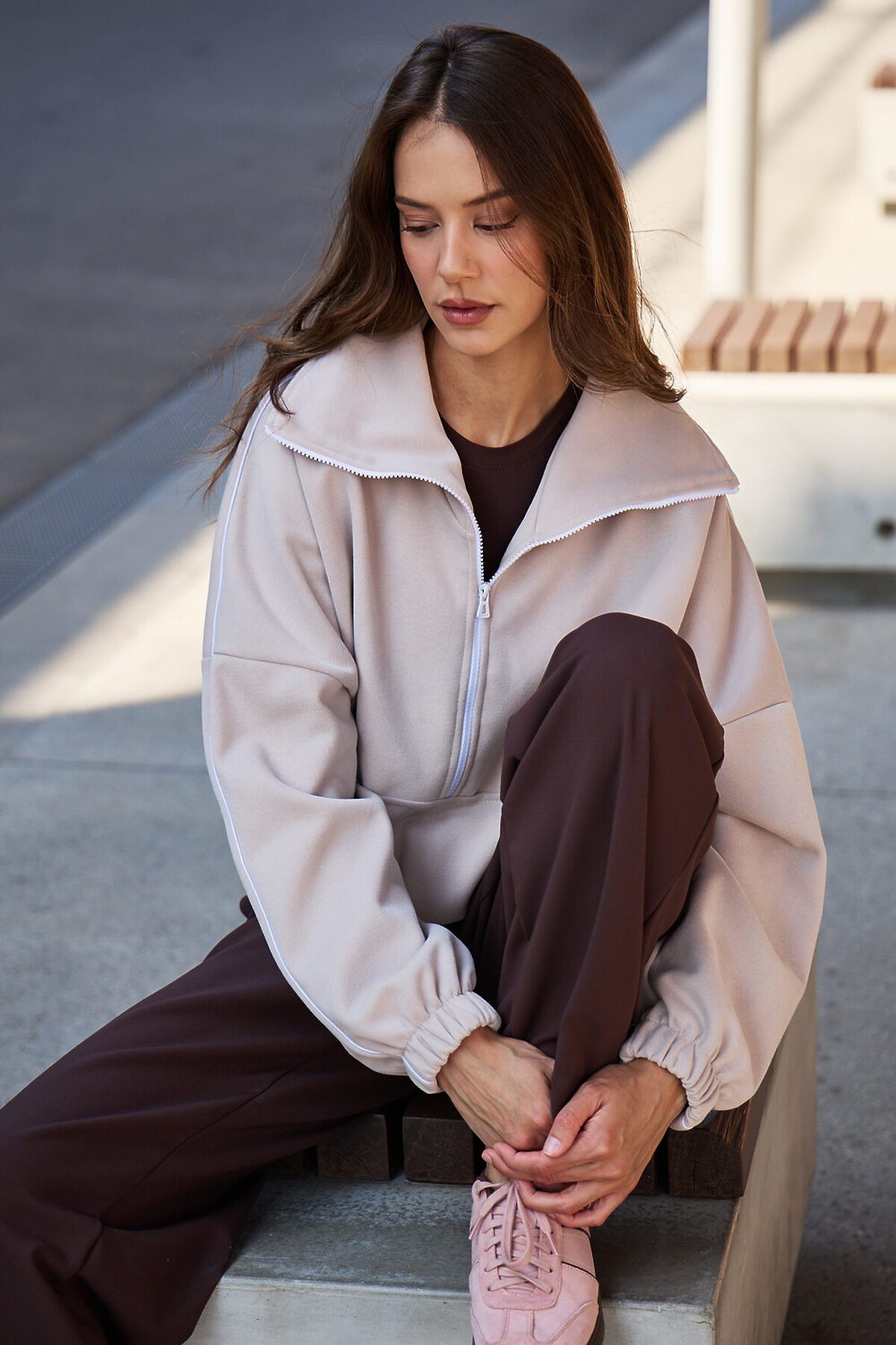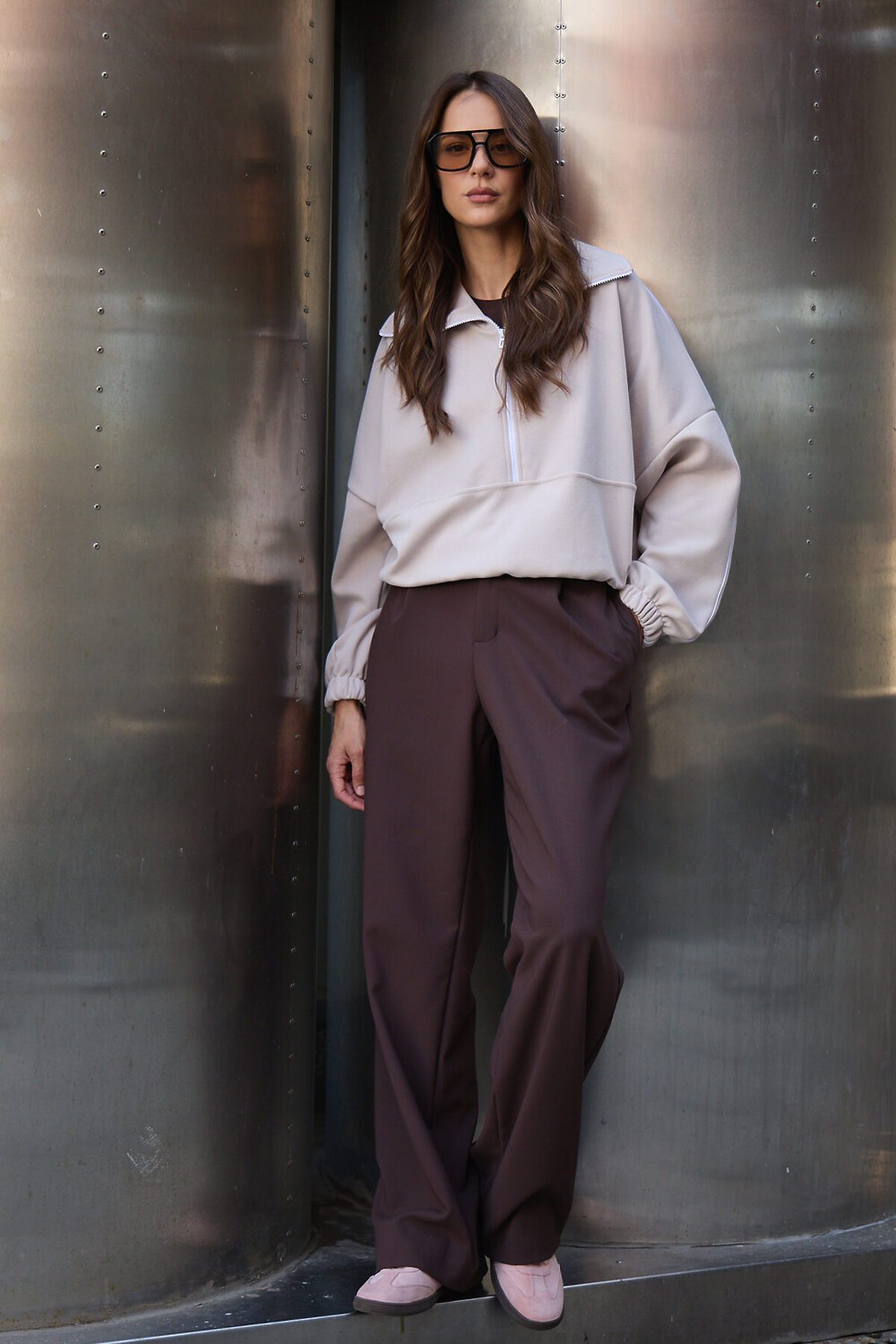 Свитшот это воплощение комфорта и стиля, универсальная толстовка свободного кроя, часто дополненная высоким воротником на молнии. Однотонный свитшот лаконичный манифест моды, бессмертный элемент гардероба, сохраняющий актуальность даже в своей минималистичной чистоте. Декоративный контрастный кант и изящная полузастежка-молния превращают обыденную вещь в предмет дизайнерского искусства. Такая кофта легко вольется в ритм повседневной жизни, став незаменимой частью базового гардероба. Благодаря расслабленному крою oversize, удлиненным рукавам и эластичной резинке по низу, свитшот словно создан для любой фигуры, деликатно подчеркивая достоинства и скрывая недостатки, будь то хрупкий силуэт или пышные формы. P.S: Данные по длине рукава с учетом длины плеча.