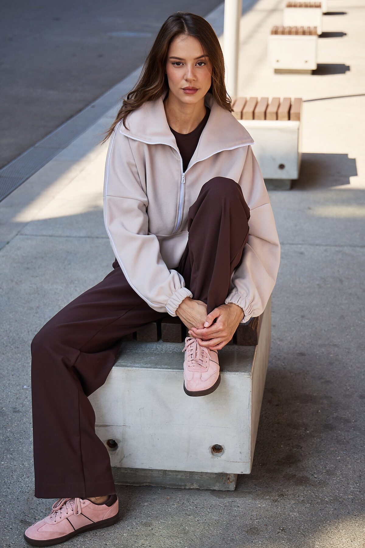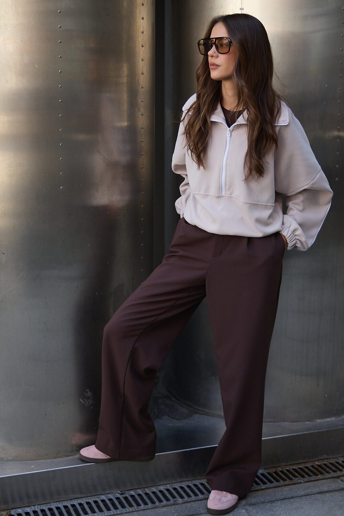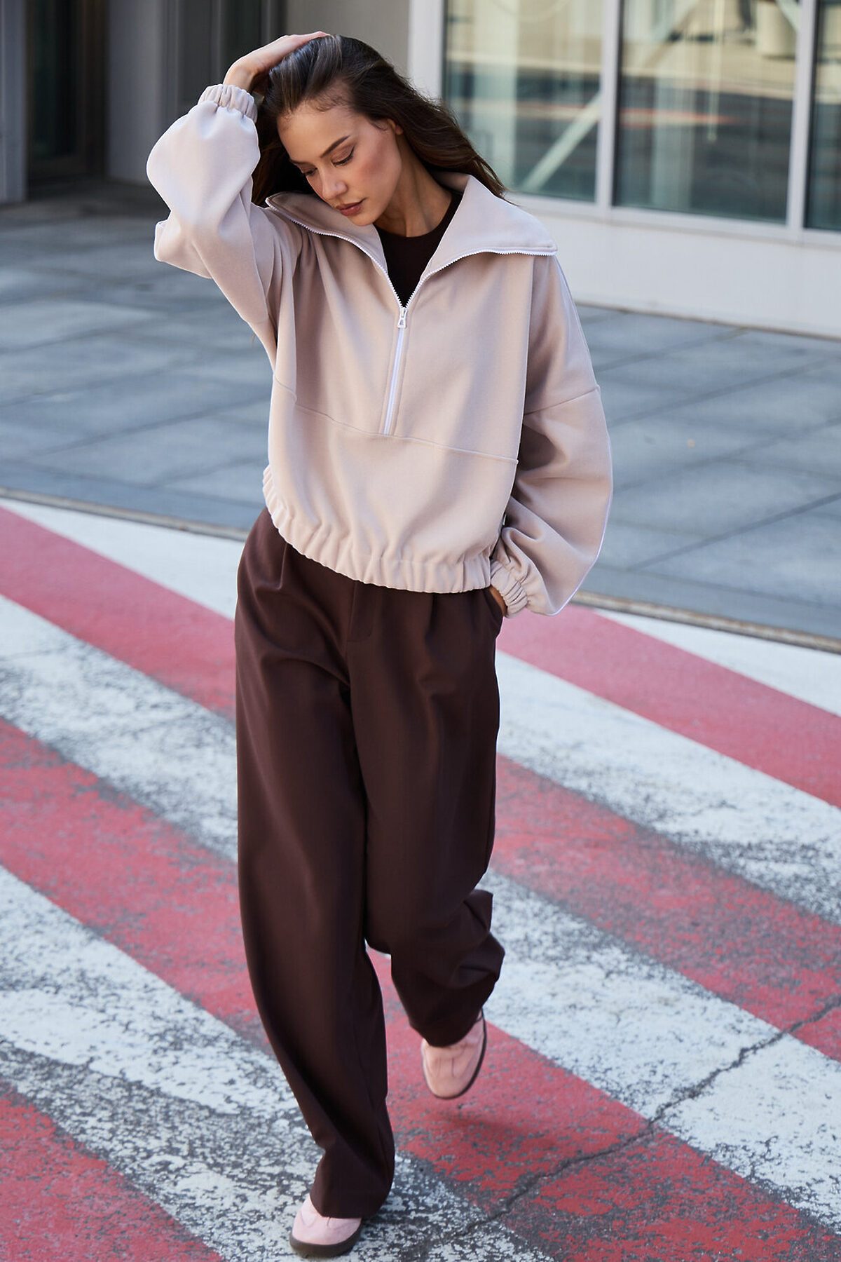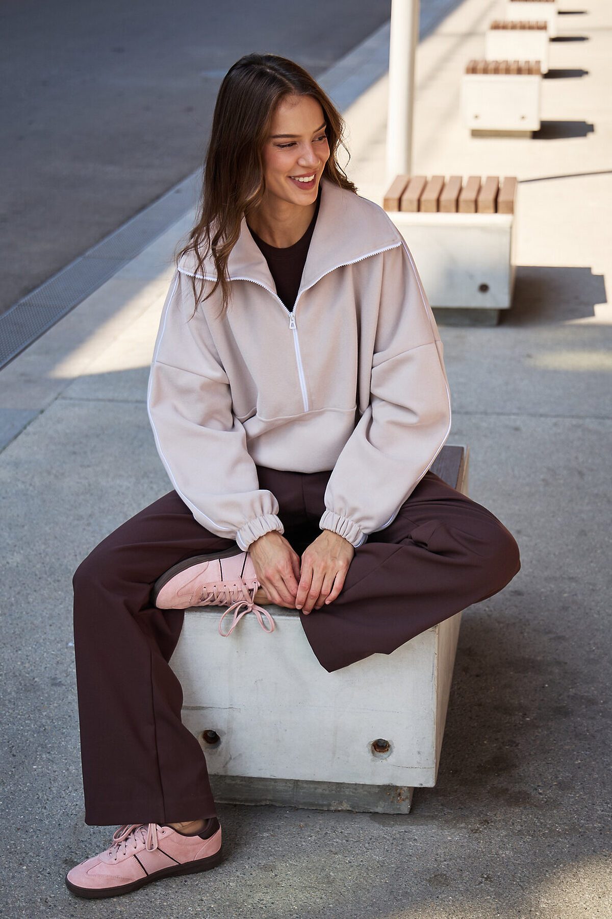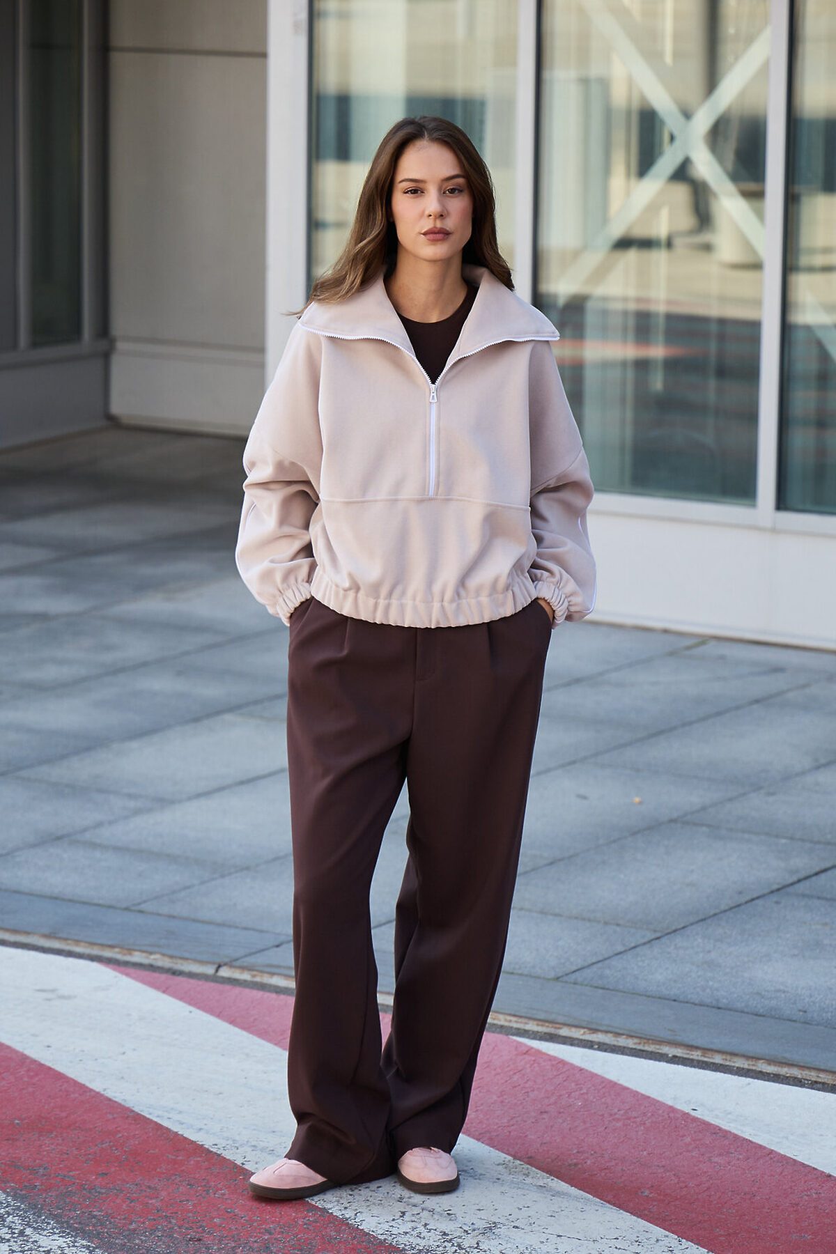Свитшот это воплощение комфорта и стиля, универсальная толстовка свободного кроя, часто дополненная высоким воротником на молнии. Однотонный свитшот лаконичный манифест моды, бессмертный элемент гардероба, сохраняющий актуальность даже в своей минималистичной чистоте. Декоративный контрастный кант и изящная полузастежка-молния превращают обыденную вещь в предмет дизайнерского искусства. Такая кофта легко вольется в ритм повседневной жизни, став незаменимой частью базового гардероба. Благодаря расслабленному крою oversize, удлиненным рукавам и эластичной резинке по низу, свитшот словно создан для любой фигуры, деликатно подчеркивая достоинства и скрывая недостатки, будь то хрупкий силуэт или пышные формы. P.S: Данные по длине рукава с учетом длины плеча.