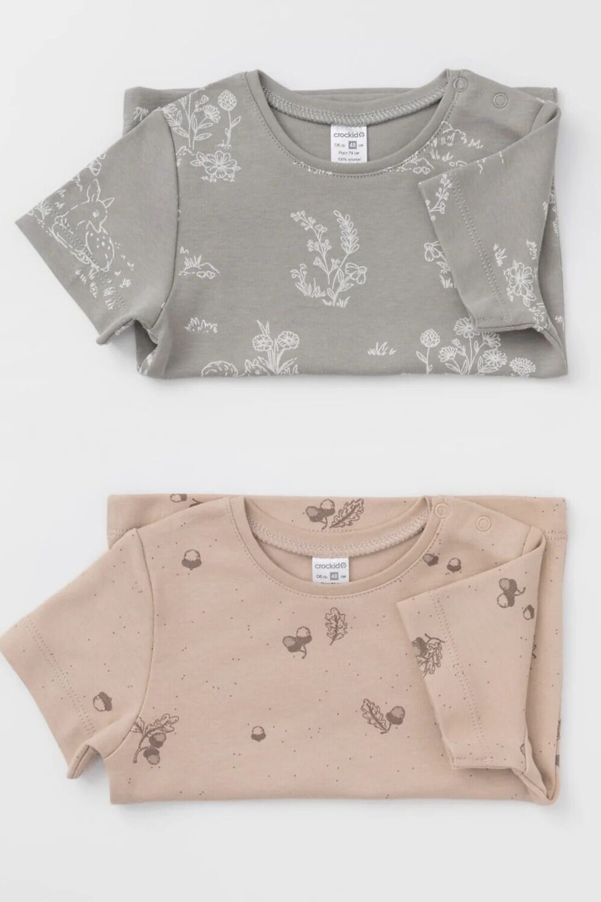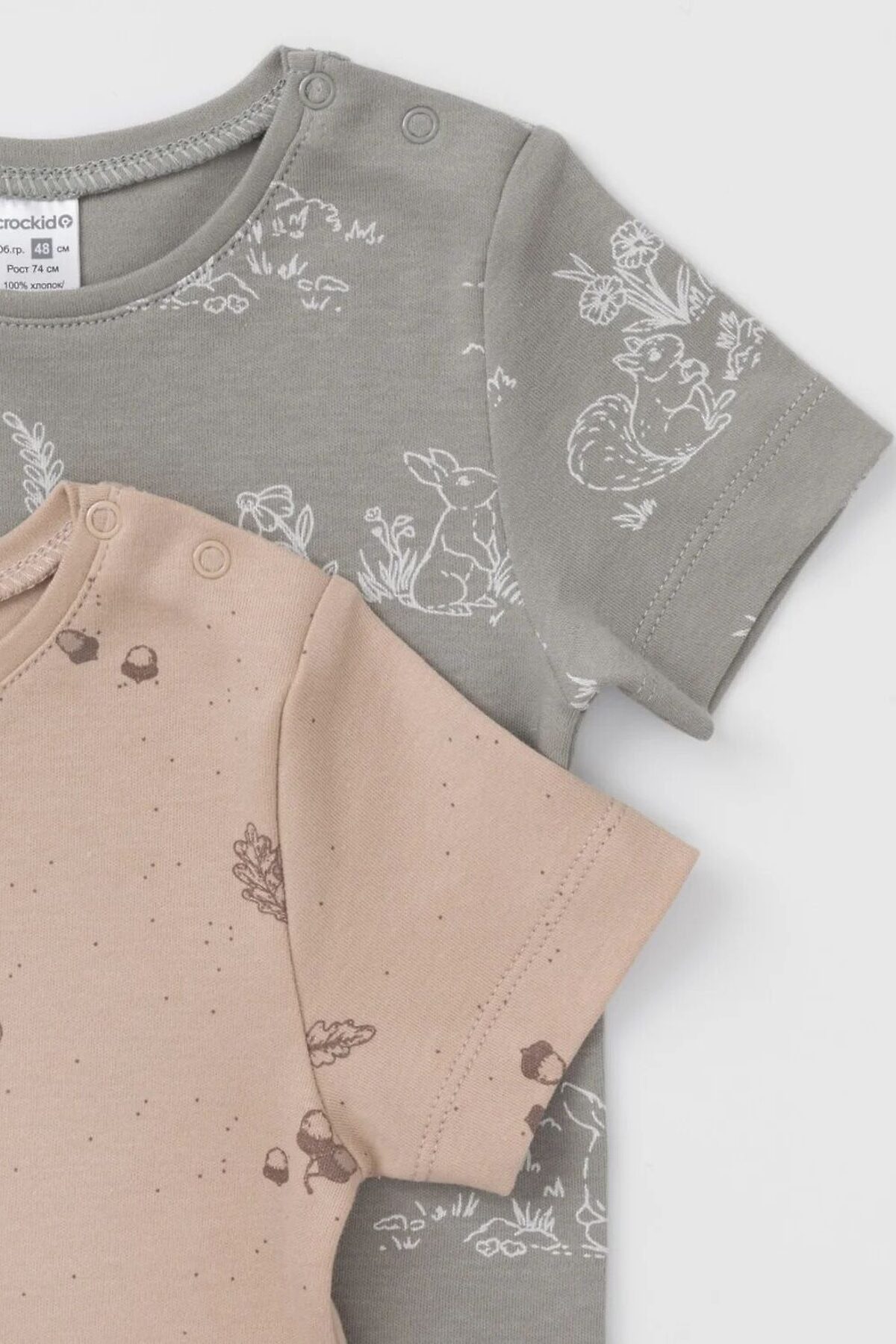 Футболки, 2 шт. CROCKID, оливкобый, бежевый