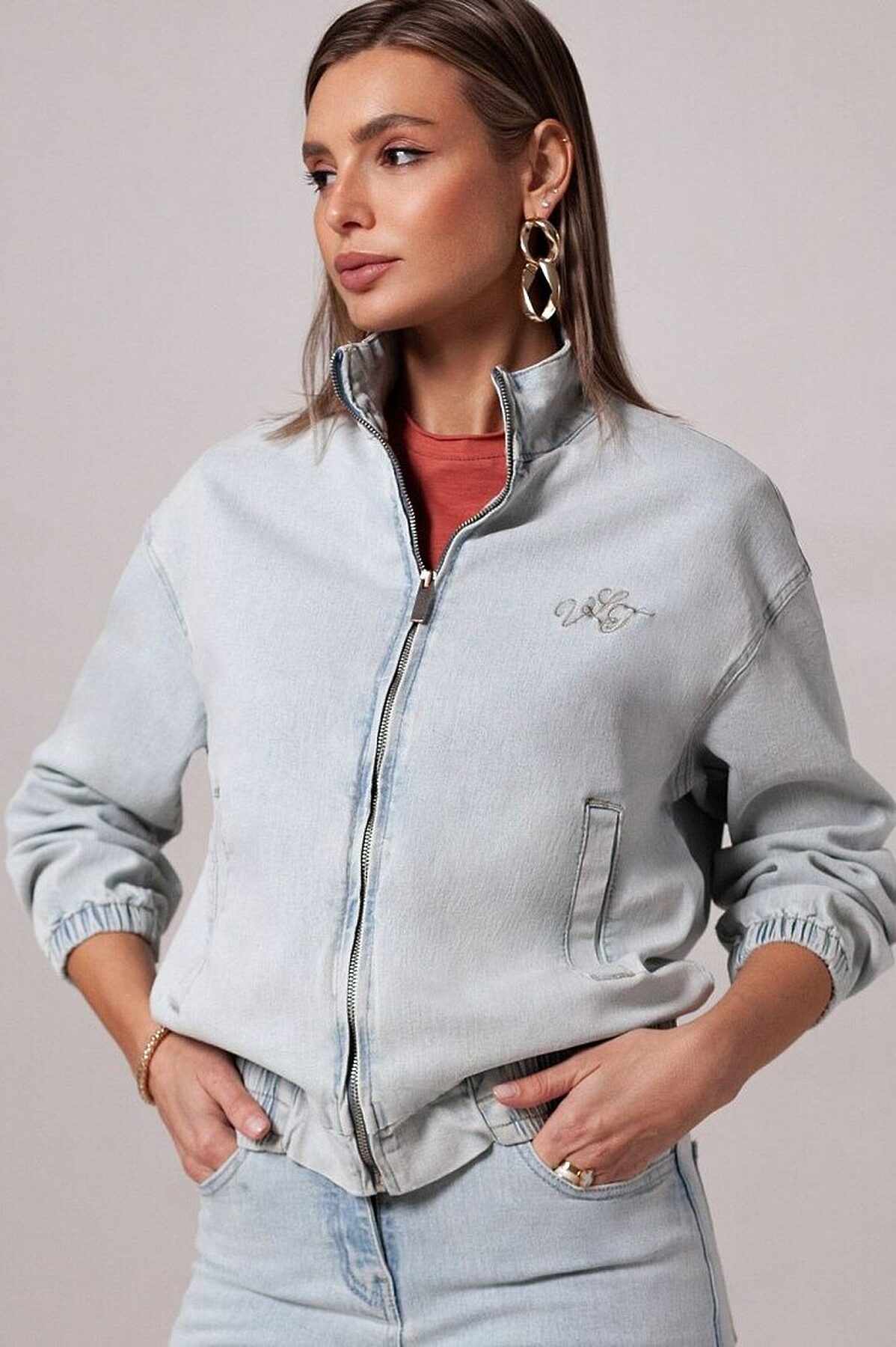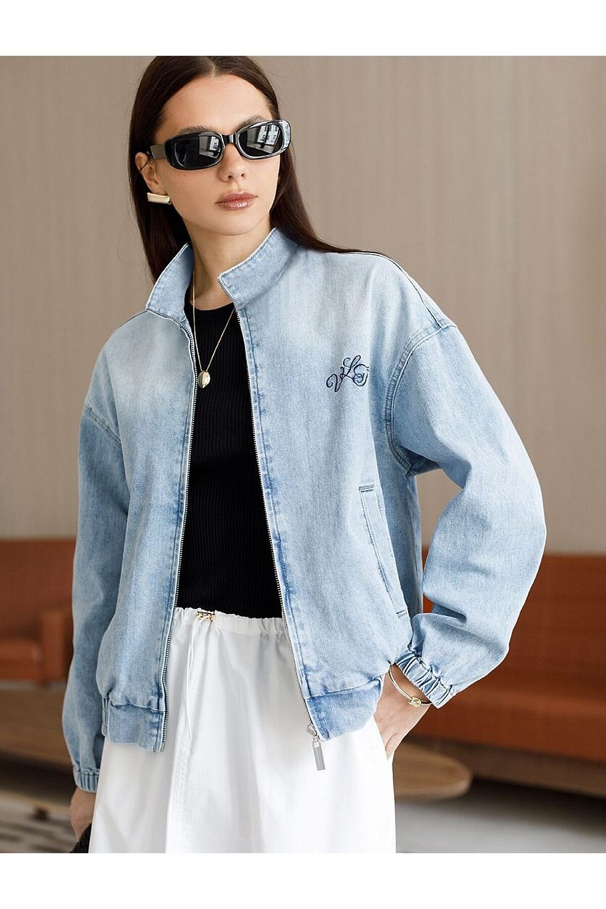 Джинсовый бомбер на молнии из облегченного денима VILATTE, св.голубой