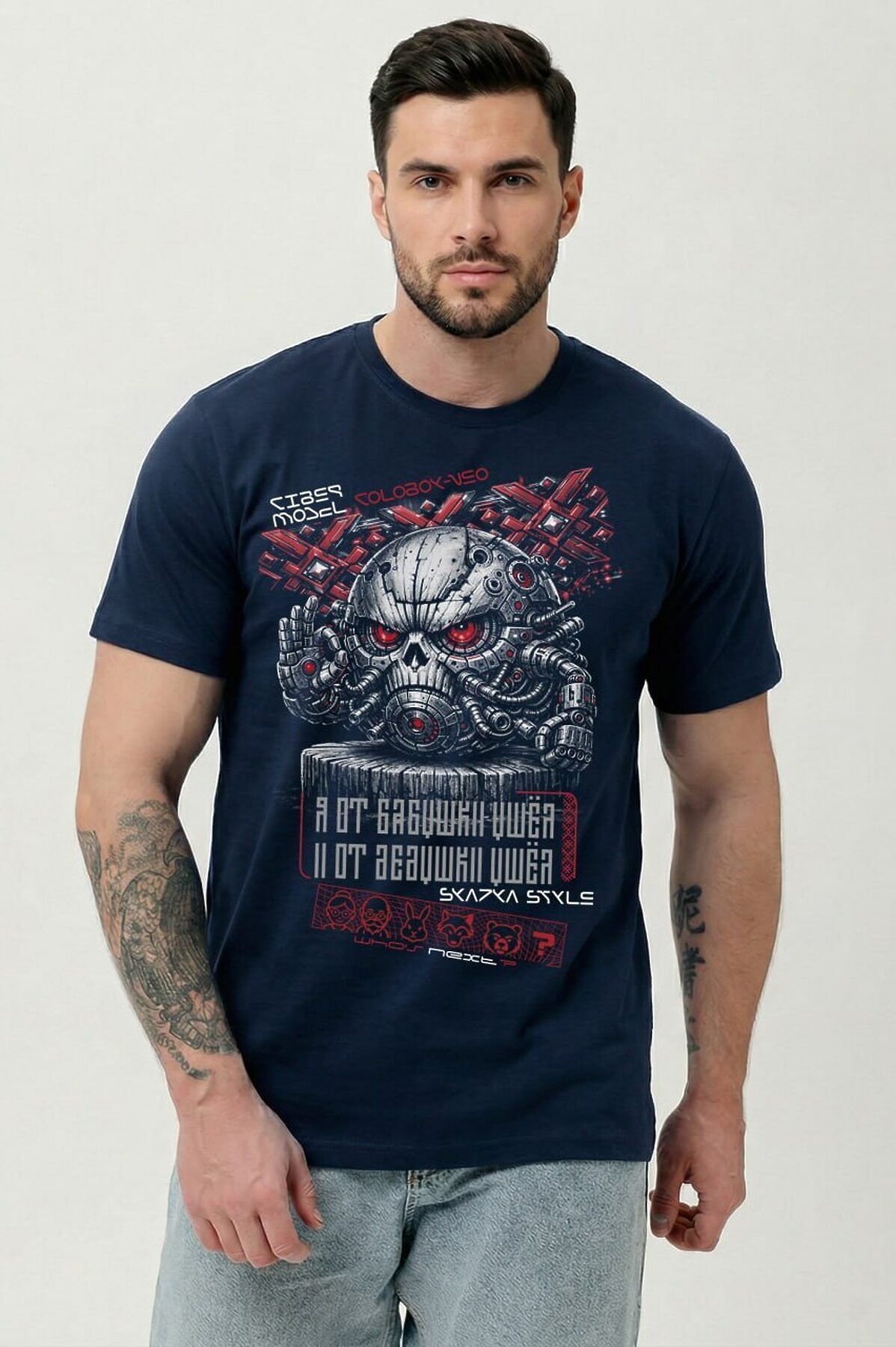 Погрузи свой стиль в атмосферу настоящей фантастики с этой уникальной футболкой! Брутальный принт в стиле киберпанк с механическим черепом и яркими деталями моментально привлечёт внимание и подчеркнёт твой характер. Высококачественный хлопок обеспечивает комфорт и долговечность, а эксклюзивный дизайн выделяет из толпы. Подчеркни свою индивидуальность, выбери футболку для тех, кто не боится быть в центре внимания! Идеально для поклонников ярких образов, оригинальных иллюстраций и современных трендовых мотивов.