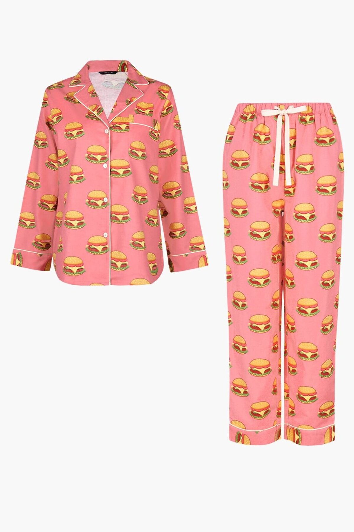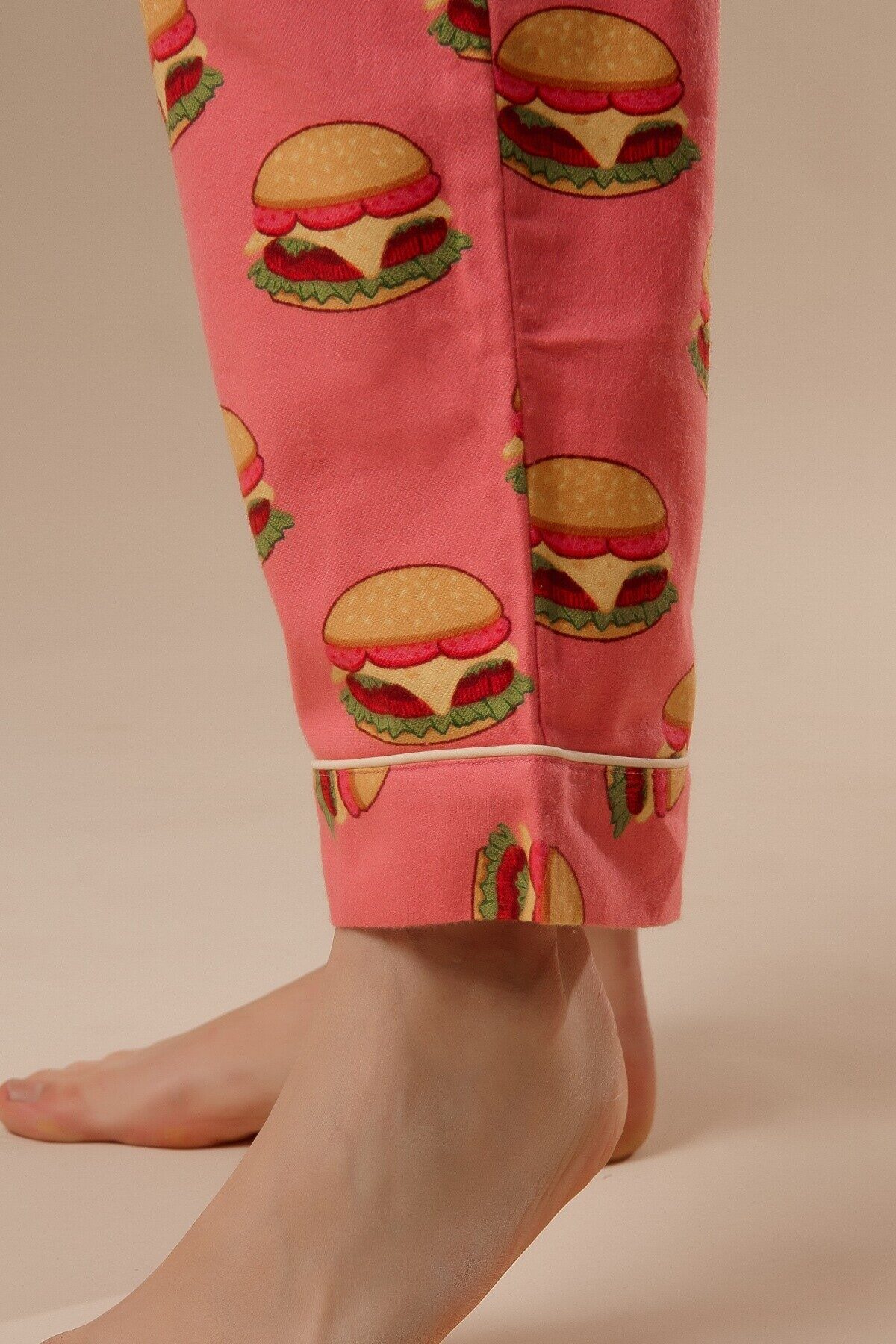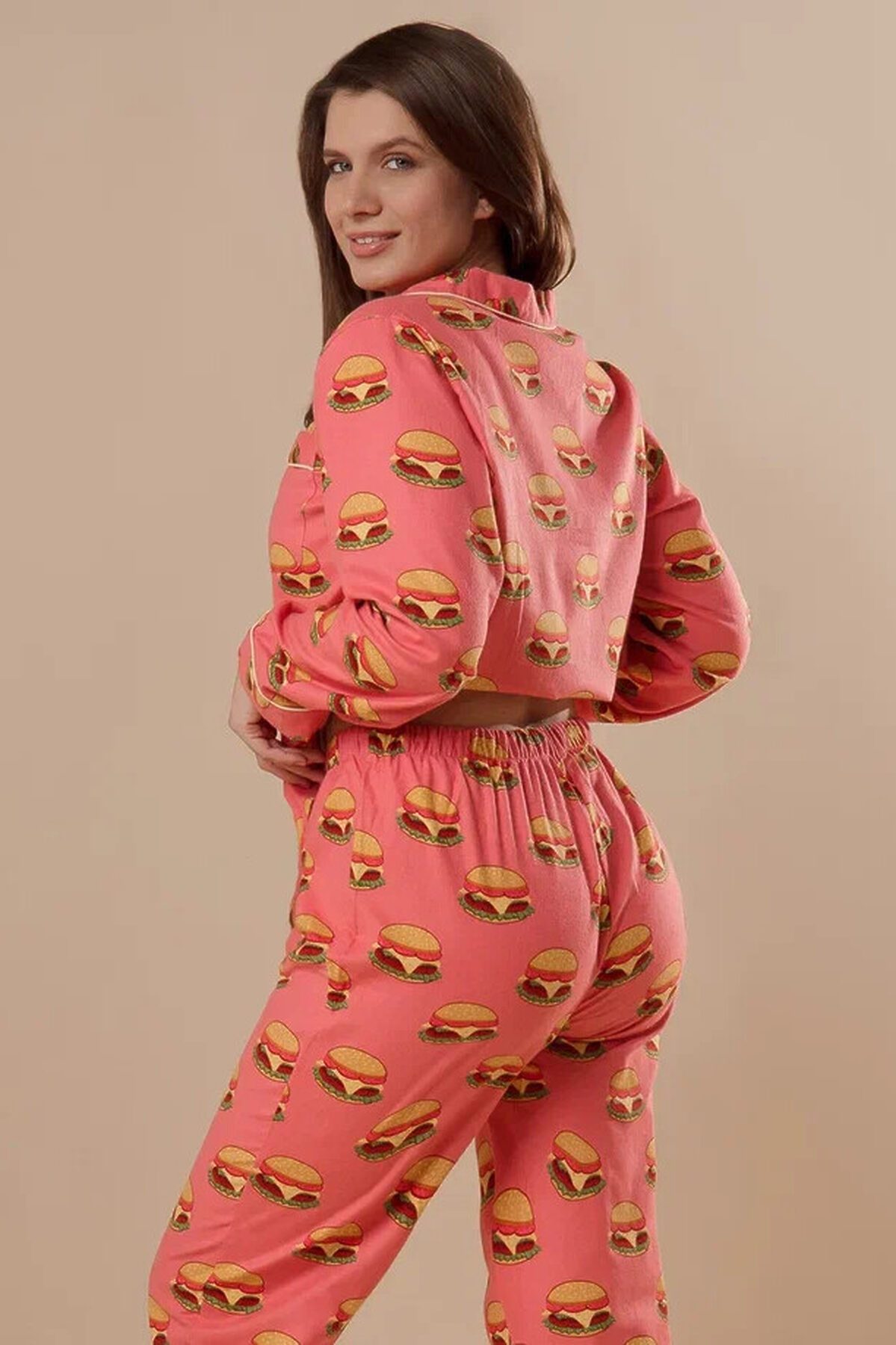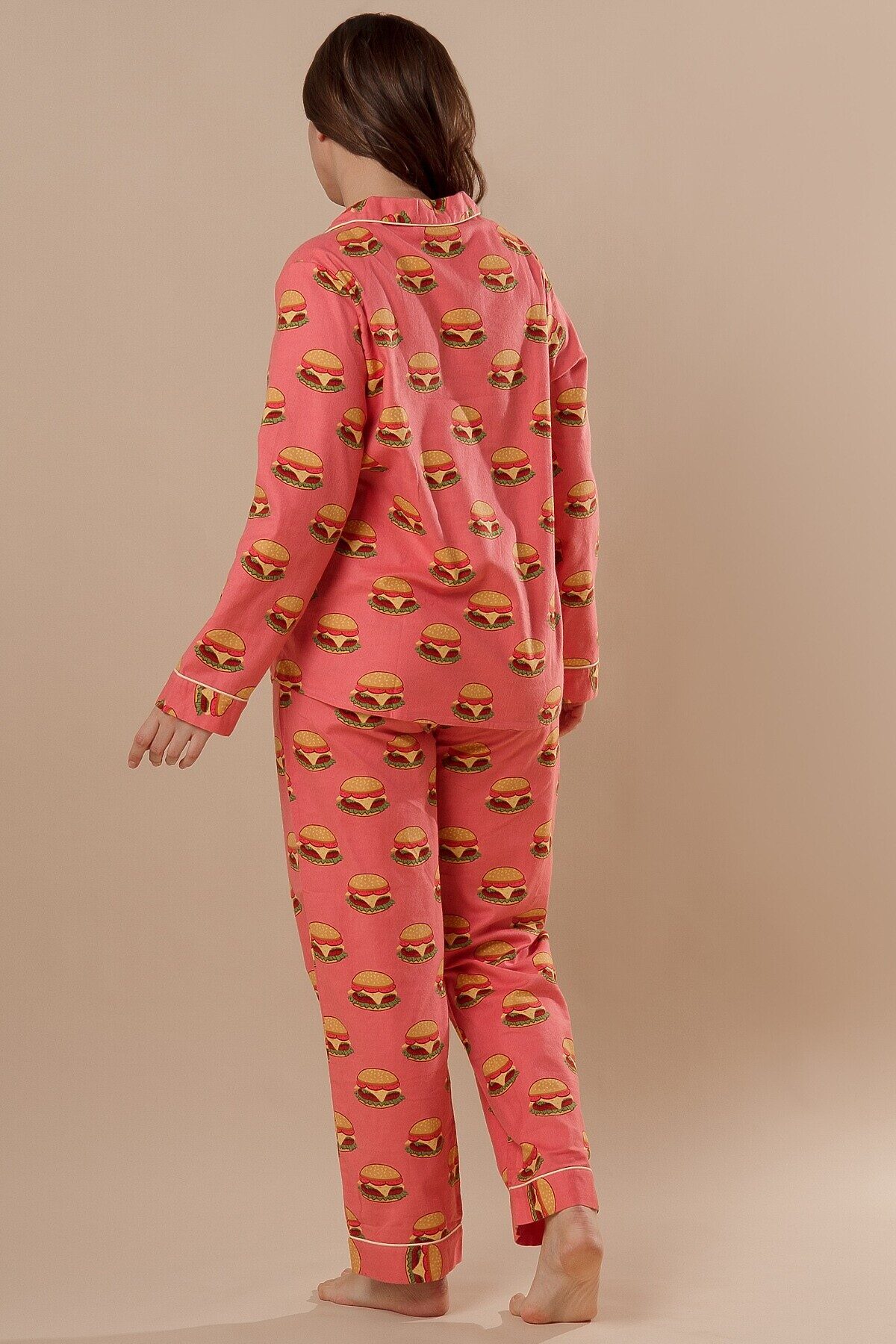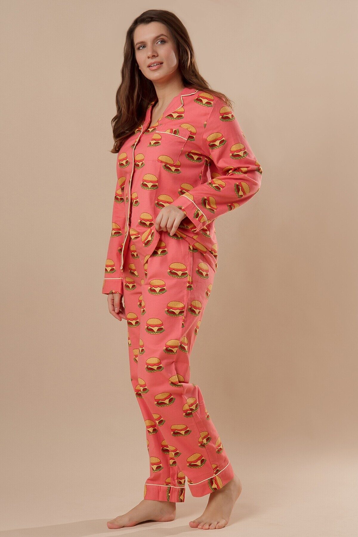 Домашняя пижама от торговой марки Индефини. В комплекте рубашка и брюки. Рубашка из хлопка, оранжево-персикового цвета, с принтом, с длинными рукавами, с воротником-отворотом, с кармашком на груди, с обрамлением, на пуговичках, прямая, свободного кроя. Брюки из хлопка, оранжево-персикового цвета, с принтом, прямые, свободного кроя, с обрамлением, на мягкой резинке, с регулирующей лентой.