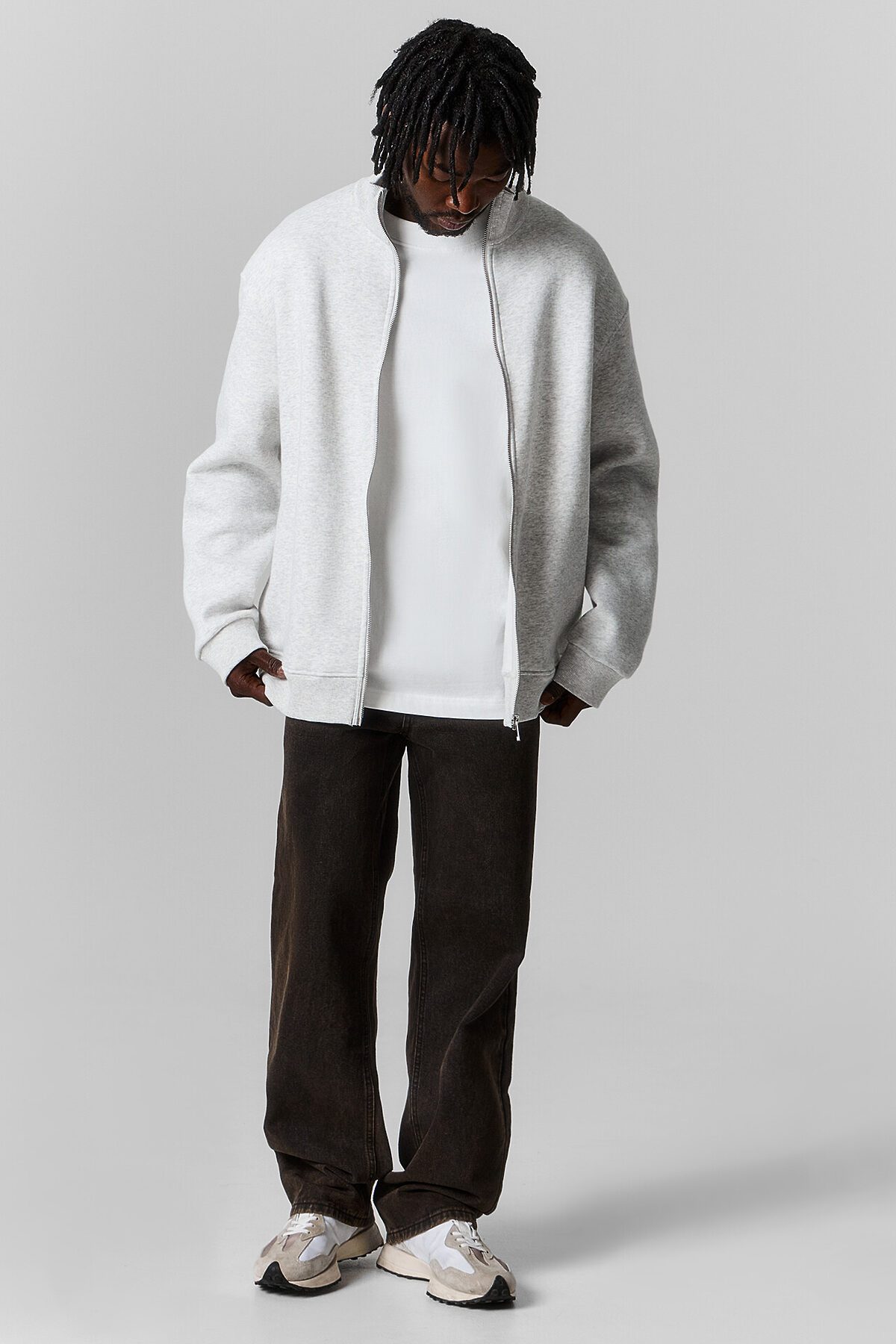 Мужская толстовка прямого силуэта из трикотажного футера с подчесом — практичный и универсальный выбор для прохладных дней. Материал обладает мягкостью и умеренной плотностью, отлично удерживает тепло и приятно ощущается на теле. Округлая горловина с воротником из рибаны аккуратно оформлена и надежно фиксируется, сохраняя форму при носке. Спущенная линия плеча и длинные рукава с рибаной на манжетах обеспечивают комфорт и расслабленный силуэт, подходящий для любого типа фигуры. Центральная застежка на тесьму-молнию позволяет легко надевать и снимать изделие, а также добавляет практичности и динамичного настроения. Пояс из рибаны по низу завершает образ и фиксирует посадку, не давая ткани растягиваться. Толстовка легко комбинируется с джинсами, спортивными брюками или шортами, отлично подходит для города, загородных поездок или активного отдыха.