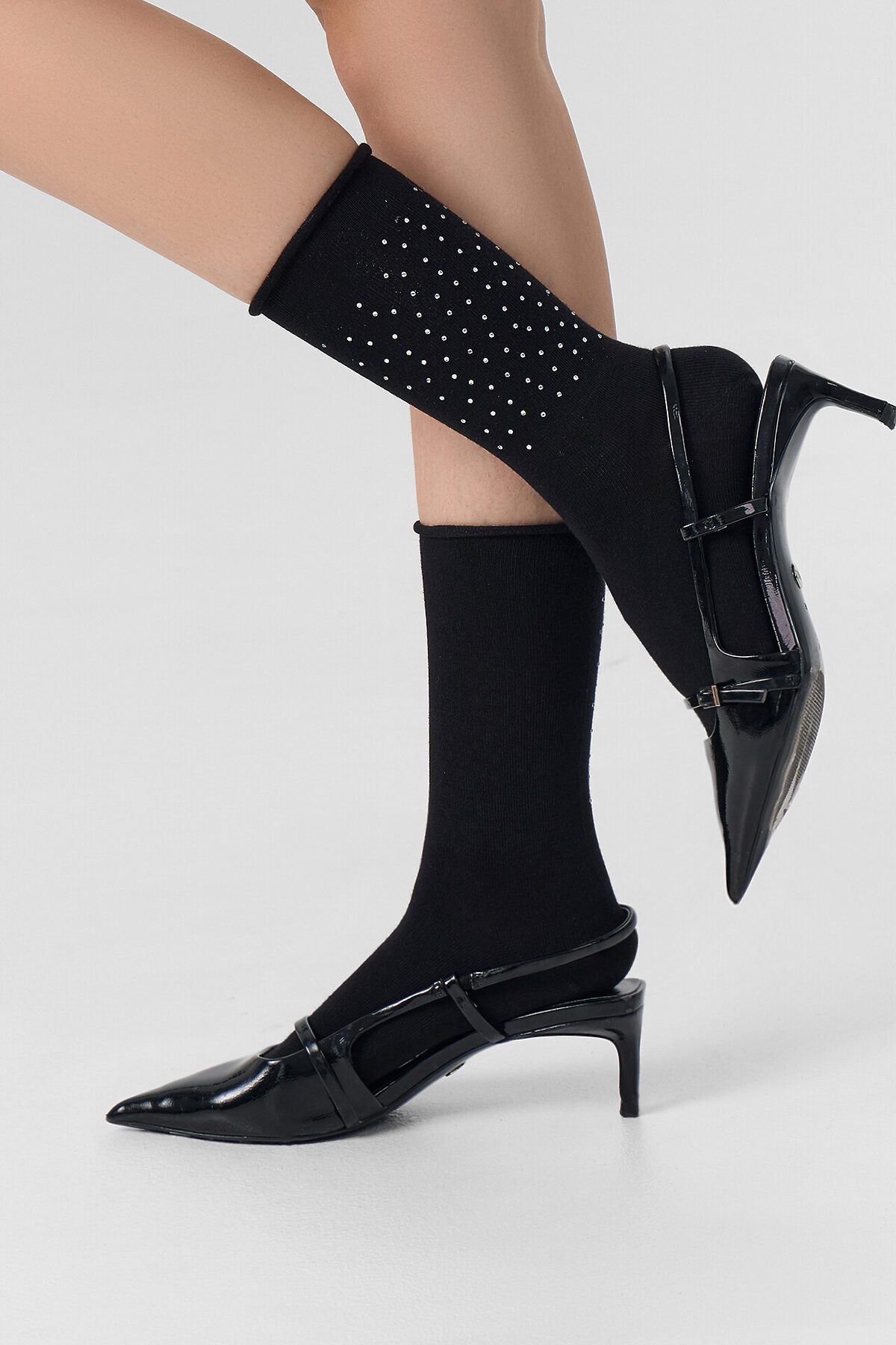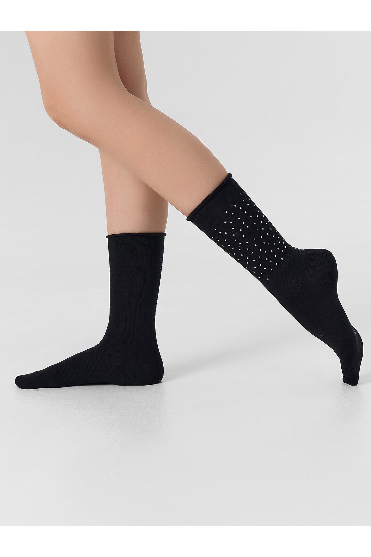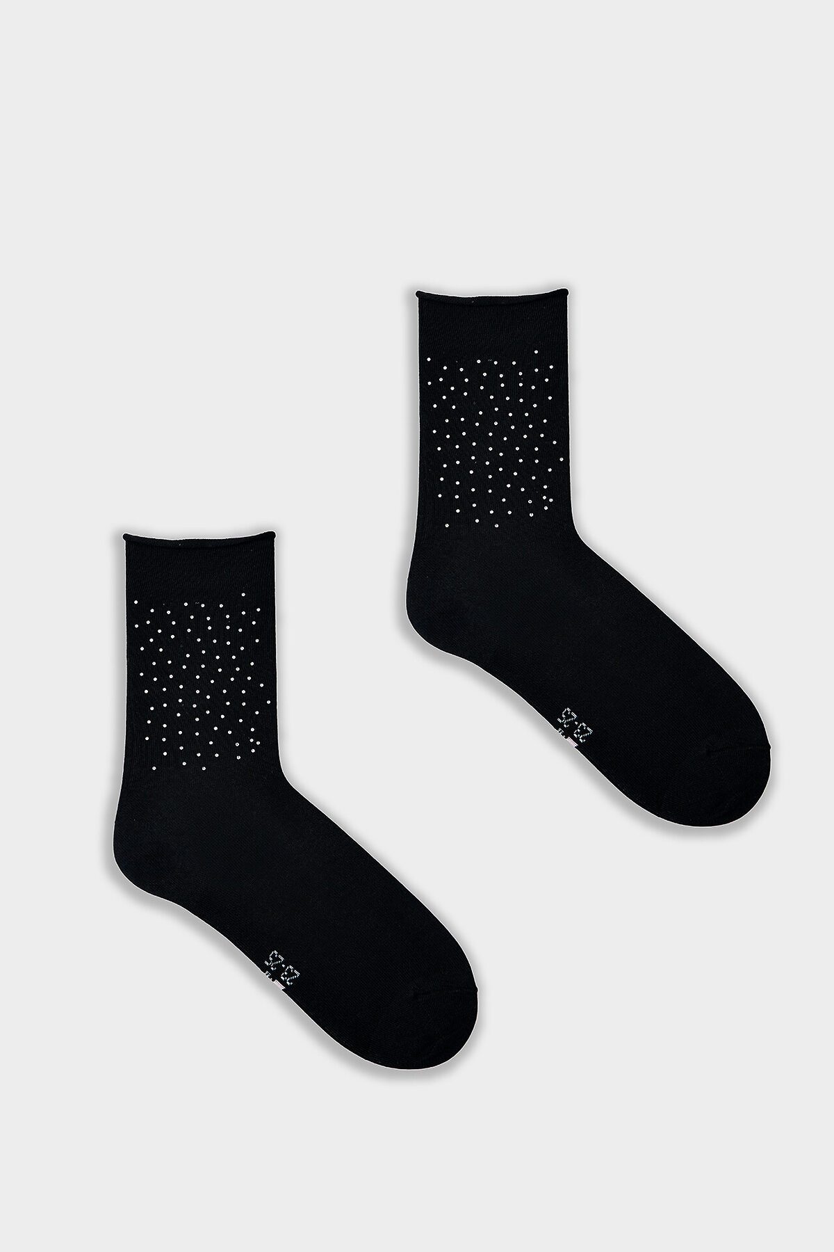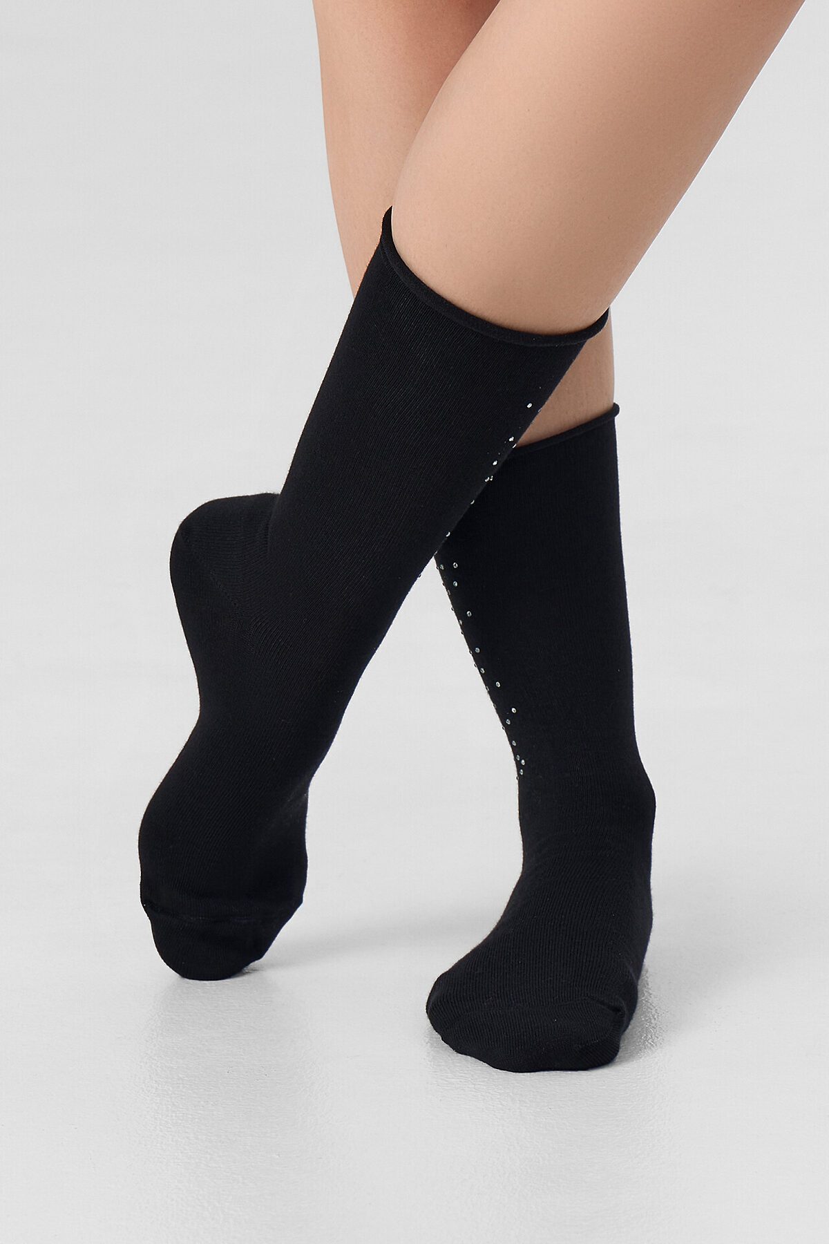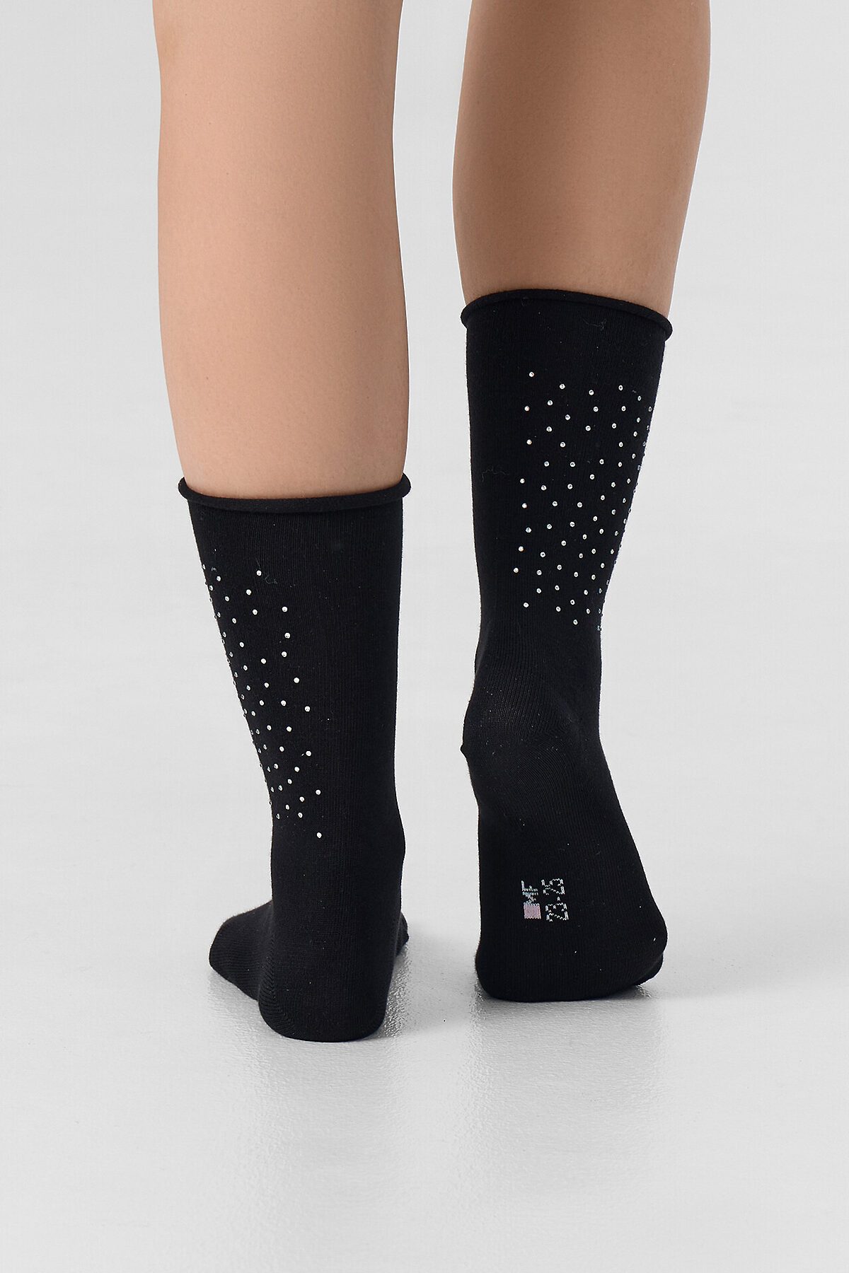 рис.3138 Женские классические, однотонные носки с рисунком в виде сердечка из страз.