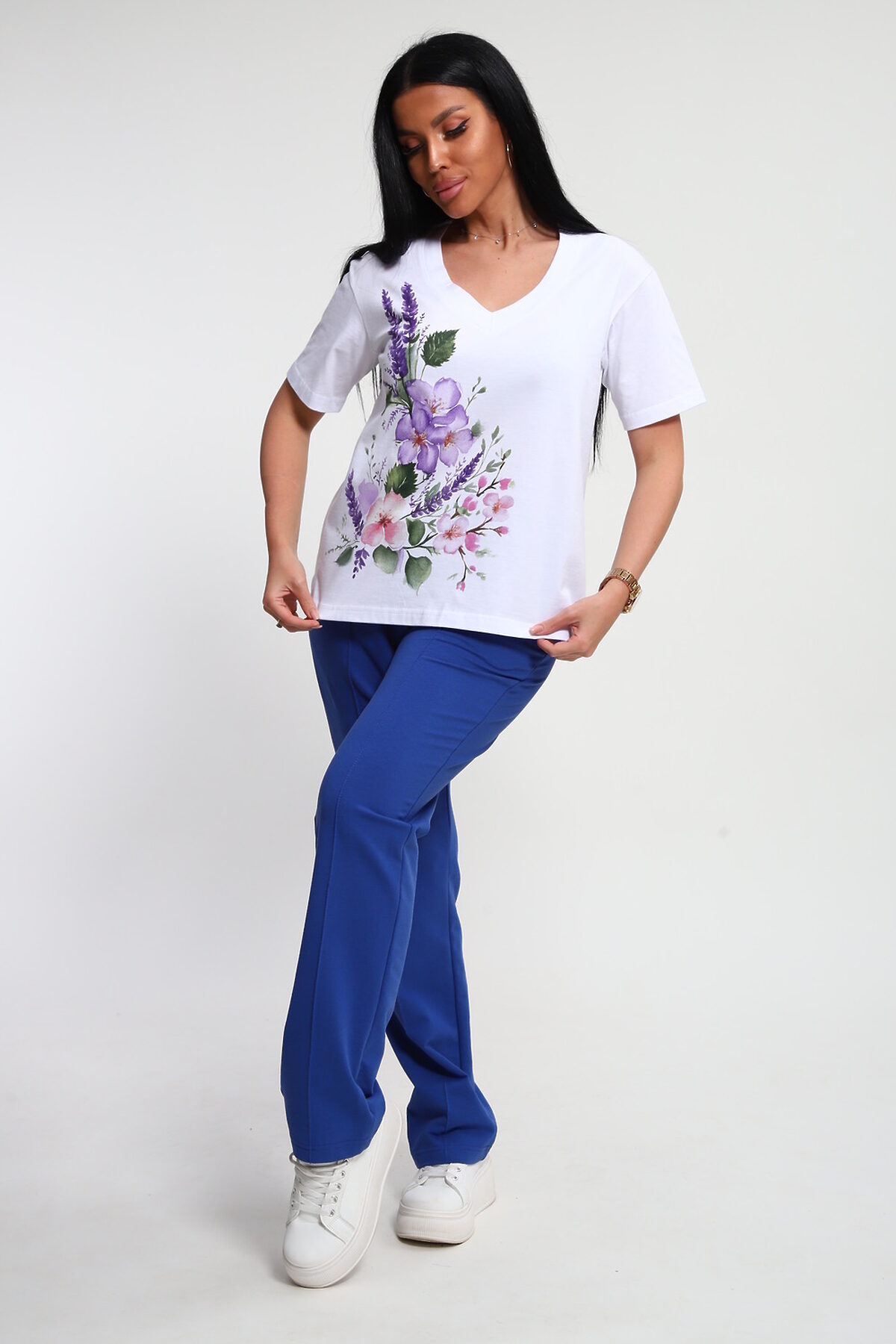 Костюм женский это стильный и идеальный предмет гардероба ,идеально подходящий для дома и отдыха на любой период :весенний ,осенний, летний и зимний . Комплект состоит из футболки с красочным принтом и брюки в контрастном цвете. В составе ткани 100% хлопок . Хлопковый материал очень комфортный и лёгкий в носке . Брюки с удобной посадкой придадут вашему образу стильный и модный вид . Базовый современный костюмчик популярный повседневный выбор на каждый день : на работу , для прогулок , праздников и на дачу . Универсальный стиль позволит вам создавать разнообразные образы , подходящие для любого события.