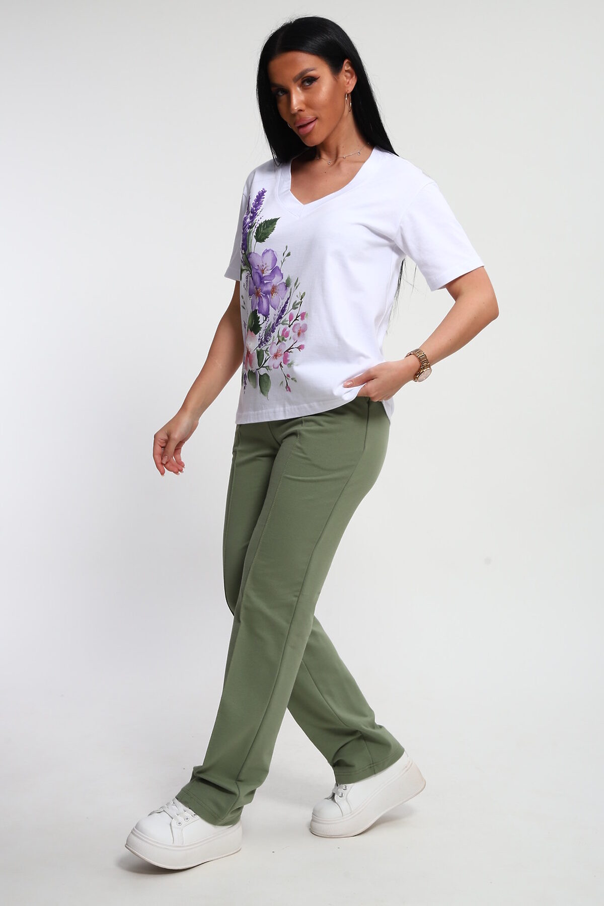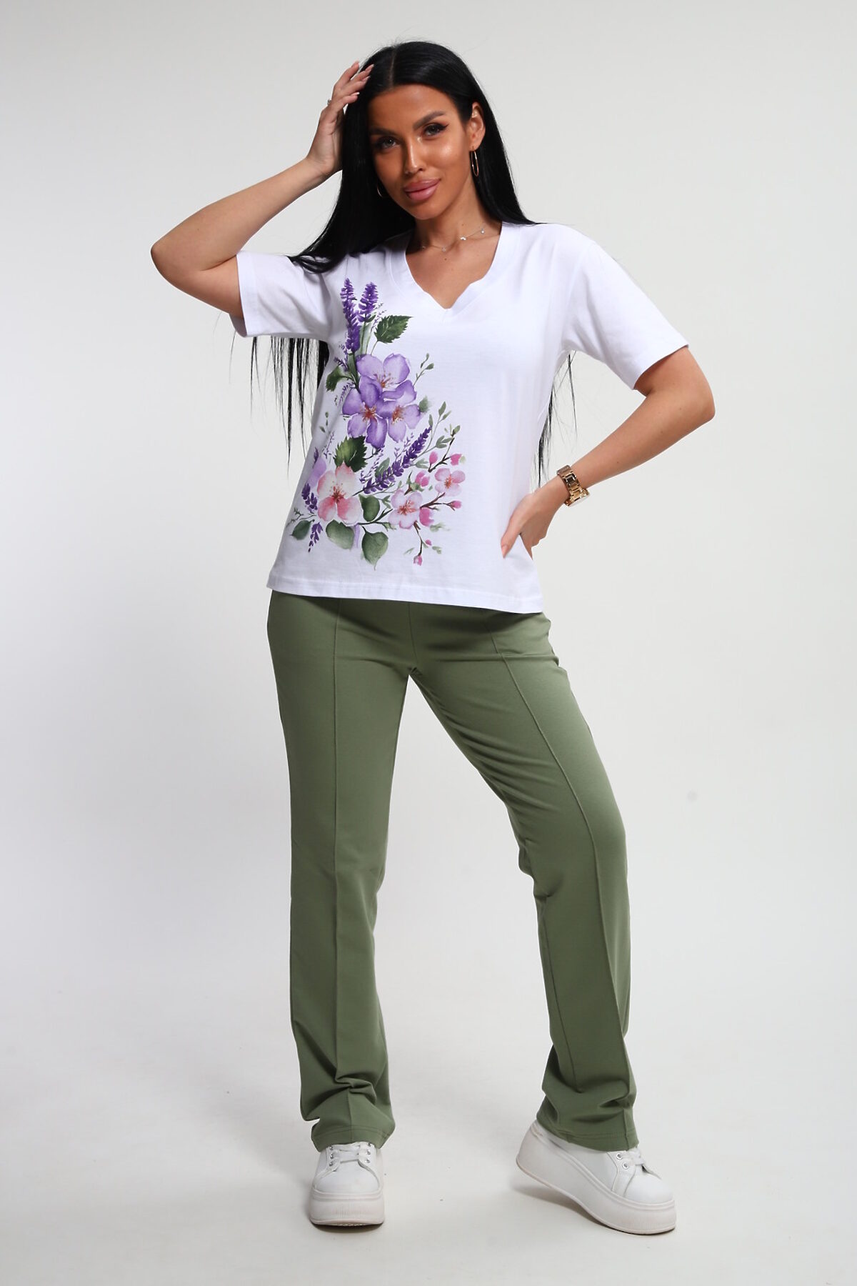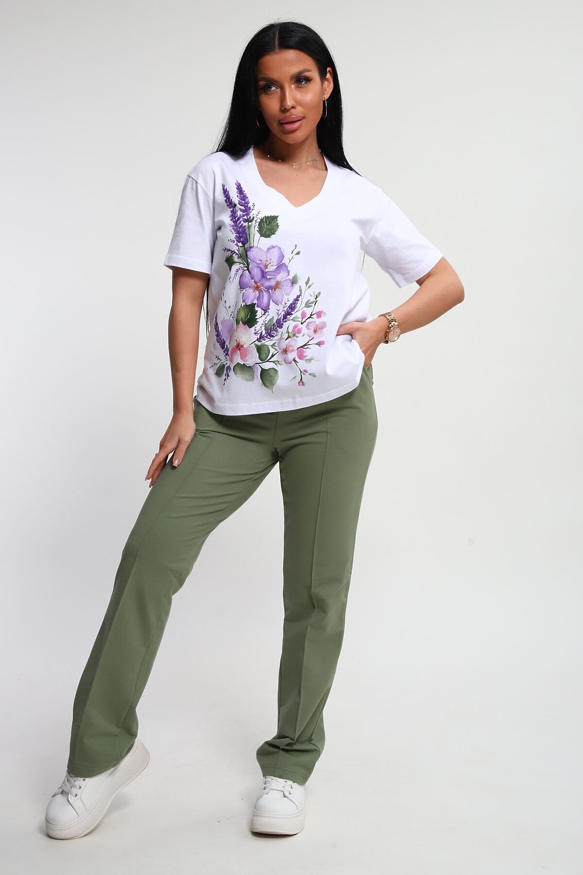 Костюм женский это стильный и идеальный предмет гардероба ,идеально подходящий для дома и отдыха на любой период :весенний ,осенний, летний и зимний . Комплект состоит из футболки с красочным принтом и брюки в контрастном цвете. В составе ткани 100% хлопок . Хлопковый материал очень комфортный и лёгкий в носке . Брюки с удобной посадкой придадут вашему образу стильный и модный вид . Базовый современный костюмчик популярный повседневный выбор на каждый день : на работу , для прогулок , праздников и на дачу . Универсальный стиль позволит вам создавать разнообразные образы , подходящие для любого события.