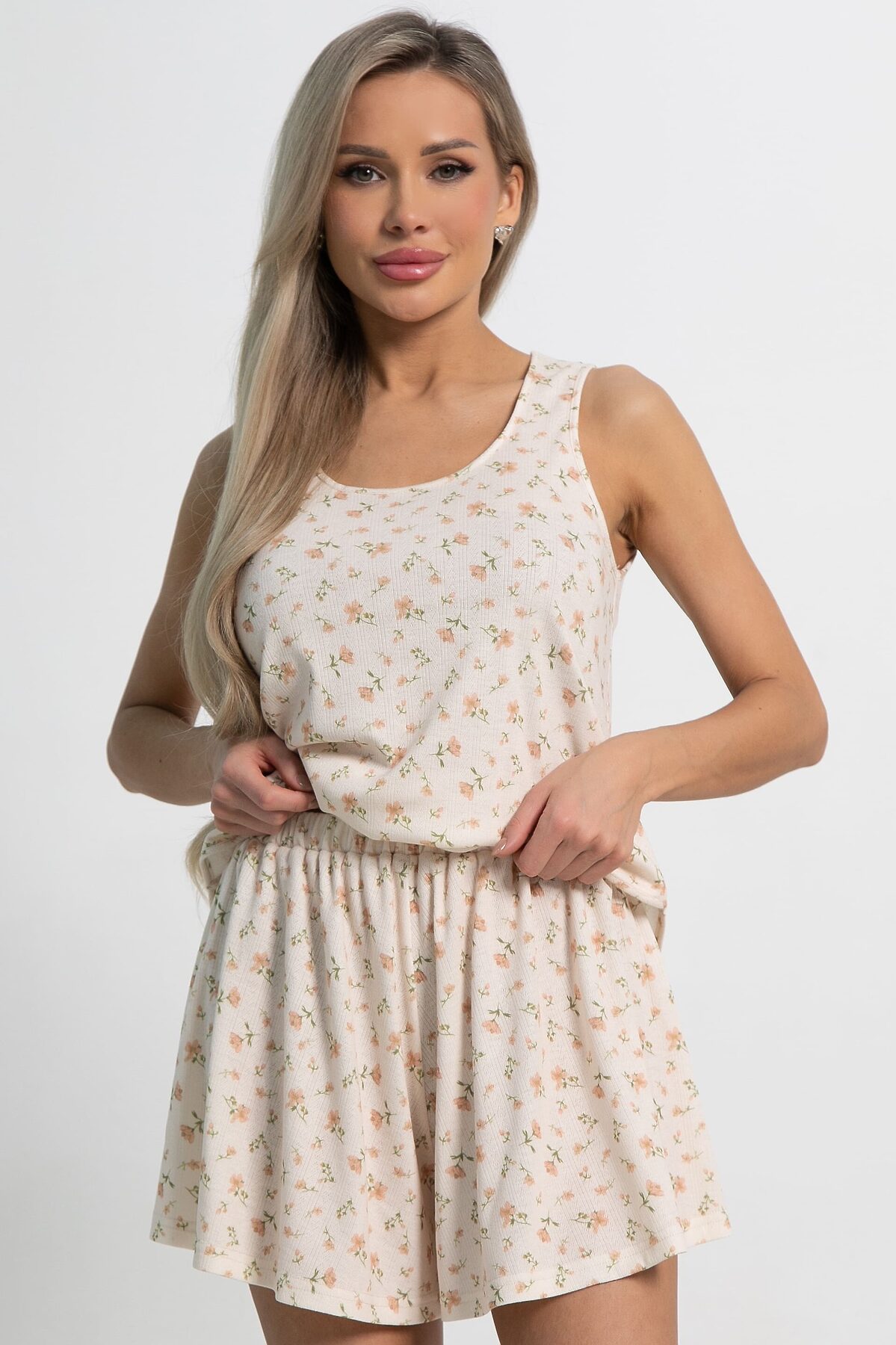 Выбирайте домашний отдых с удовольствием и стилем! Эта очаровательная пижама в бежево-розовой расцветке подарит вам максимум комфорта и красоты. Она сочетает практичность и эстетику, становясь любимой частью вашего домашнего гардероба. В комплект входят удобная майка и шорты. Яркий оригинальный принт поднимет настроение и освежит образ. Пижама — это не просто одежда для сна, а способ выразить себя и чувствовать свободно и уверенно дома. Создайте яркий и стильный образ, наслаждаясь непревзойденным комфортом при каждом движении!