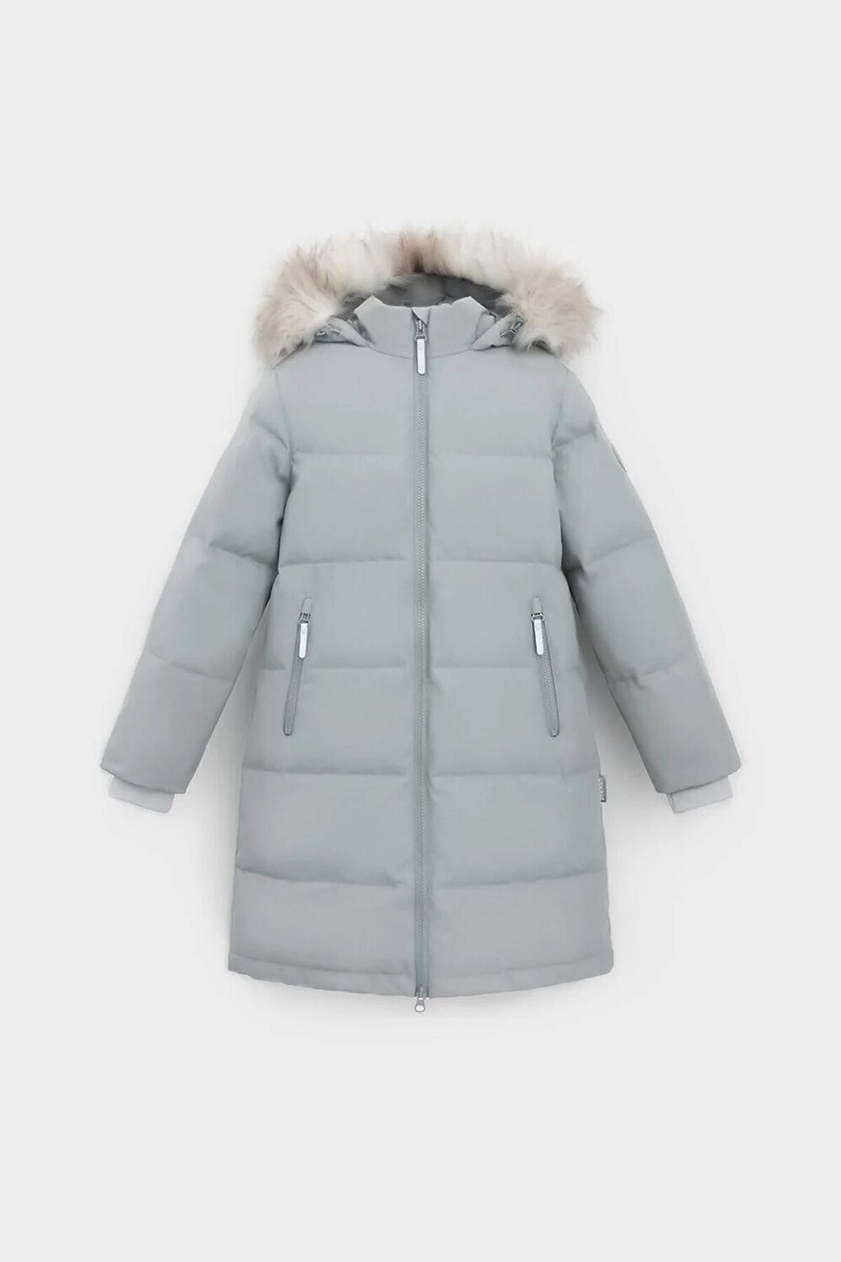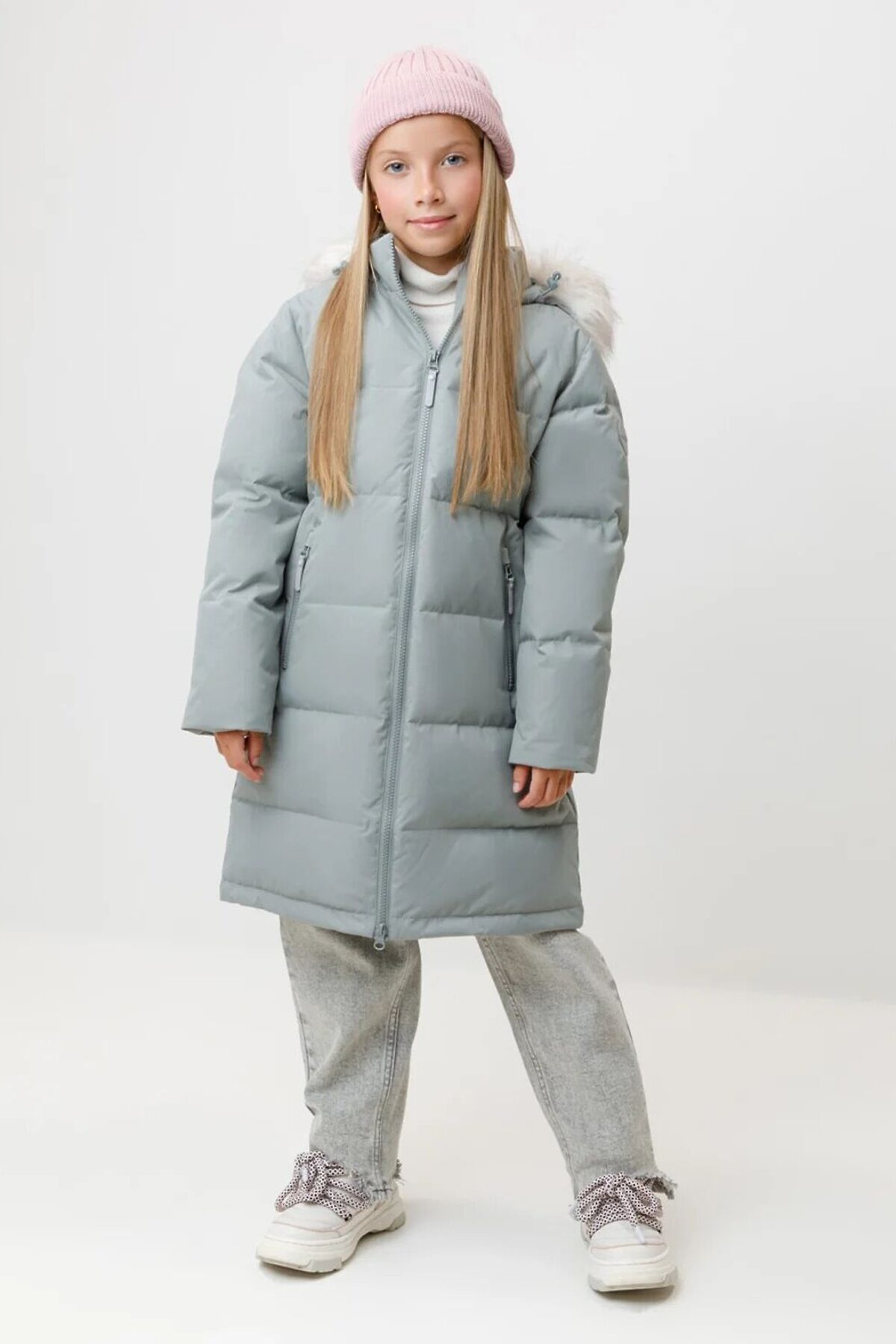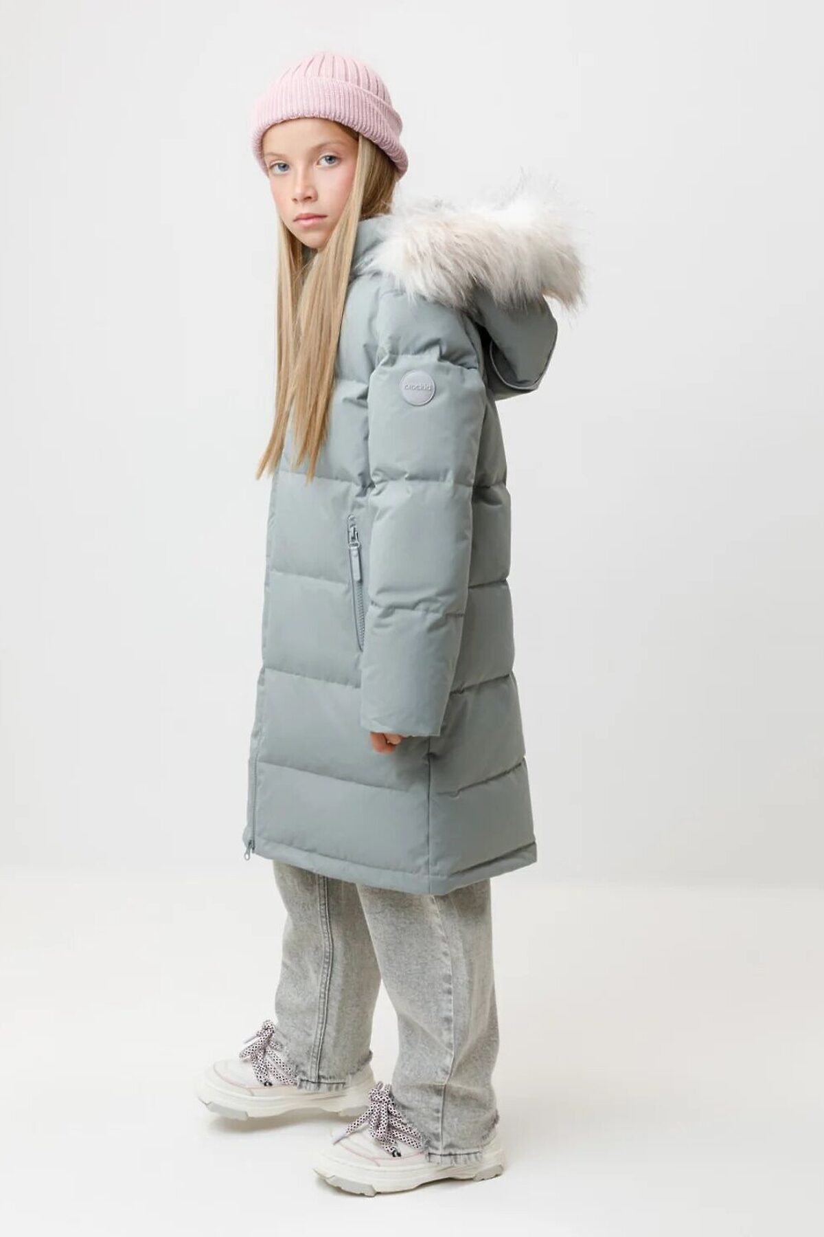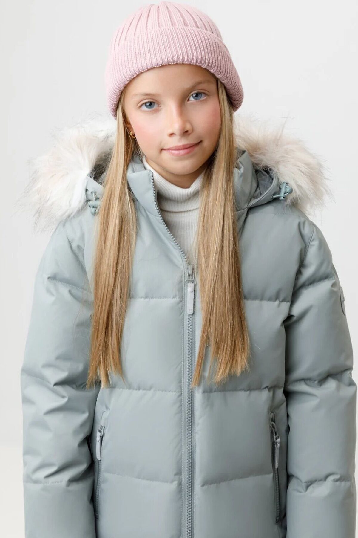 Зимнее пальто для девочки с натуральным утеплителем из гусиного пуха (70%) и пера (30%). Выполнено из мембранной ткани с дополнительной тефлоновой обработкой, которая предохраняет изделие от загрязнений и отталкивает влагу. Подклад выполнен из 100% полиэстера. Пальто застёгивается на молнию, предусмотрена защита подбородка. Несъёмный капюшон имеет эластичные утяжки и отстёгивающийся искусственный мех. По бокам два кармана на молнии. В рукавах мягкие внутренние манжеты. Во всех изделиях верхнего ассортимента для безопасности ребёнка предусмотрены светоотражающие элементы.