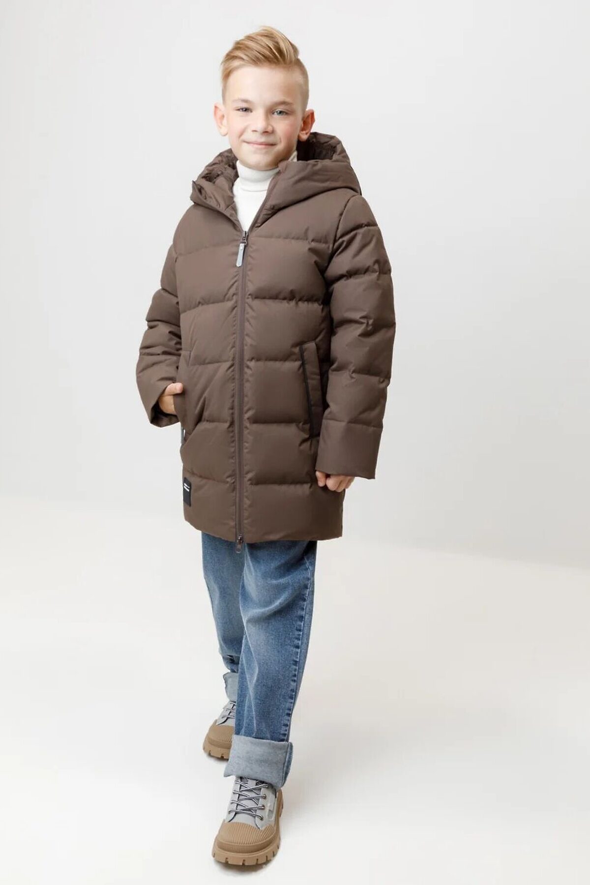 Зимнее пальто для мальчика с натуральным утеплителем из гусиного пуха (70%) и пера (30%). Выполнено из мембранной ткани с дополнительной тефлоновой обработкой, которая предохраняет изделие от загрязнений и отталкивает влагу. Подклад выполнен из 100% полиэстера. Пальто застёгивается на молнию, предусмотрена защита подбородка. Несъёмный капюшон имеет эластичные утяжки. По бокам два кармана на молнии, так же имеется внутренний карман. В рукавах мягкие внутренние манжеты. Во всех изделиях верхнего ассортимента для безопасности ребёнка предусмотрены светоотражающие элементы.