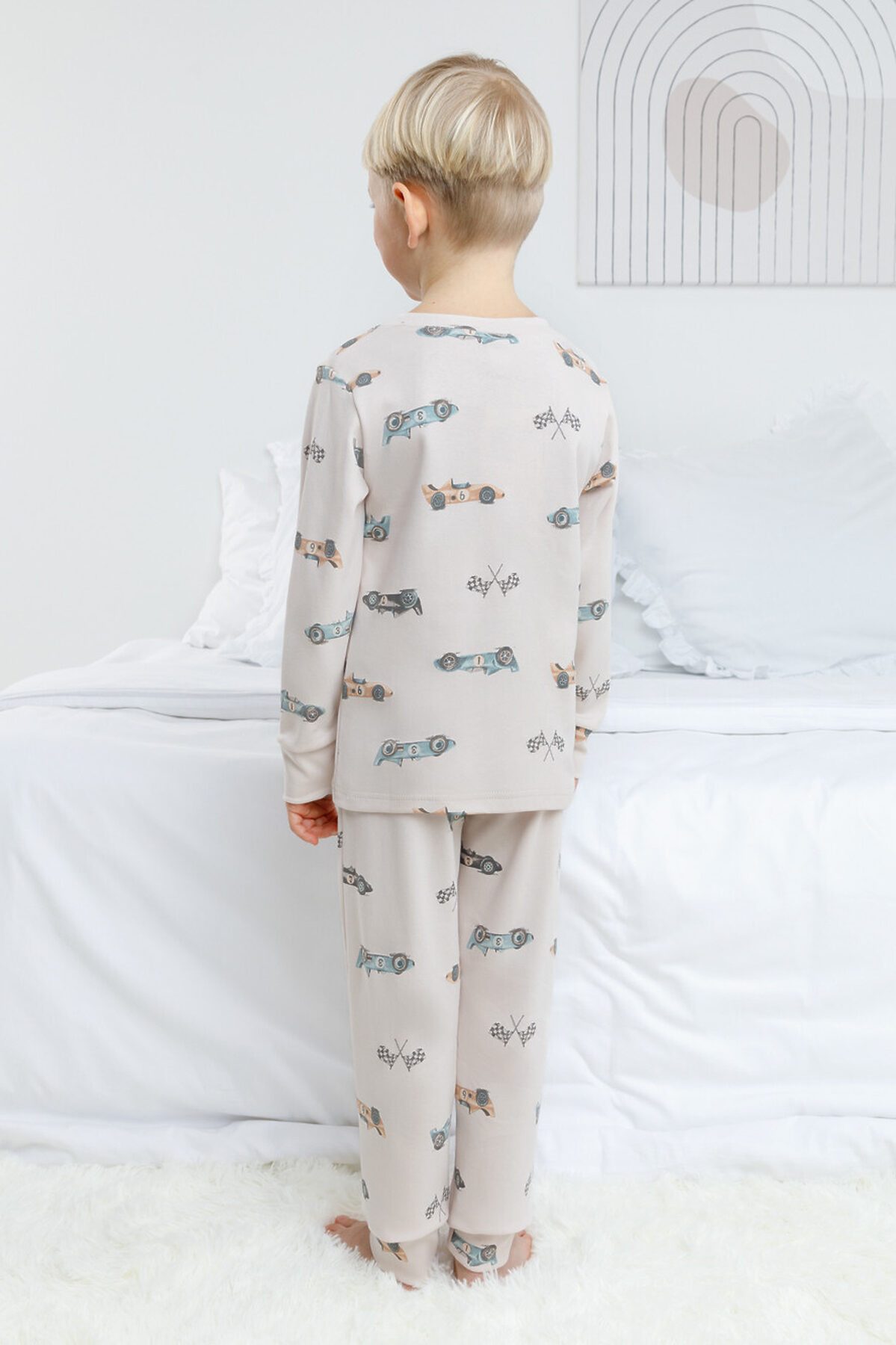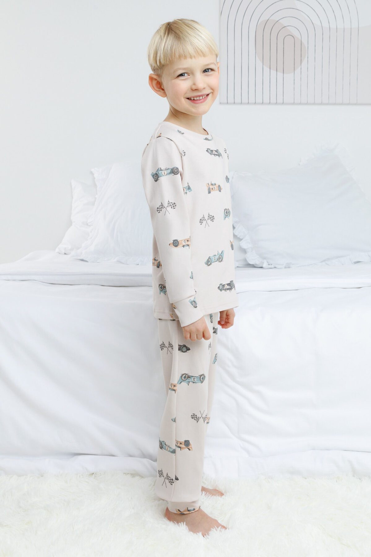 Трикотажная пижама из натурального хлопка. Джемпер с длинными рукавами с эластичными манжетами. У брюк эластичный пояс на резинке. Оригинальная набивка выполнена из стойких, гипоаллергенных текстильных красителей. Пижама сохраняет цвет и форму после многократных стирок. Все трикотажные полотна производятся в соответствии с нормами Швейцарского сертификата ЭкоТекс.