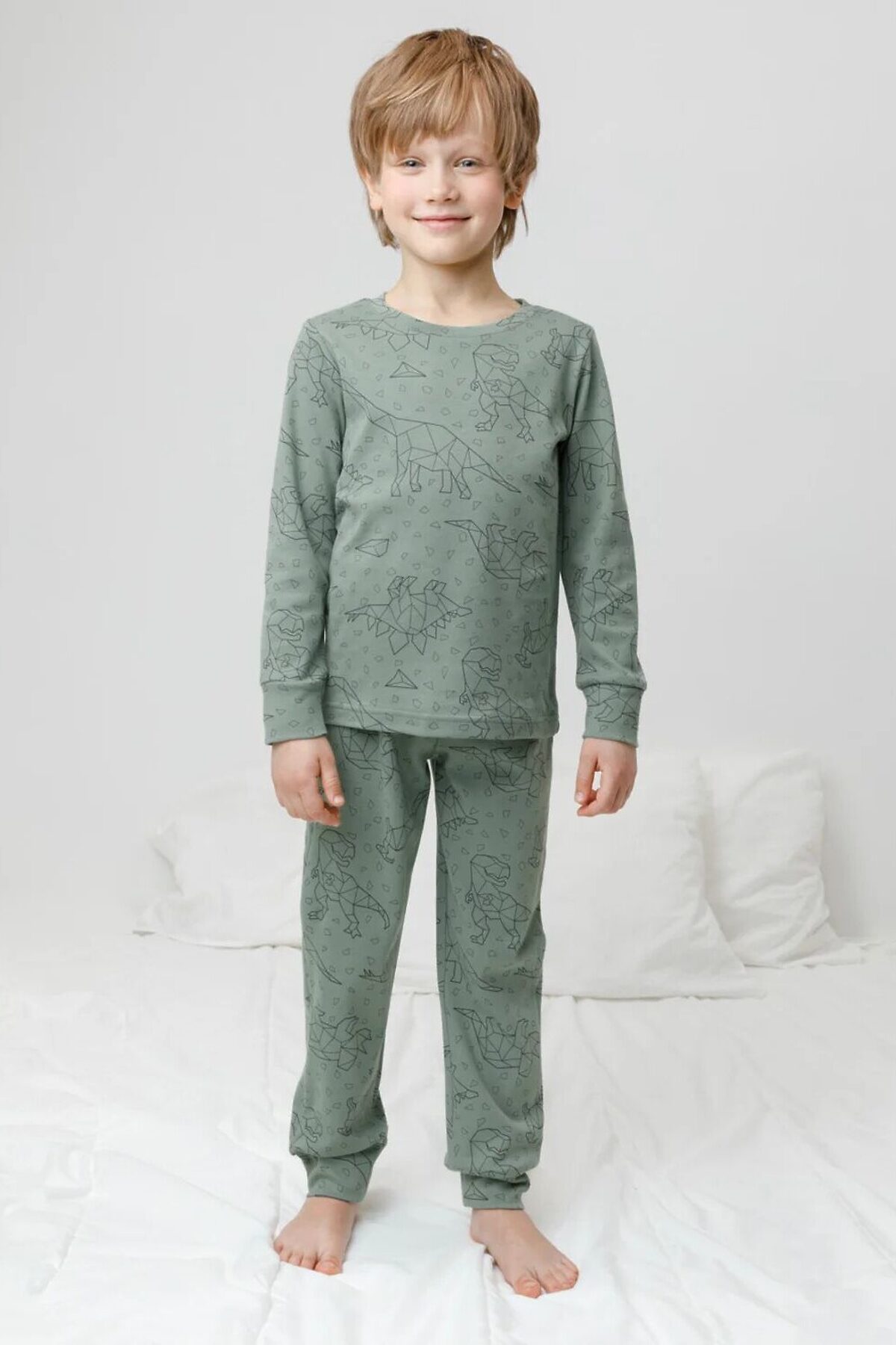 - АртикулК 1552/весенний зеленый,динозавры пижама
