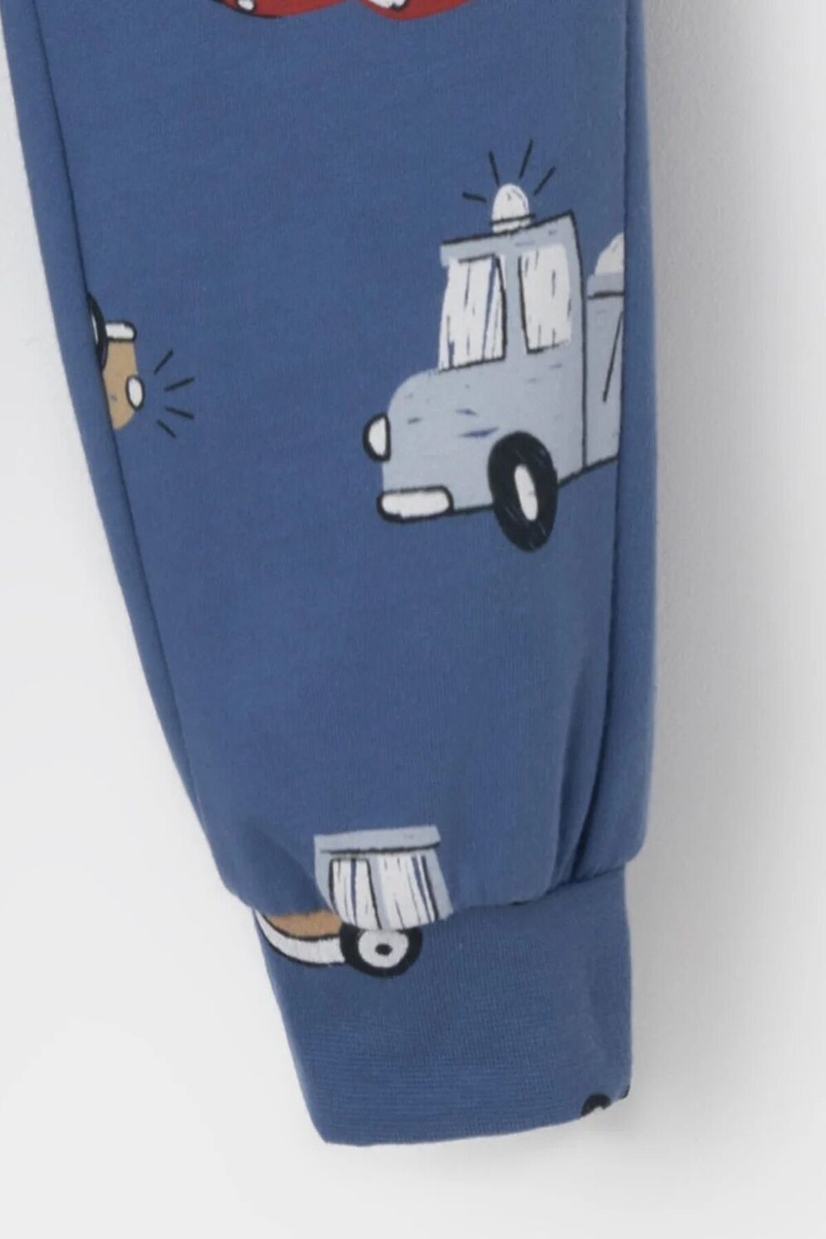Трикотажная пижама с начёсом из натурального хлопка. Джемпер с длинными спущенными рукавами и брюки с эластичной резинкой в поясе. Мягкие манжеты на рукавах и по низу брюк. Оригинальные набивка и принт выполнены из стойких гипоаллергенных текстильных гипоаллергенных красителей. Изделие сохраняет цвет и форму после многократных стирок. Все трикотажные полотна производятся в соответсвии с нормами швейцарского сертификата ЭкоТекс.