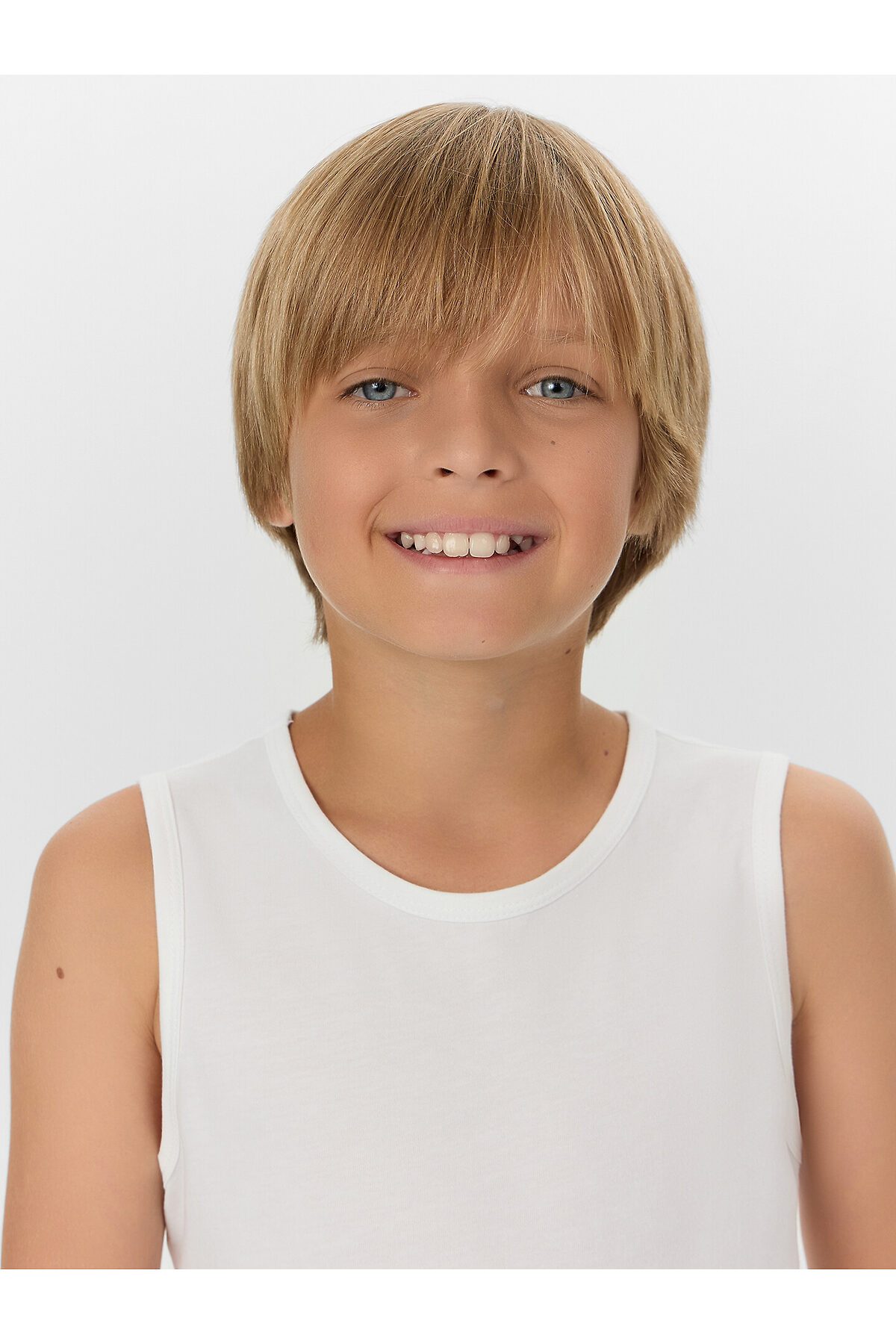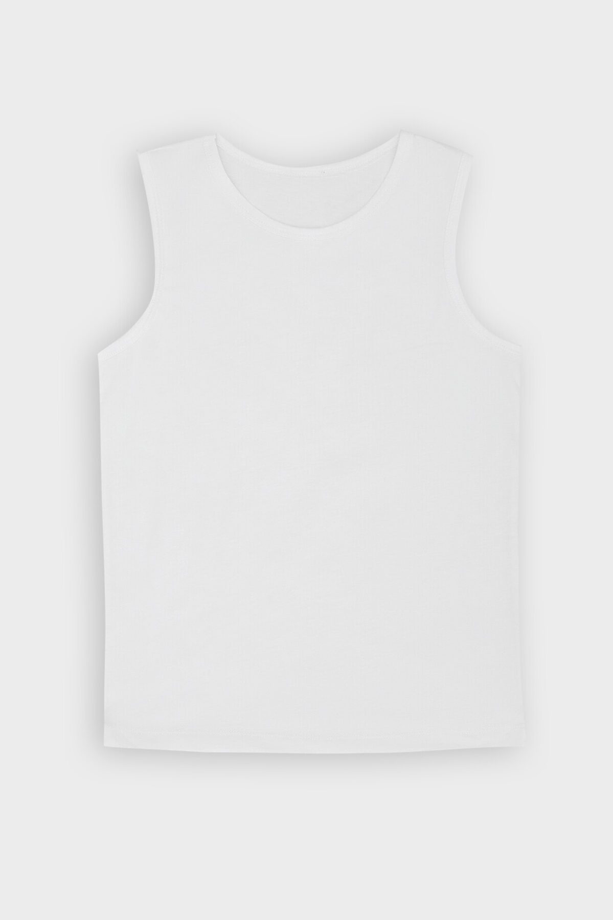 Майка полуприлегающего силуэта из хлопковой трикотажной кулирки. Длина до середины бедер. Горловина круглая, окантована мягкой бейкой. Нижний срез обработан плоским швом. Комфортная классика для вашего мальчика!