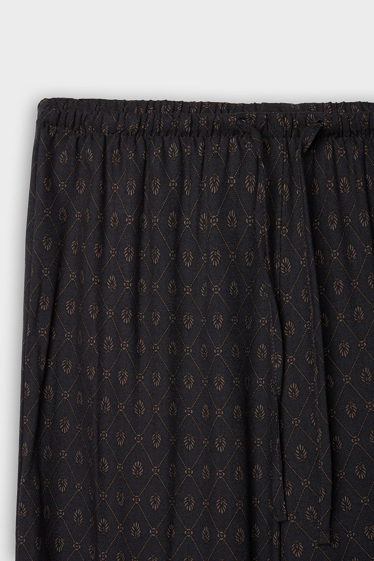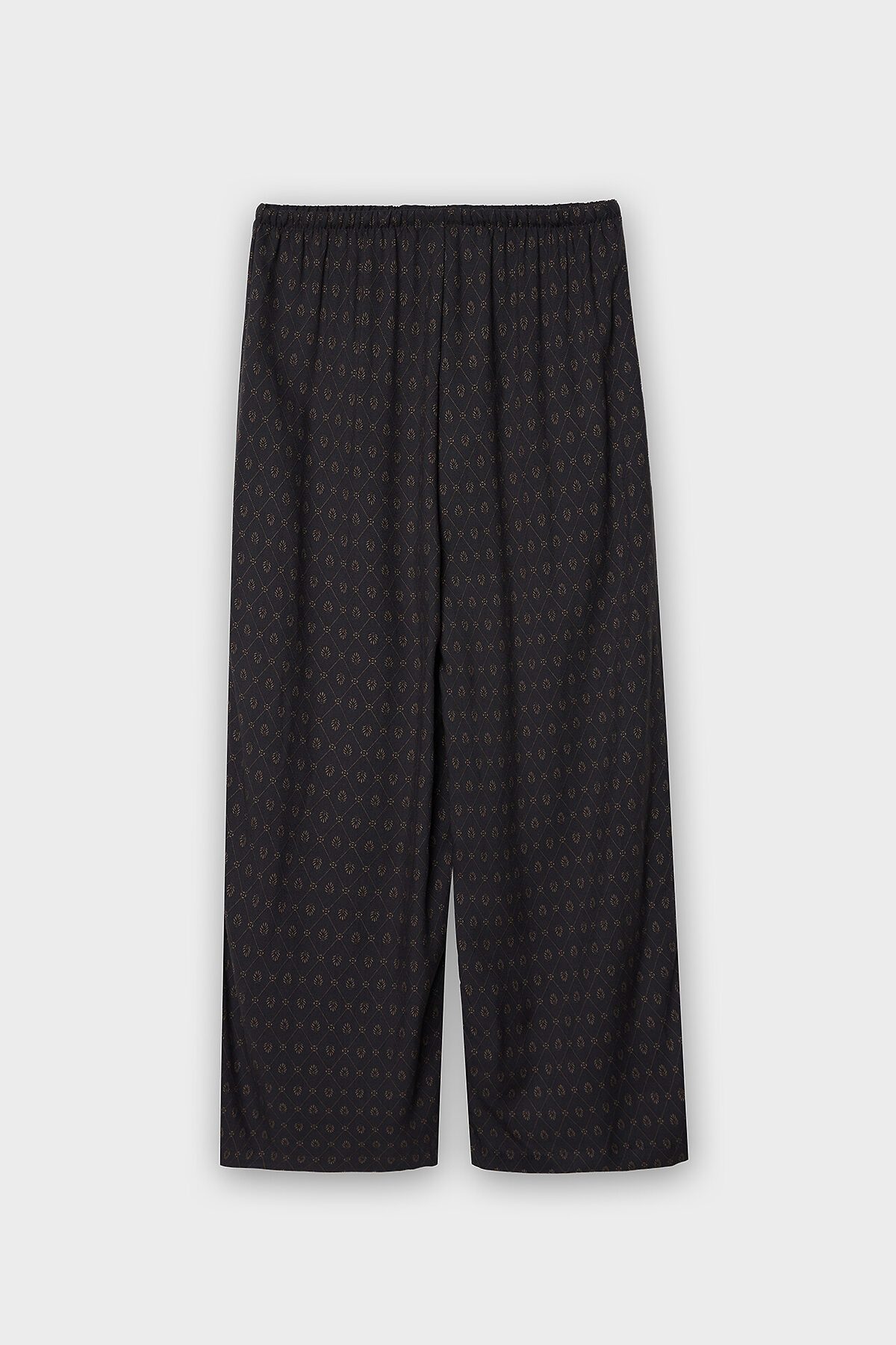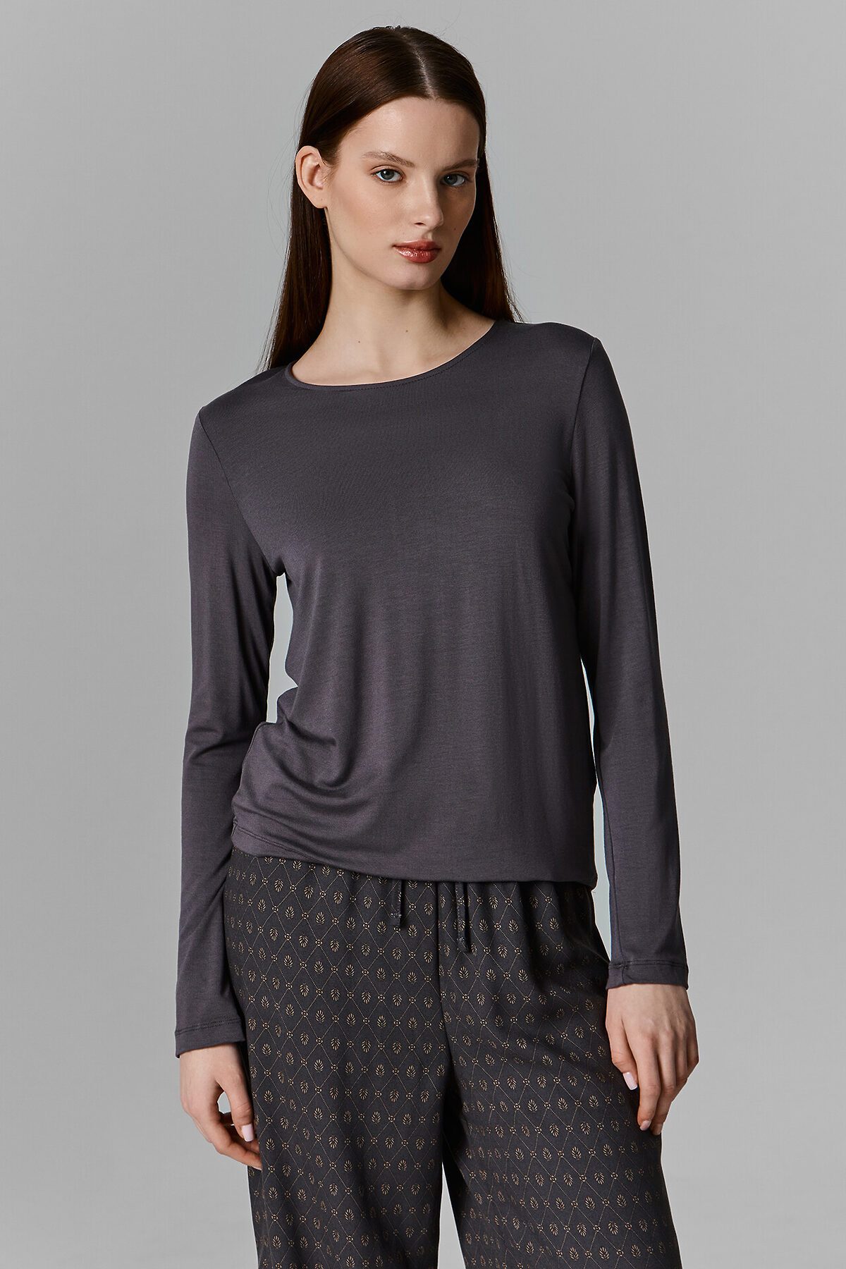Комплект женский состоит из джемпера и бридж. Джемпер прямого силуэта. Горловина овальной формы окантована бейкой из основного полотна в чистый край. Рукава втачные длинные. Нижний срез джемпера и рукавов обработан швом вподгибку. Бриджи прямые свободные, короткие. Пояс цельнокроеный с эластичной тесьмой внутри (внутр. 20мм 20RV). По переду пробиты петли и втянут шнур-бейка из основного полотна. Нижний срез обработан швом вподгибку с закрытым срезом.