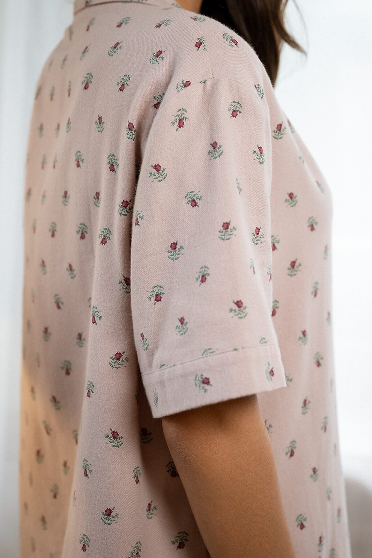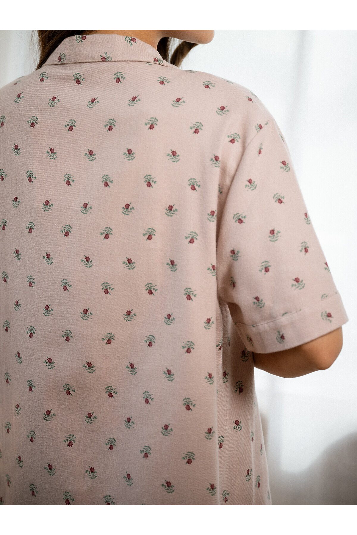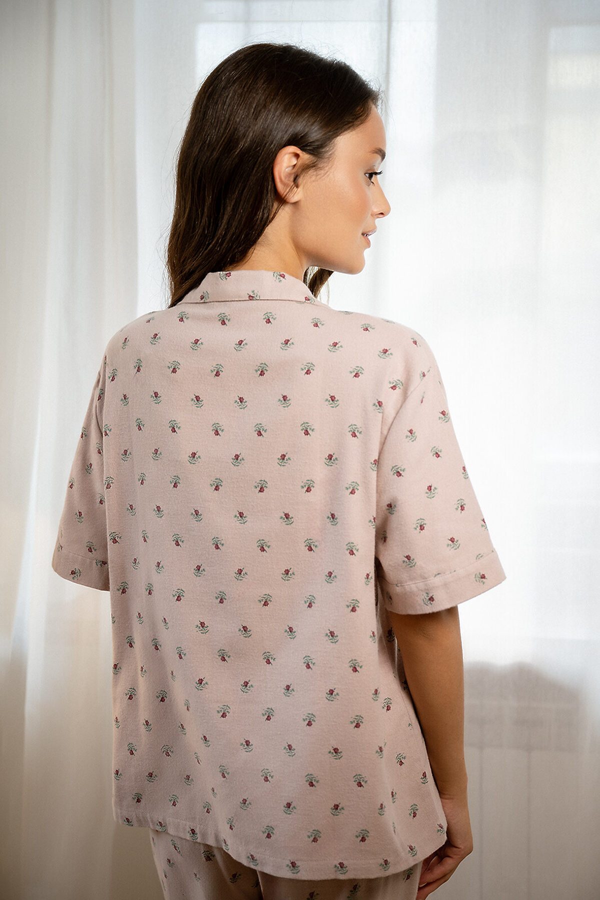 остюм женский 5187TBC бренда Indefini изготовлен из хлопка. Выполнен в бежевом цвете. Состоит из рубашки и брюк. Рубашка на пуговицах с длинными рукавами и отложным воротником. Брюки на мягкой широкой резинке имеют два боковых кармана.