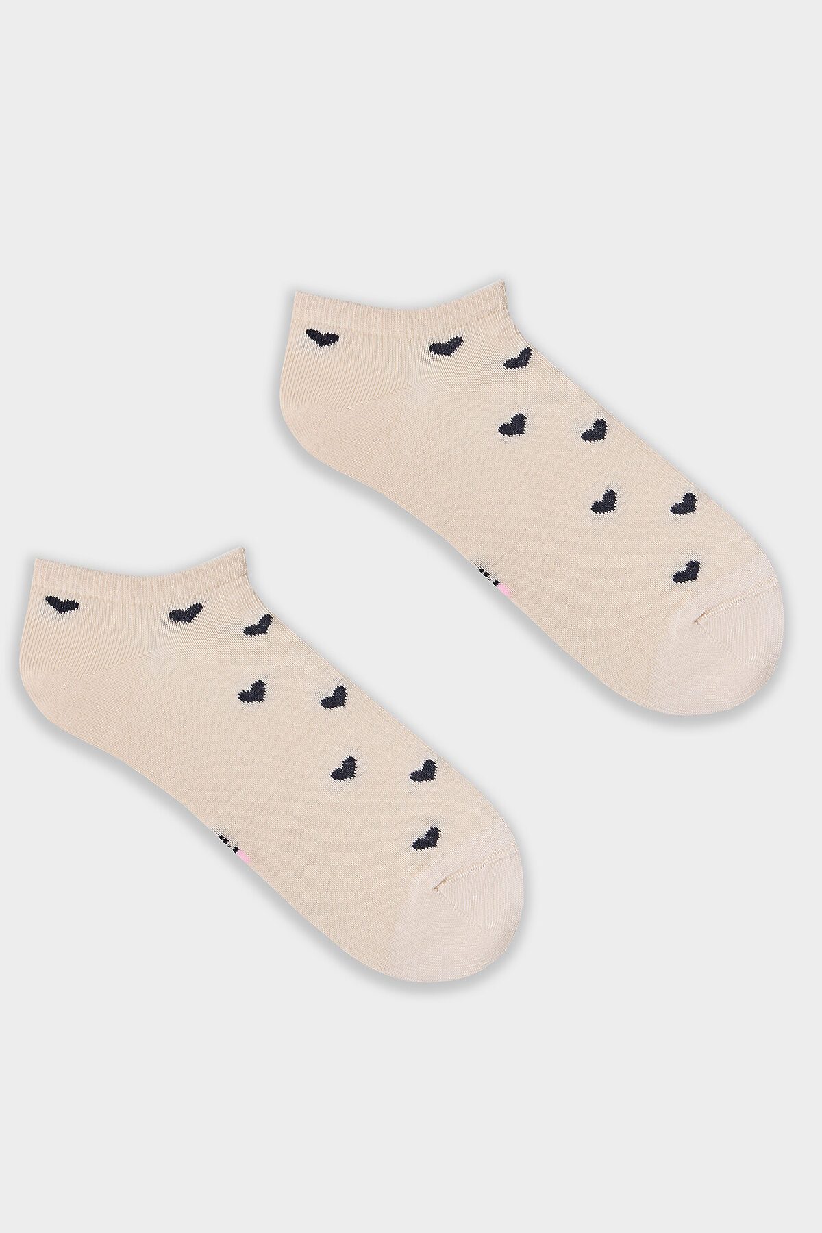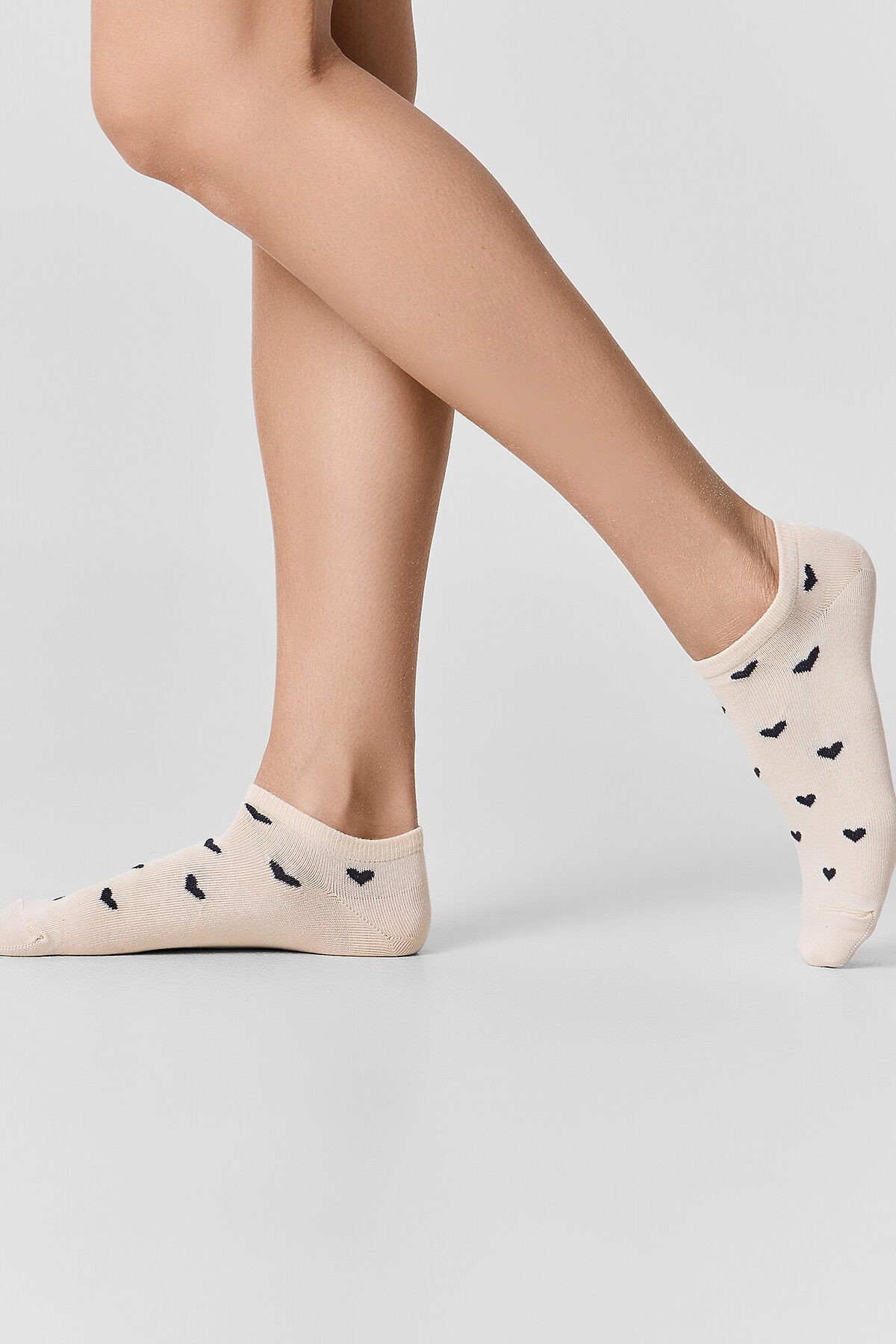 Женские укороченные носочки с узором в виде сердечек — очаровательное дополнение к гардеробу! Изготовленные из мягкого хлопка, они обеспечивают комфортную посадку, приятные тактильные ощущения и отличную воздухопроницаемость.Эластичные волокна в составе пряжи позволяют носочкам мягко облегать ногу, сохраняя форму и удобство при носке. Романтичный узор в виде сердечек добавляет игривый и нежный акцент, делая носочки не только функциональными, но и стильными. Отличный выбор для создания уютного и милого образа!
