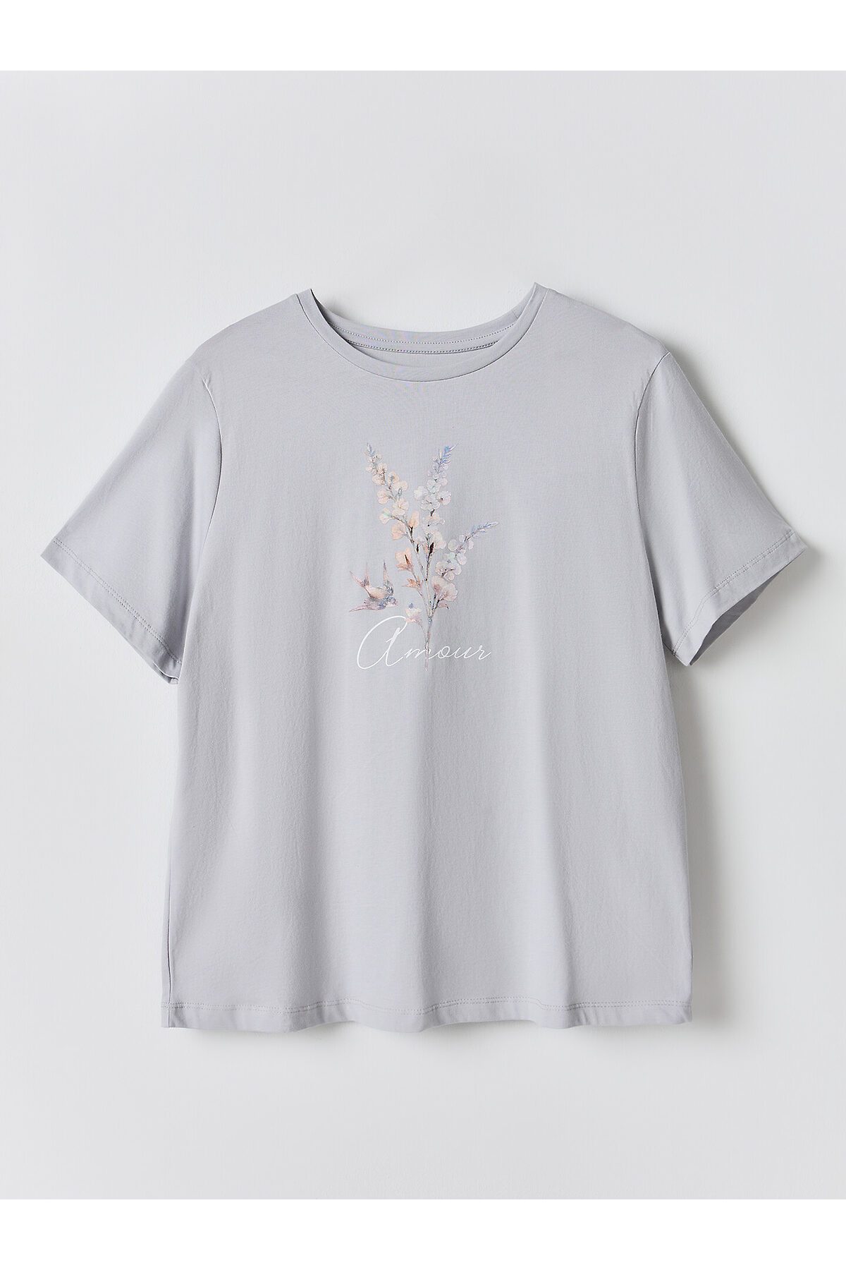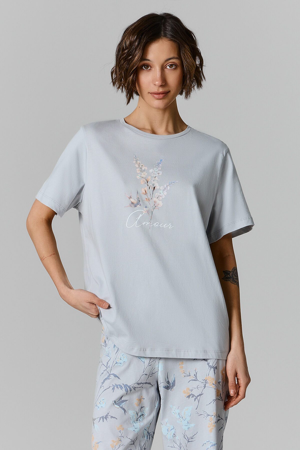 Комплект женский (футболка, бриджи) MARK FORMELLE, серый +веточки на сером