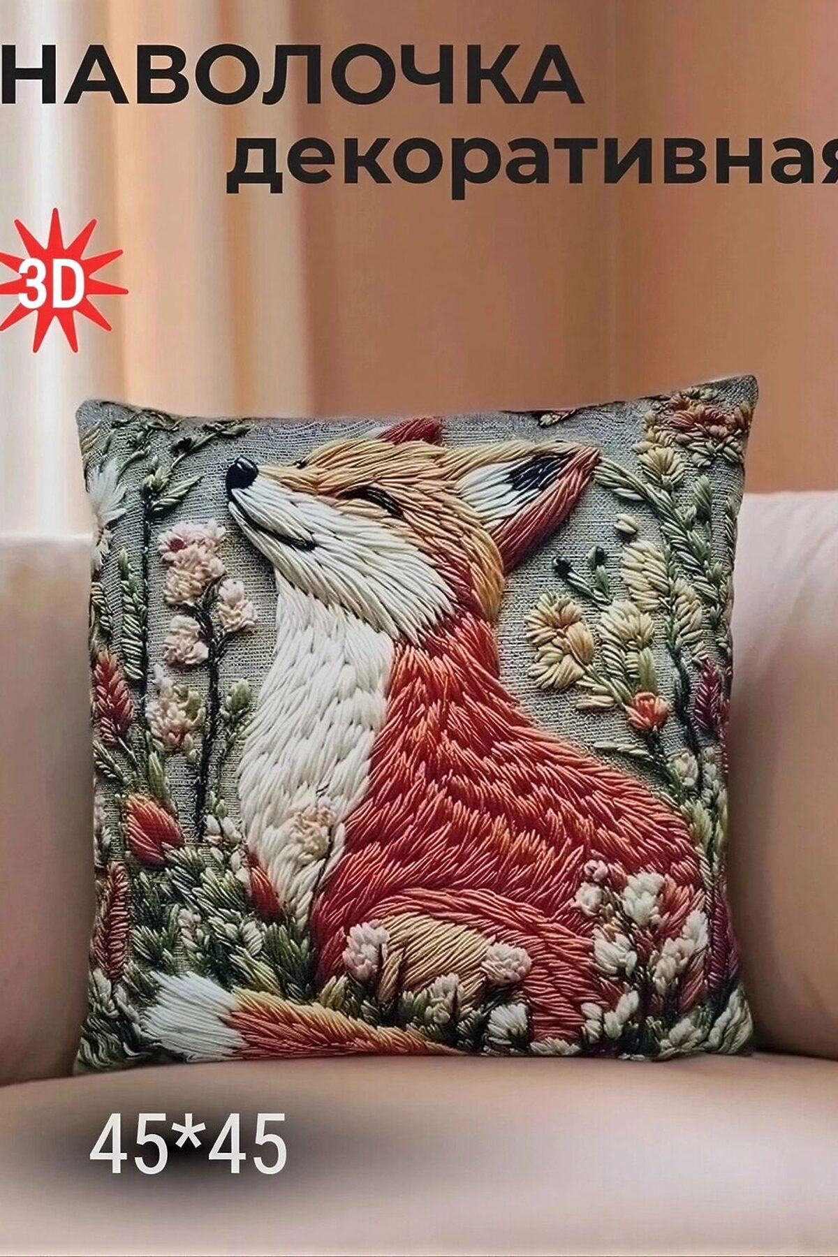Декоративная наволочка с 3D‑эффектом (45 45 см) стильное решение для обновления интерьера. Объёмный принт создаёт эффект глубины, придавая подушке выразительный вид и добавляя пространству индивидуальности. Изделие выполнено из плотного износостойкого материала который хорошо держит форму, не мнётся и сохраняет яркость цвета даже после многократных стирок. Удобная скрытая молния в тон полотна обеспечивает аккуратный внешний вид и лёгкость использования. Наволочка проста в уходе: допускается стирка при 30C, быстрая сушка без глажки. Подходит для оформления дивана, кресла или кровати в гостиной, спальне, детской, на веранде или даче. Сочетается с разными стилями интерьера от скандинавского до этнического. Мягкая на ощупь, она не только украшает пространство, но и повышает комфорт зоны отдыха. Отличный выбор для тех, кто хочет быстро преобразить обстановку или подобрать оригинальный подарок на новоселье или праздник.