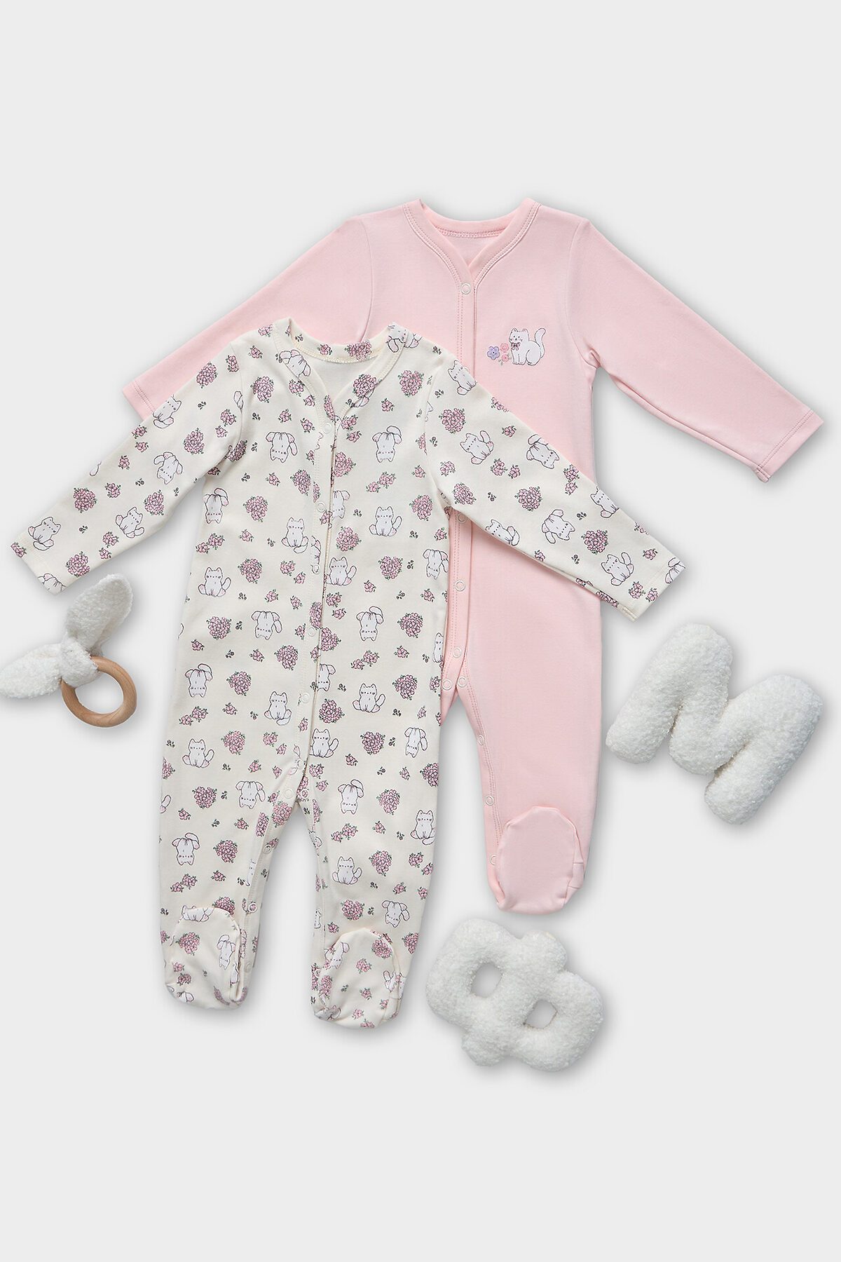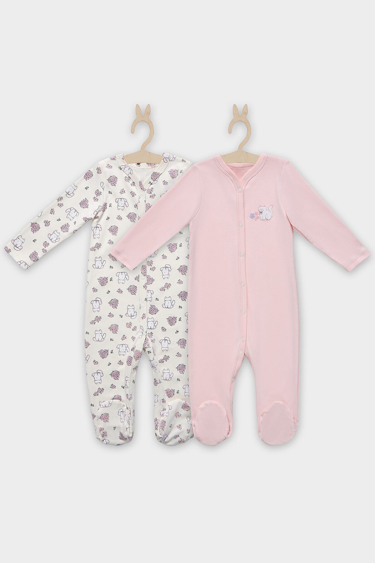 Комбинезон нательный детский (2шт.) MARK FORMELLE, котики с цветами на молочном +розовый