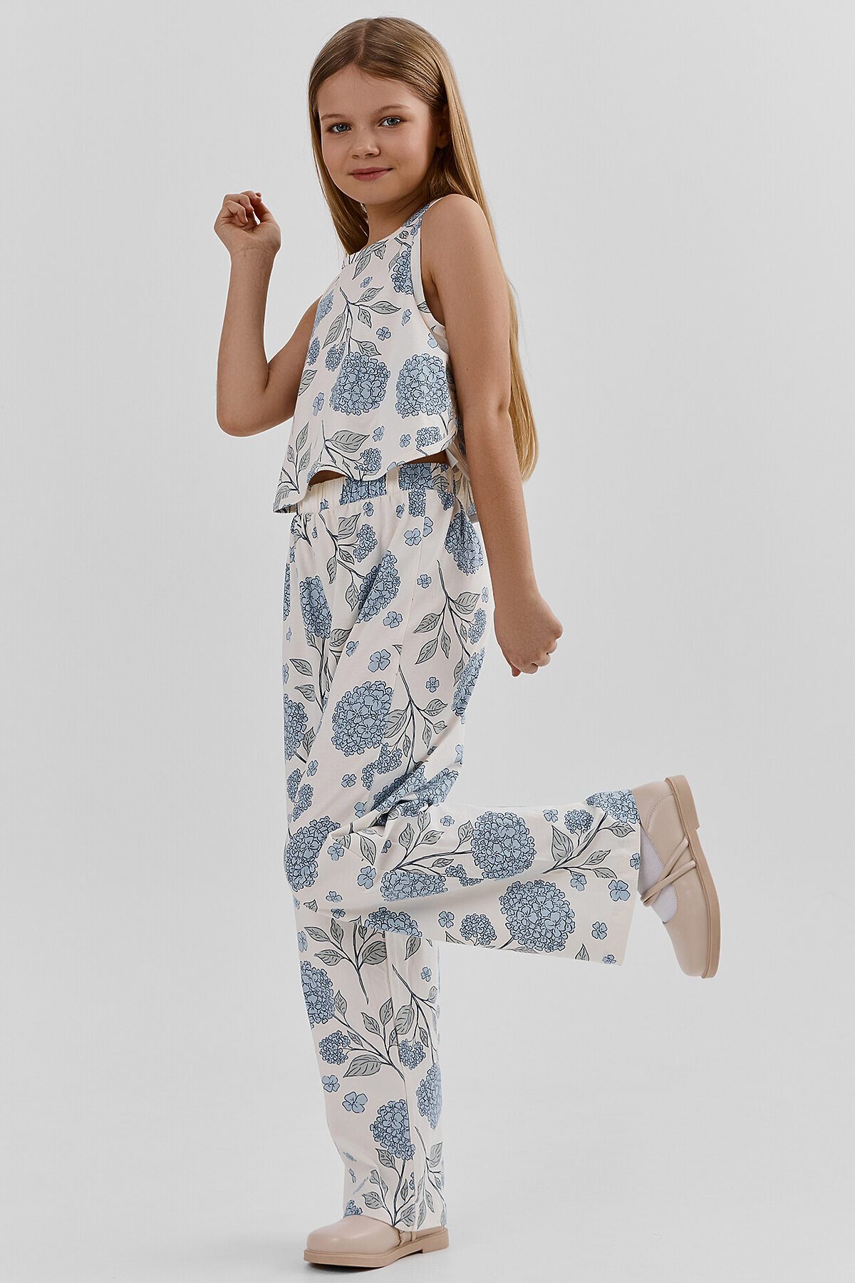 Комплект для девочек (топ, брюки) MARK FORMELLE, голубые цветы на молочном