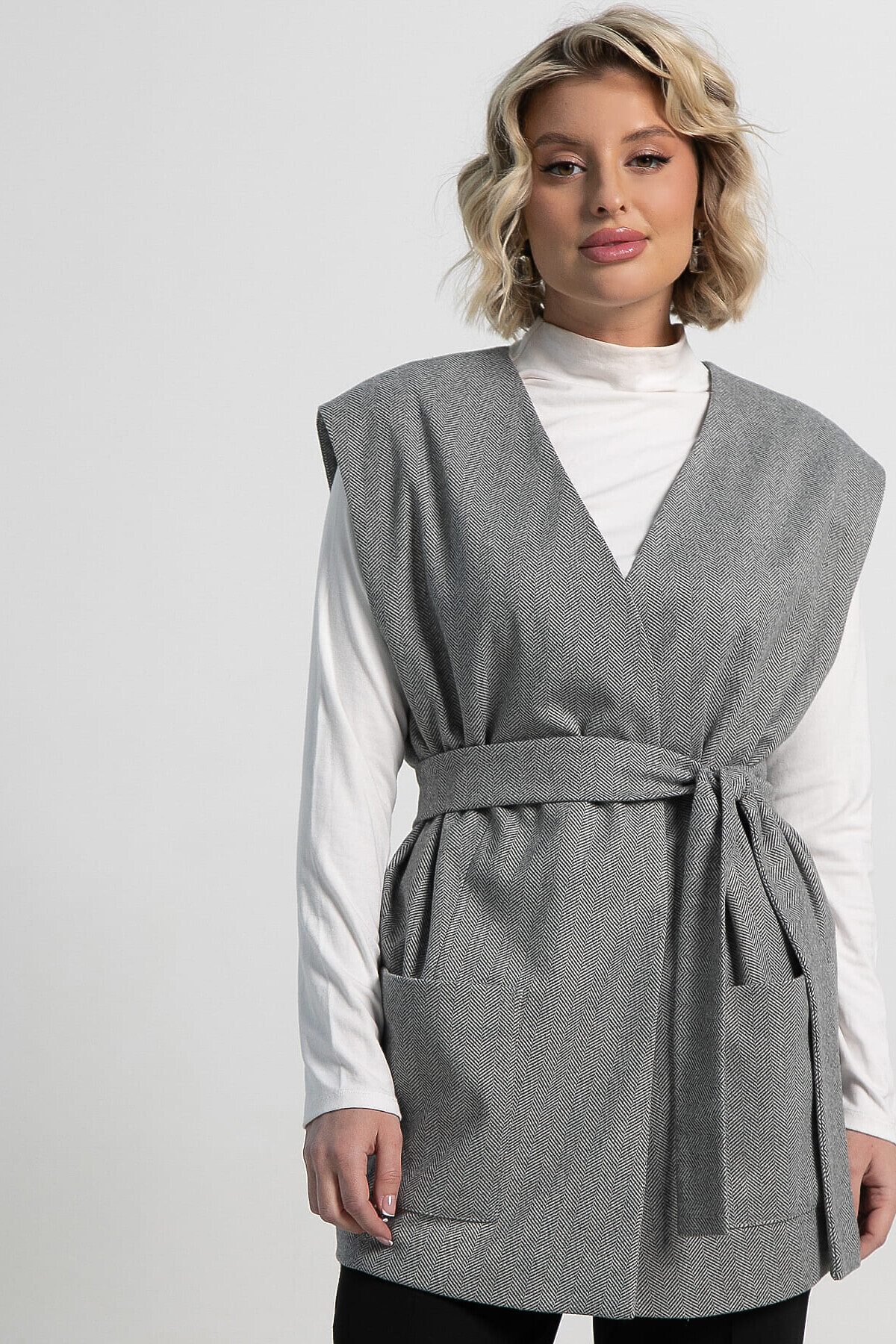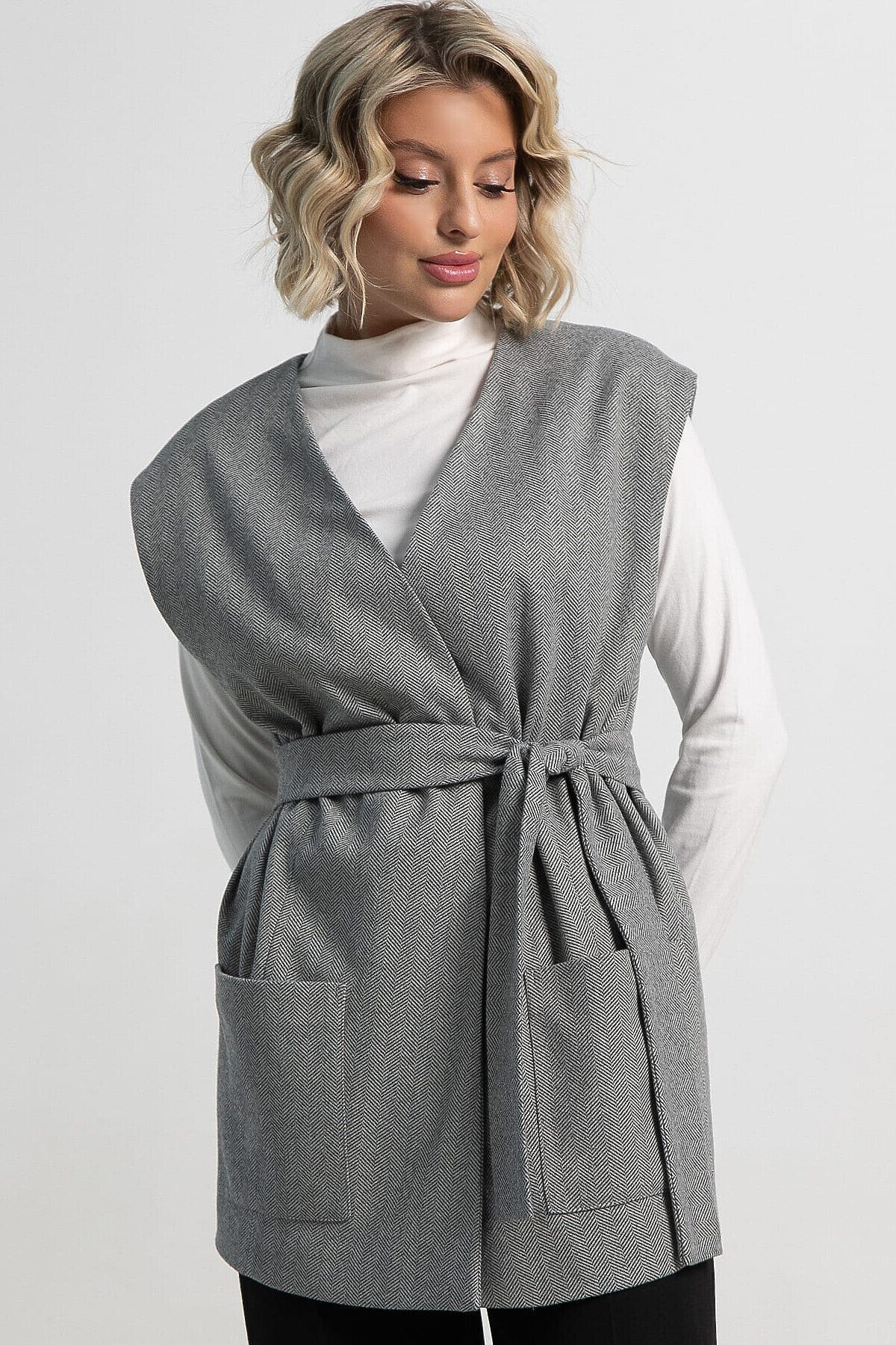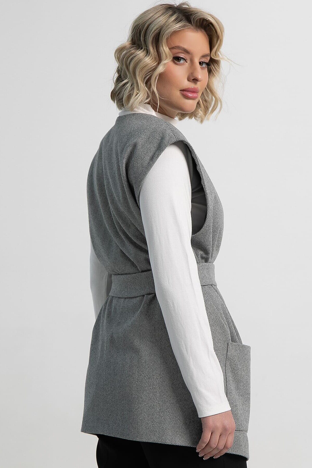 Свободный жилет из плотного трикотажного полотна — универсальный и стильный элемент гардероба. Модель без застежек, фиксируется поясом из основной ткани, который входит в комплект. Перед жилета немного длиннее спинки на 5 см. Есть приятная подкладка для комфорта и аккуратности. Идеальный выбор для повседневного образа: отлично подходит как для офиса, так и для прогулок на улице.