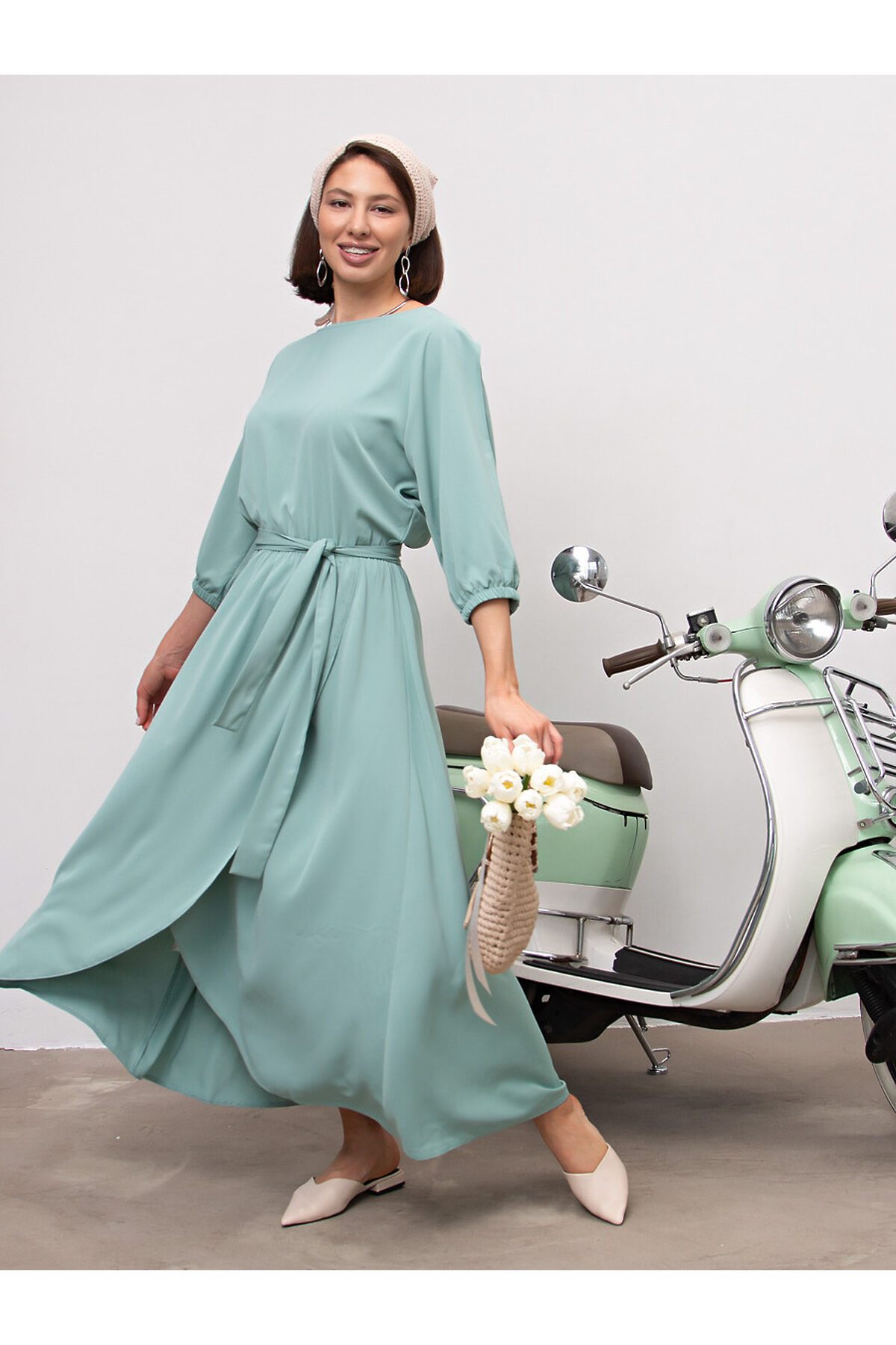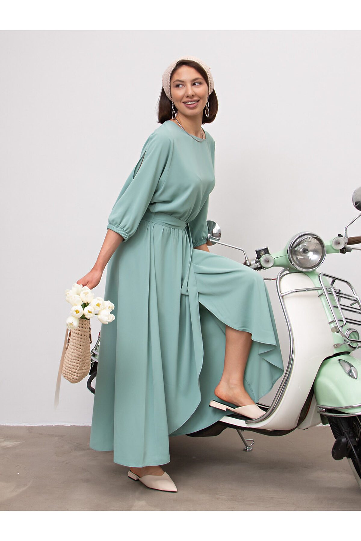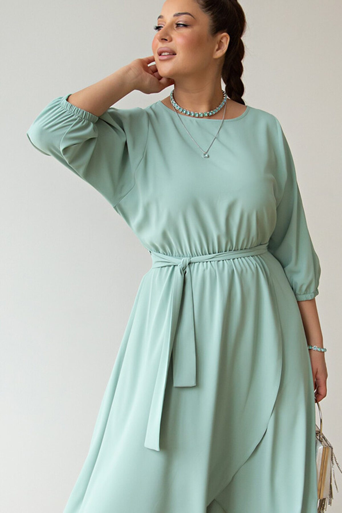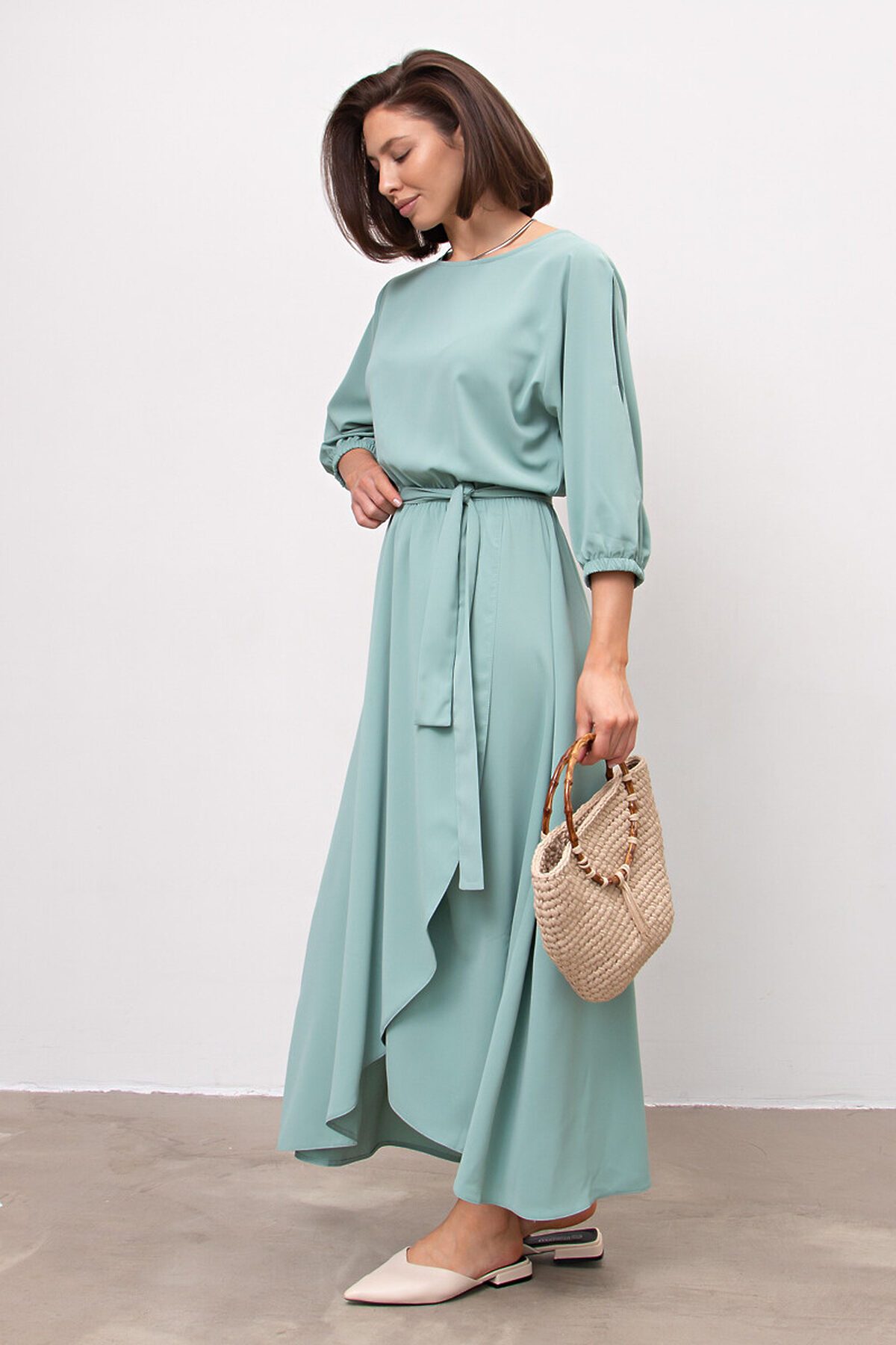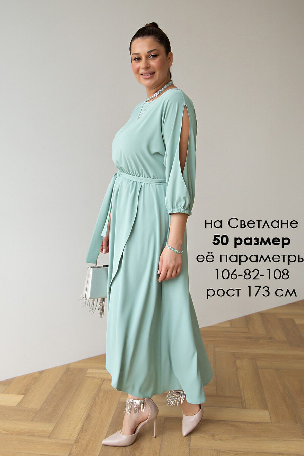 Стильное праздничное платье макси свободного силуэта с акцентными рукавами. Платье вечернее длинное без застёжки легко надевать и снимать. Будет прекрасным решением на торжество, свадьбу для подружек невесты, выпускной, если дополнить его подходящей обувью и аксессуарами. Подойдет для разных типов фигур, скроет нюансы при необходимости. Горловина — лодочка. В комплекте тканевый пояс.