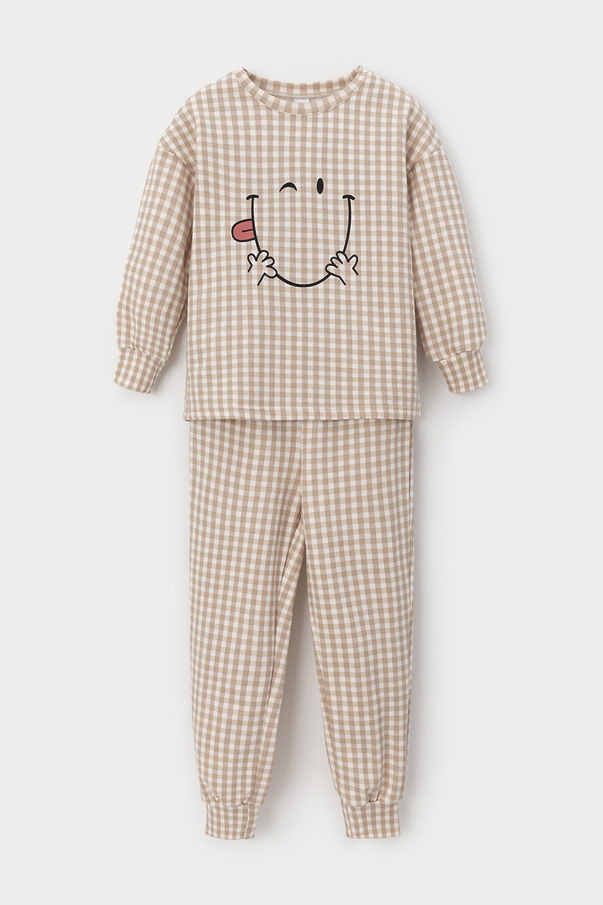 Тёплая пижама с начёсом из натурального хлопка. Джемпер с длинными спущенными рукавами и брюки с эластичной резинкой в поясе. Мягкие манжеты на рукавах и по низу брюк. Оригинальные набивка и принт выполнены из стойких гипоаллергенных текстильных красителей. Изделие сохраняет цвет и форму после многократных стирок. Все трикотажные полотна производятся в соответствии с нормами швейцарского сертификата ЭкоТекс.