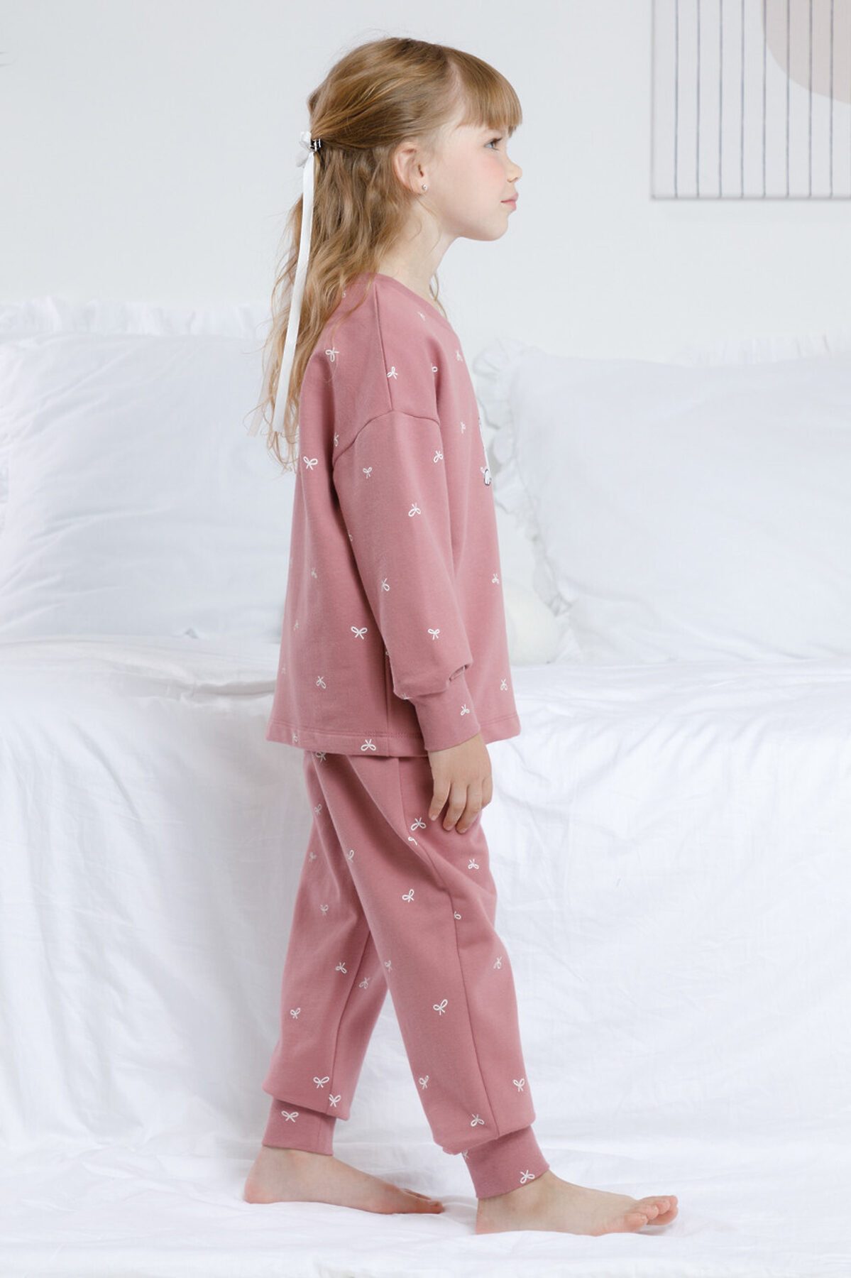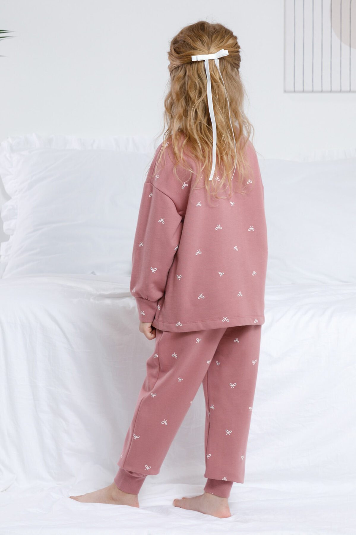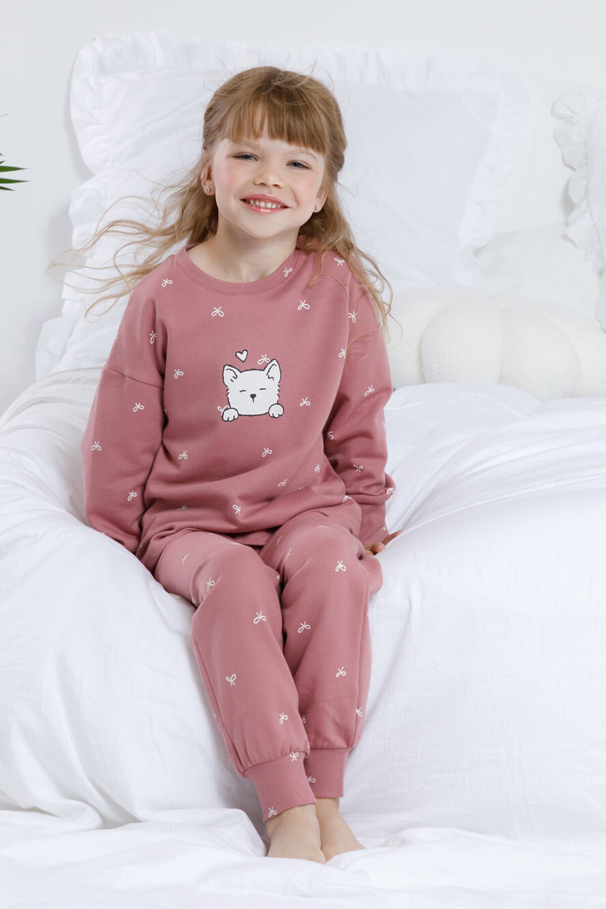 Трикотажная пижама с начёсом из натурального хлопка. Джемпер с длинными спущенными рукавами и брюки с эластичной резинкой в поясе. Мягкие манжеты на рукавах и по низу брюк. Оригинальные набивка и принт выполнены из стойких гипоаллергенных текстильных гипоаллергенных красителей. Изделие сохраняет цвет и форму после многократных стирок. Все трикотажные полотна производятся в соответсвии с нормами швейцарского сертификата ЭкоТекс.