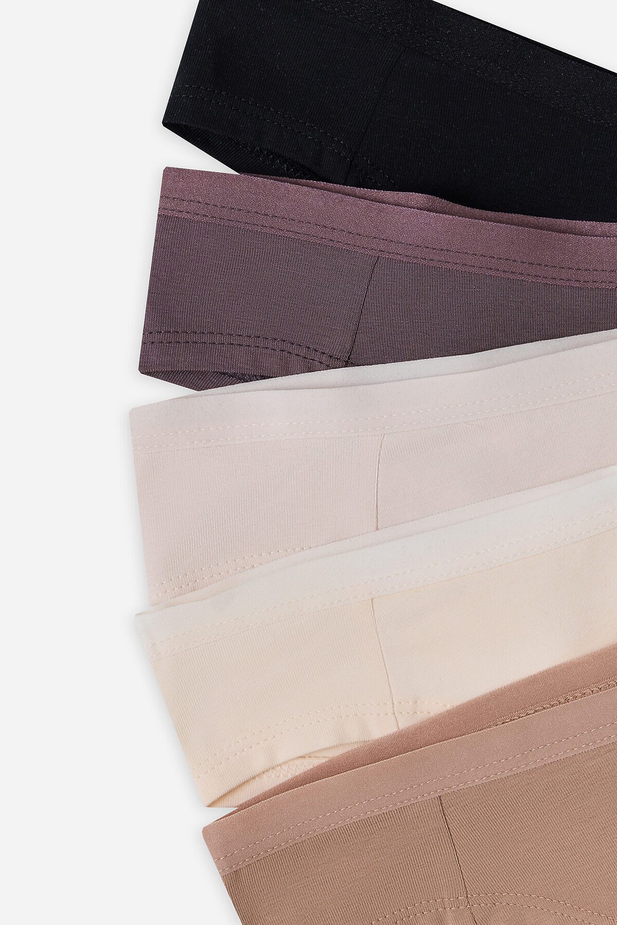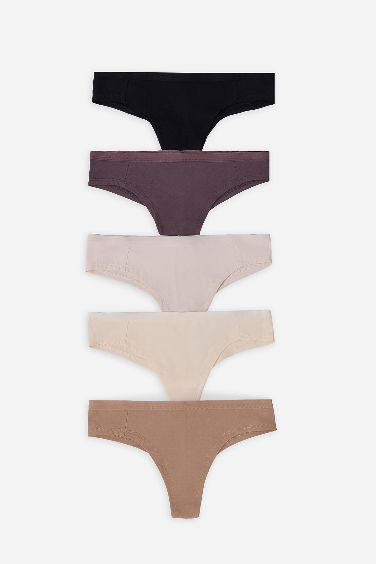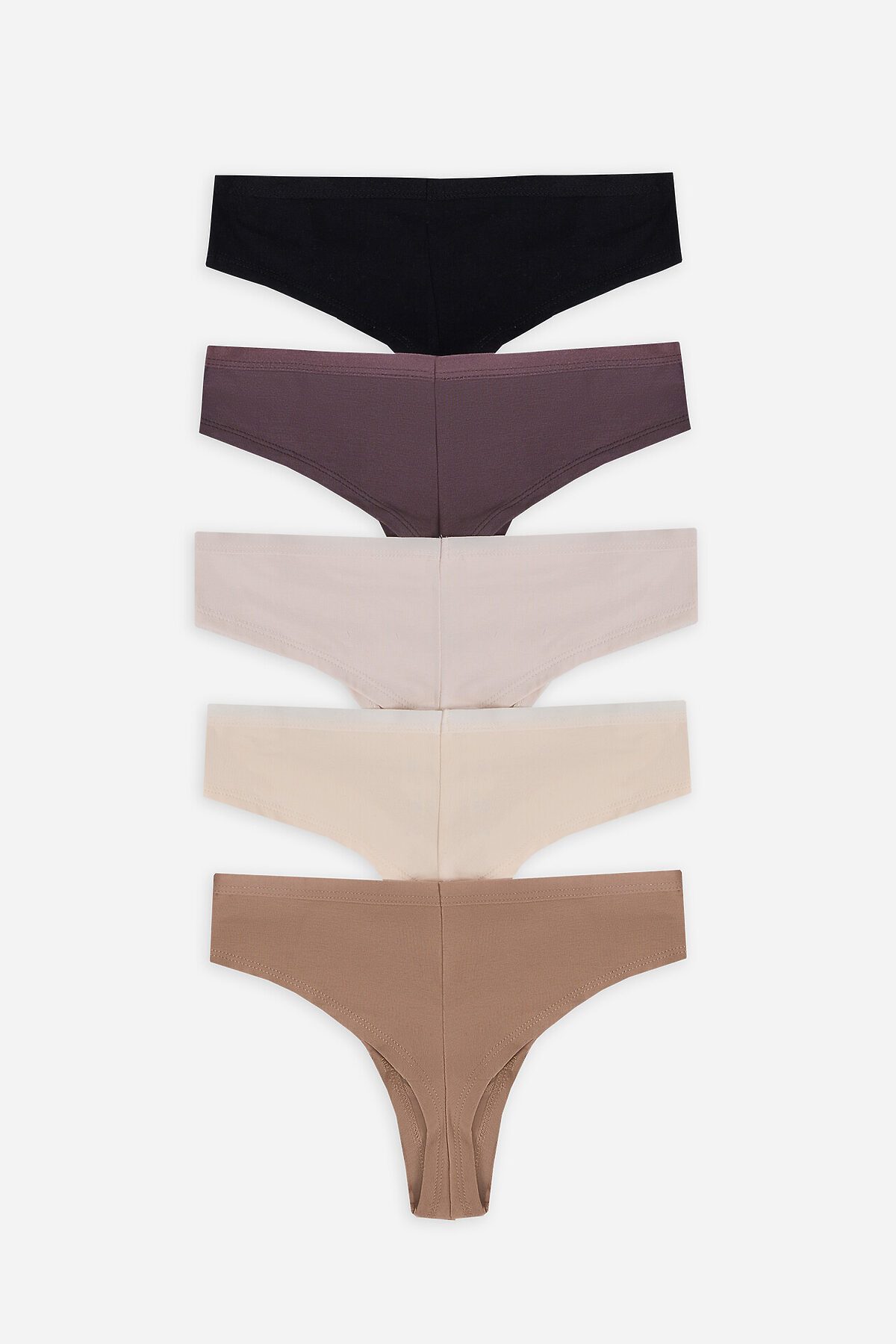 Мультипак (5 штук) хлопковых трусиков-бразилиана из натурального, гипоаллергенного, дышащего полотна. Линия талии занижена. На верхнем срезе – тонкая эластичная тесьма, по ножкам – шов вподгибку. Почти не заметны под одеждой!