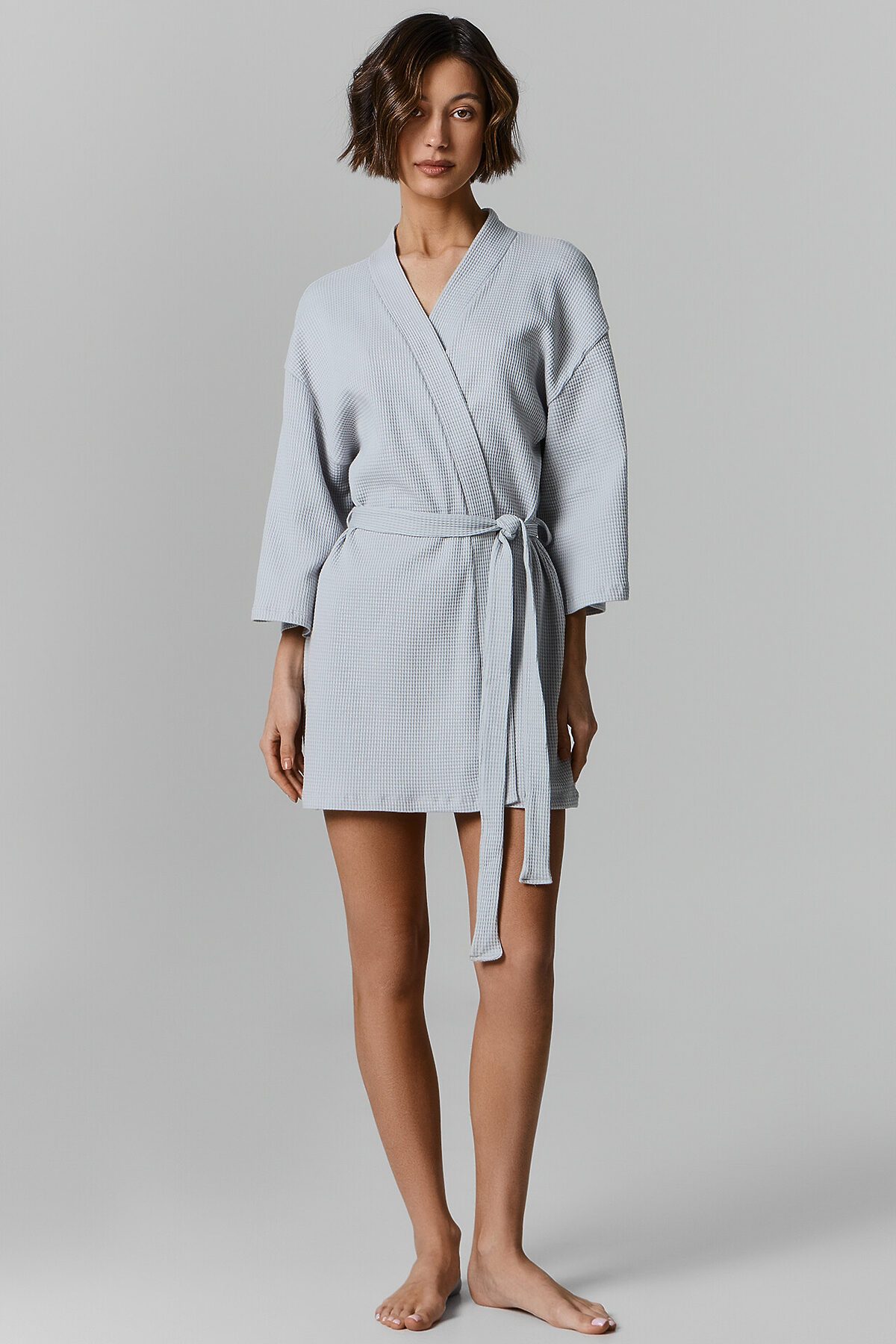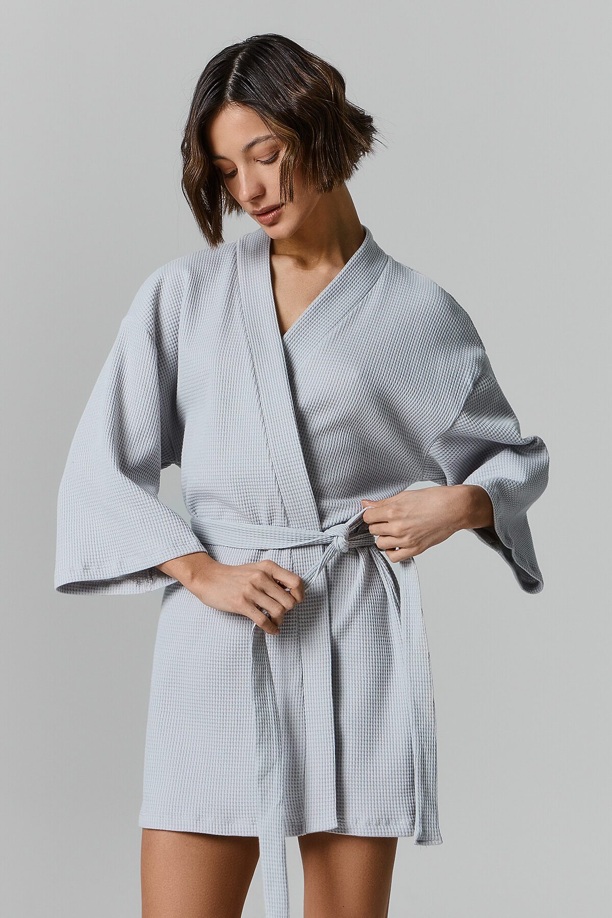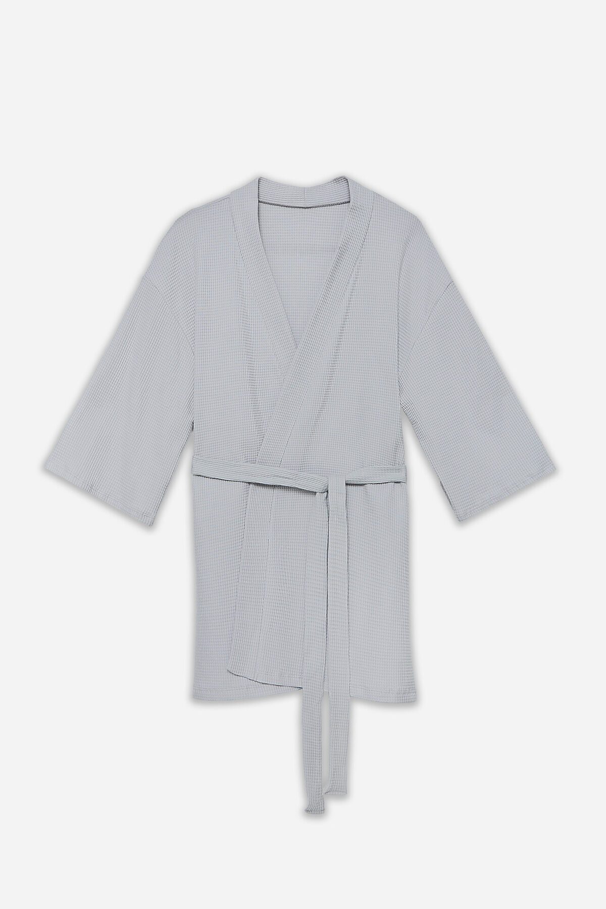 Вафельный халат — это воплощение домашнего уюта и лёгкости. Модель прямого укороченного силуэта со спинкой без швов обеспечивает комфорт и свободу движений. Халат с запахом и съемным поясом, который продет в шлевки по бокам, позволяет легко регулировать посадку и создавать расслабленный образ.