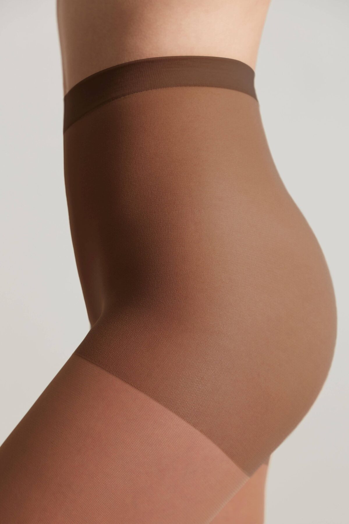 Матовые полупрозрачные колготки IDEAL связаны из мультифиламентных нитей с текстурированной поверхностью и эффектом "ultimate matt". Полотно создает особый эффект пудры, который маскирует мелкие несовершенства и делает кожу ног идеальной. Усиленная верхняя часть с мягкой компрессией формирует линию талии и бедер, подчеркивая силуэт. • идеально матовые • скрывают мелкие несовершенства кожи • усиленная верхняя часть в виде шортиков • мягкая компрессия по линии талии и бедер • идеальное облегание • комфортный 3D-шов • уплотненный мысок • элегантная классика • must-have на каждый день и для особого случая.