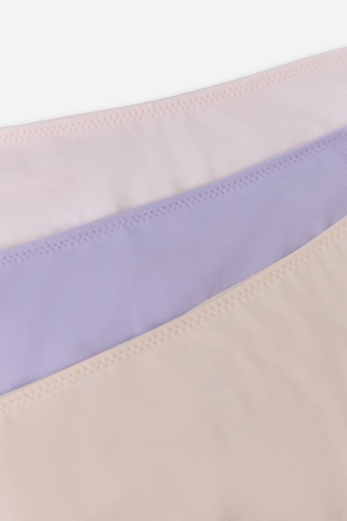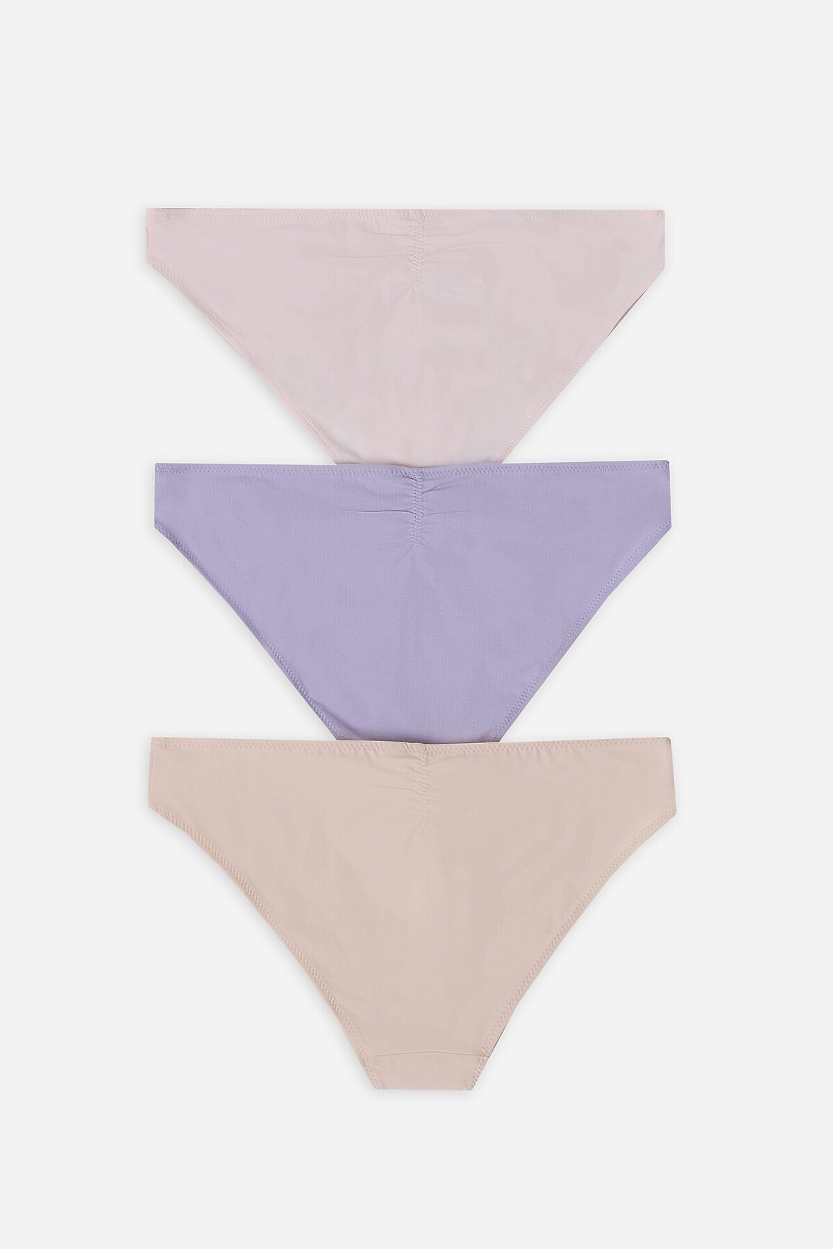 Набор женских трусиков-слипов сочетает комфорт, удобную посадку и элегантные детали. Модели со средней линией талии обеспечивают мягкое прилегание, позволяя чувствовать себя комфортно в течение всего дня. Изготовленные из кулирного материала, трусики отличаются приятной текстурой, воздухопроницаемостью и нежностью на ощупь, делая их идеальным выбором для повседневного ношения. На задней детали в верхней части оформлена сборка с эластичной тесьмой, которая добавляет изысканный акцент и подчёркивает женственный силуэт. Талия и ножки обработаны швом вподгибку с эластичной тесьмой внутри, обеспечивая мягкую и удобную посадку, которая не сдавливает и не раздражает кожу. Этот набор — практичный и стильный вариант для тех, кто ценит комфорт, качество и красивый дизайн в повседневном белье! В наборе: 3 шт.
