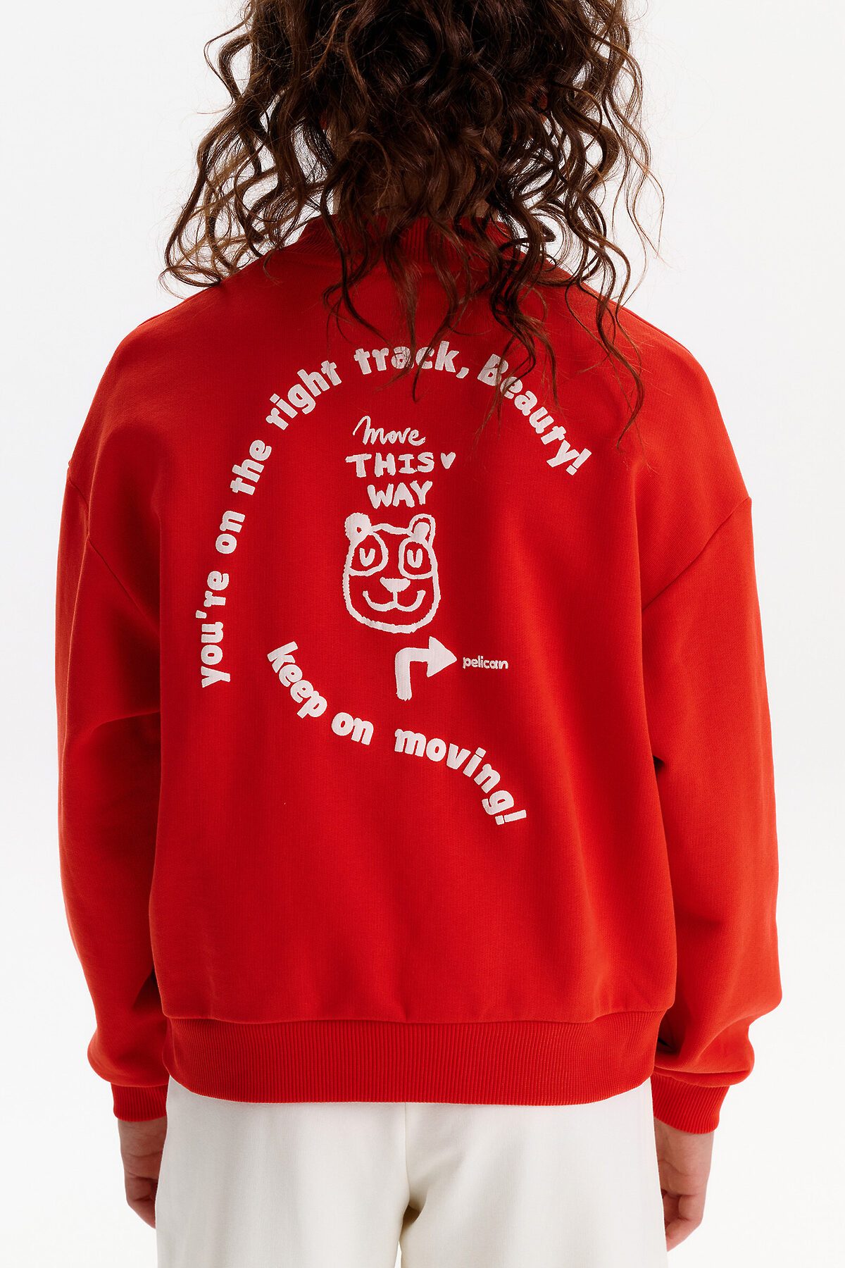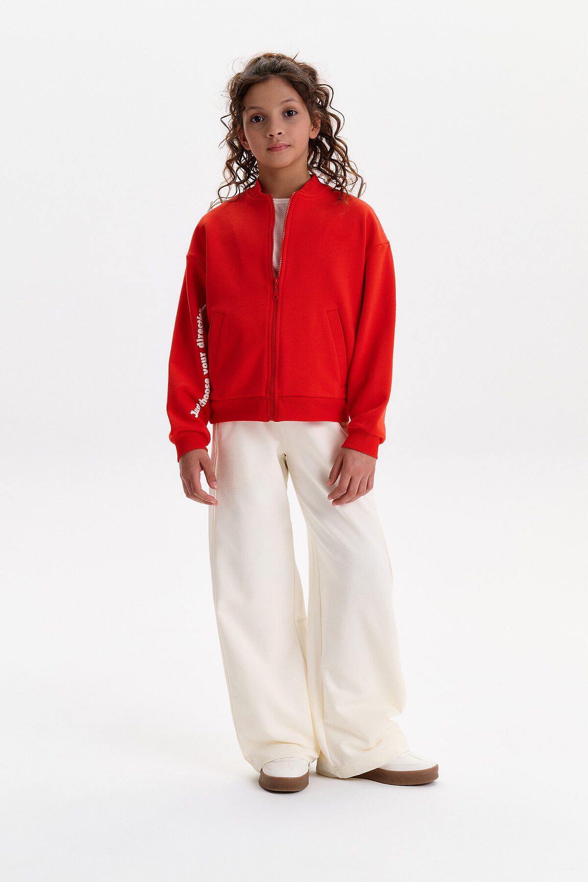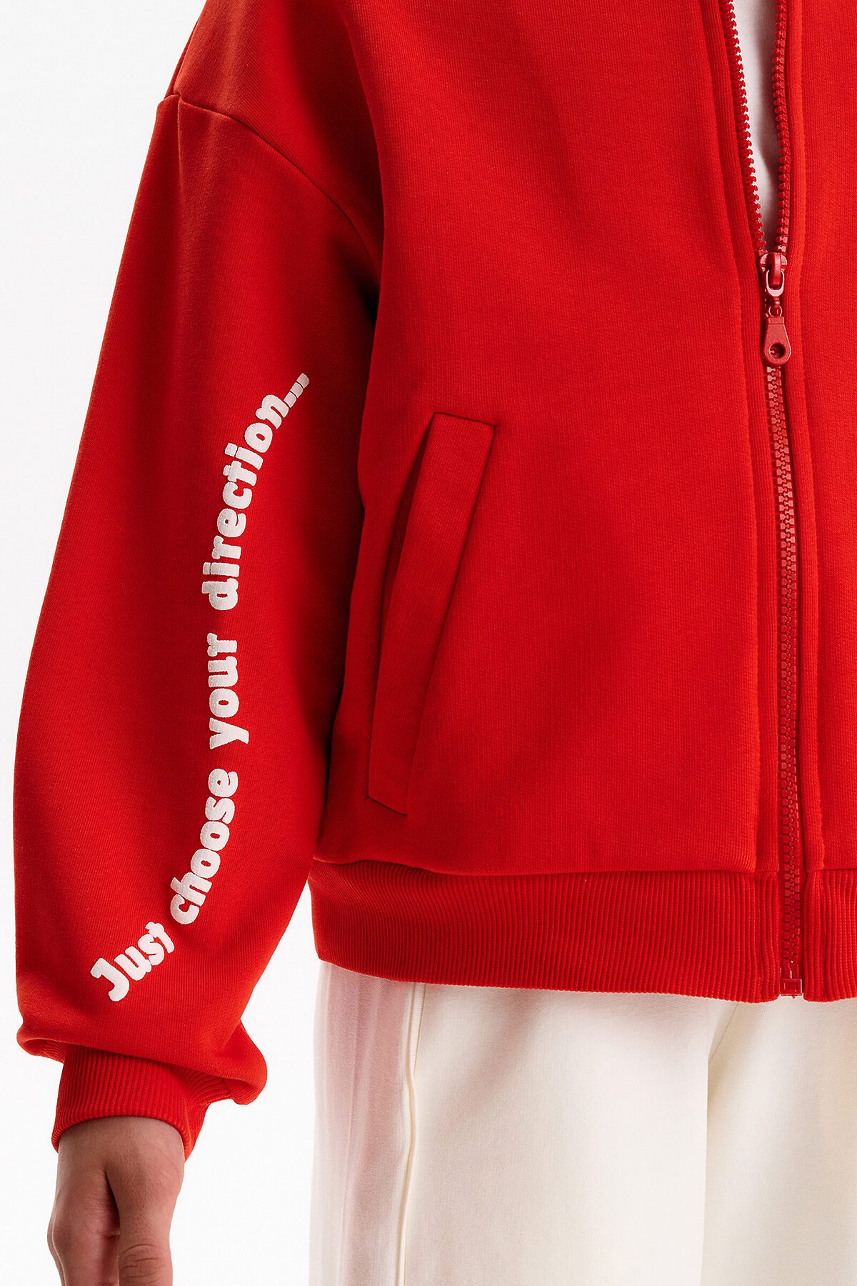 Толстовка oversize для девочки. Модель средней длины из мягкого хлопкового футера, плотностью 342 гр/кв м. Свободный крой с объёмом по линии груди и низа, мягкое спущенное плечо. Застёжка на центральную молнию. Узкий воротник-стойка и плотные манжеты на рукавах и по низу изделия из эластичной рибаны создают стильную имитацию бомбера. По бокам — удобные прорезные карманы с листочки. Перевод на рукаве: просто выбери свое направление... Перевод на спинке: ты на правильном пути, красотка! продолжай двигаться!
