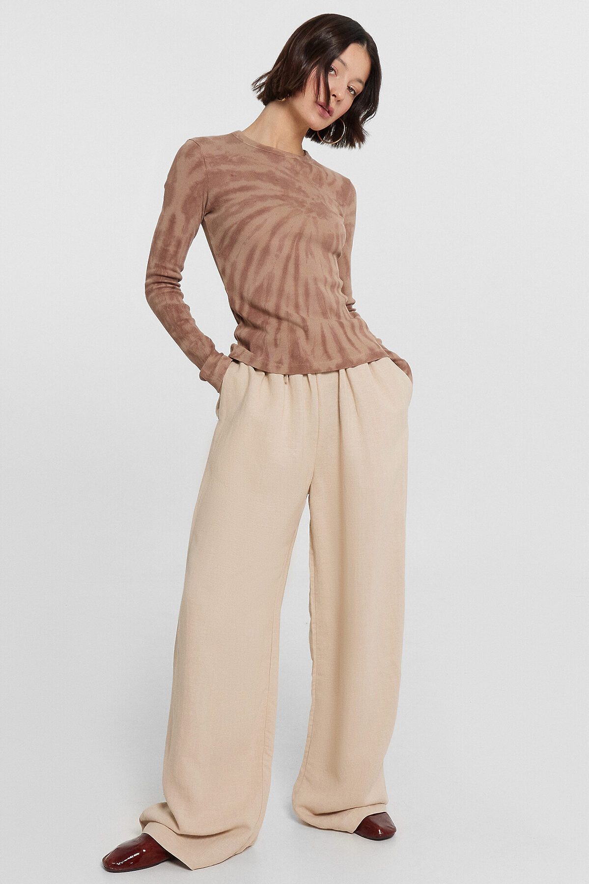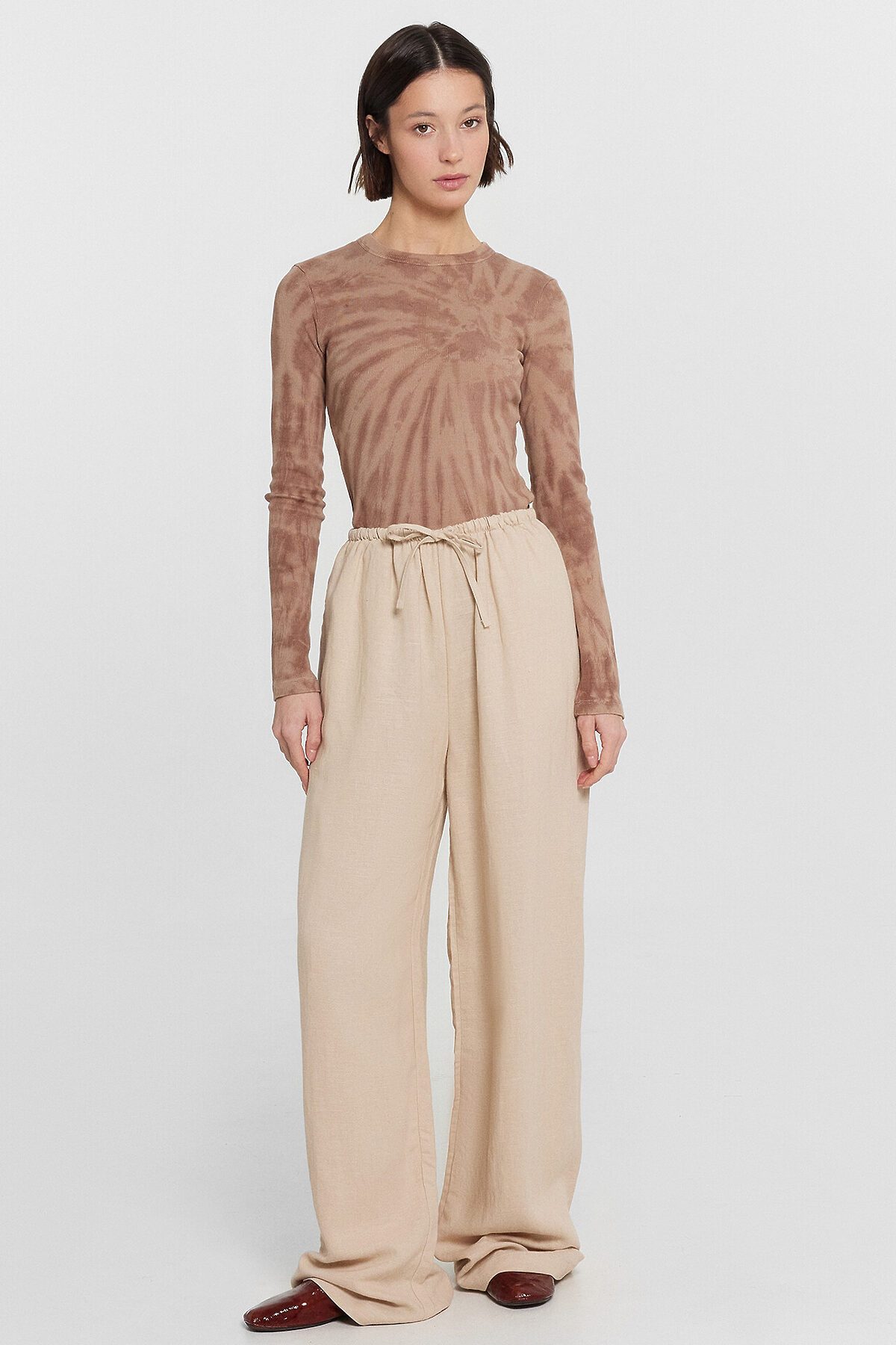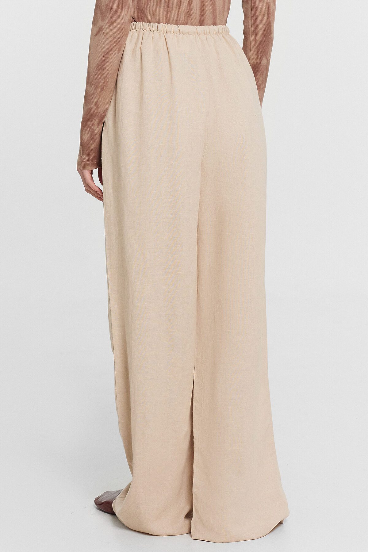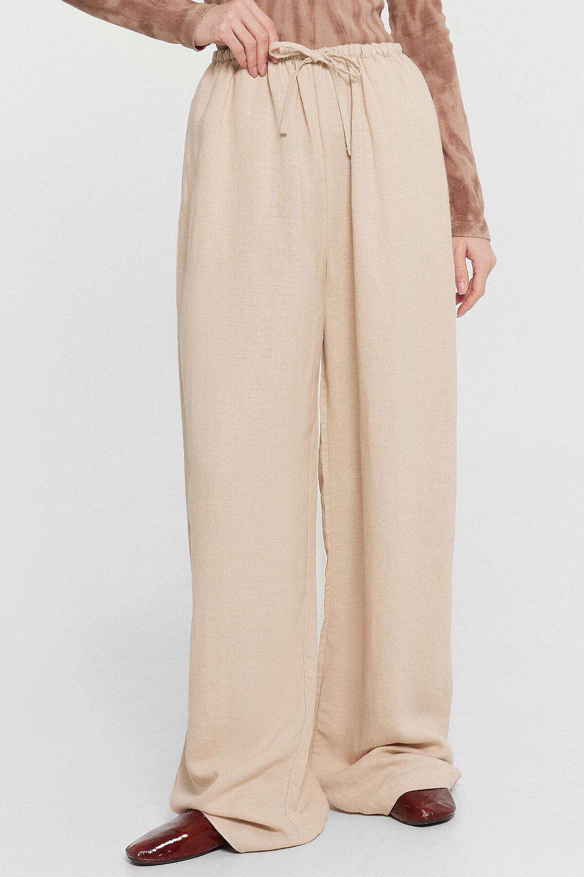 Женские брюки свободного силуэта станут идеальным дополнением вашего гардероба. Модель с эластичным поясом на кулиске и боковыми карманами обеспечивает максимальный комфорт и практичность в носке. Эти брюки выполнены из натурального льна и вискозы, что делает их особенно приятными к телу. Натуральный лен известен своими дышащими свойствами и способностью сохранять прохладу в жаркую погоду. Он также гипоаллергенен и экологически чист. Вискоза, в свою очередь, добавляет ткани мягкость и легкий блеск, обеспечивая дополнительный комфорт и стиль. Такие брюки идеально подойдут для создания как повседневных, так и более нарядных образов.