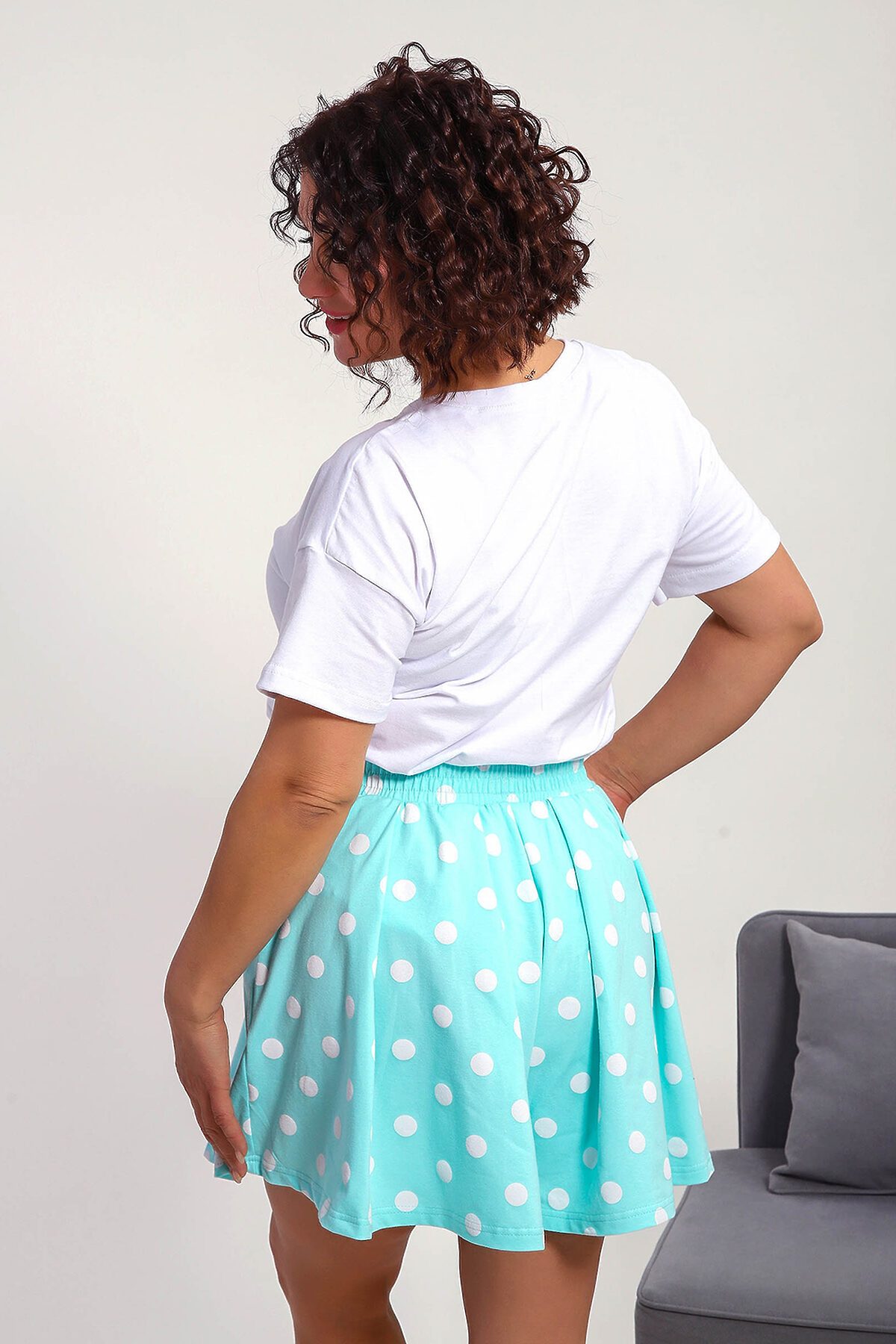 Пижама женская с шортами-юбка и футболкой со спущеным рукавом. Данная модель выполнена из эластичного трикотажного полотна кулирка ( хлопок 96%, лайкра 4%). На футболке присутствует принт. Шорты с поясом и карманами. Складки на шортах придают воздушность и комфорт, свобода в движениях. Пижама порадует вас.