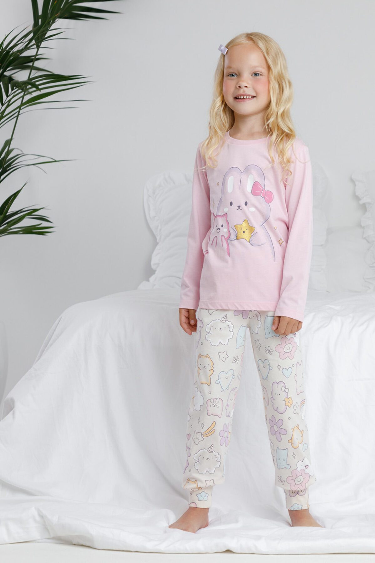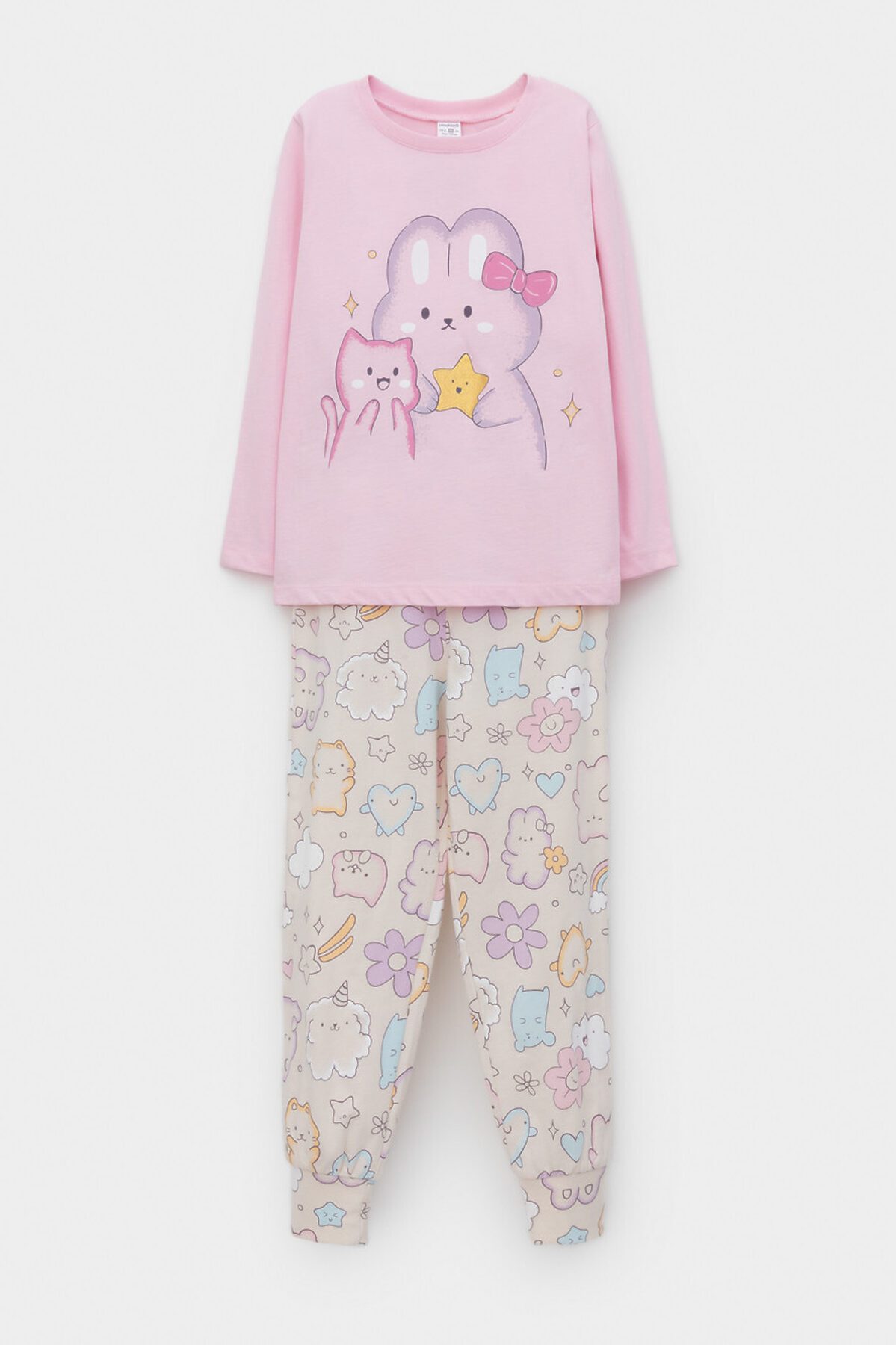 - АртикулК 1606/светло-розовый,цветные зверята пижама