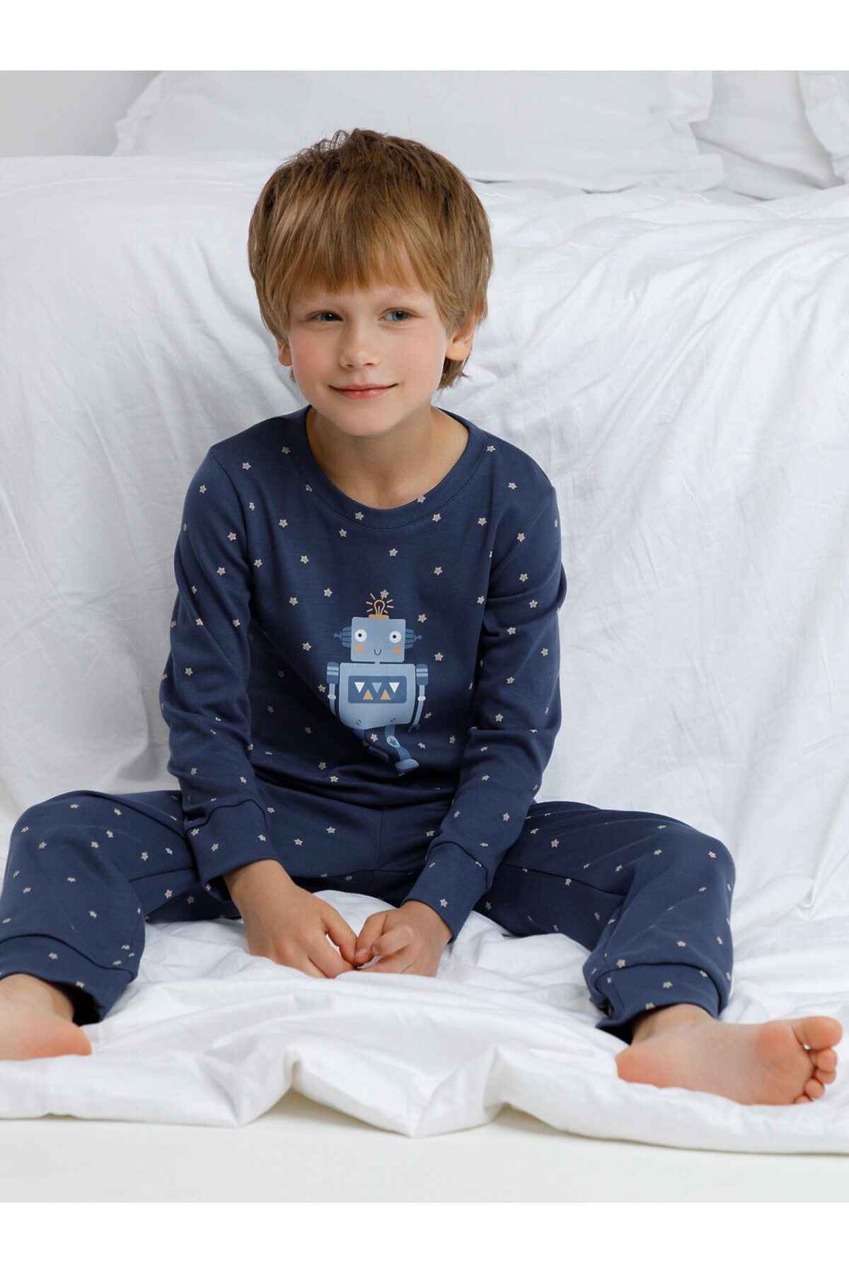 Трикотажная пижама из натурального хлопка. Джемпер с длинными втачными рукавами и брюки с эластичной резинкой в поясе. Мягкие манжеты на рукавах и по низу брюк. Оригинальная набивка и принт выполнены из стойких текстильных гипоаллергенных красителей. Изделие сохраняет цвет и форму после многократных стирок. Все трикотажные полотна производятся в соответсвии с нормами швейцарского сертификата ЭкоТекс.