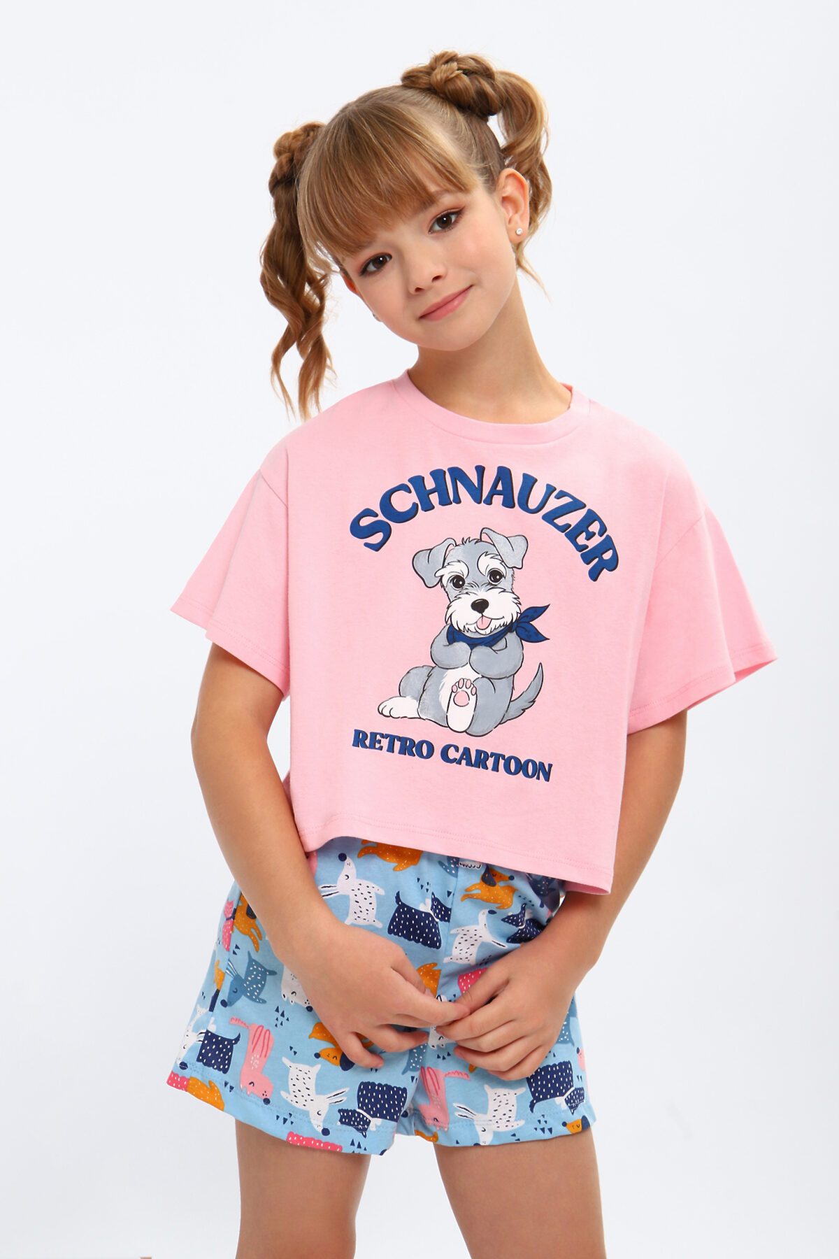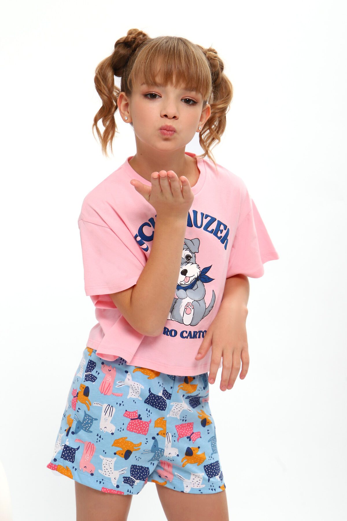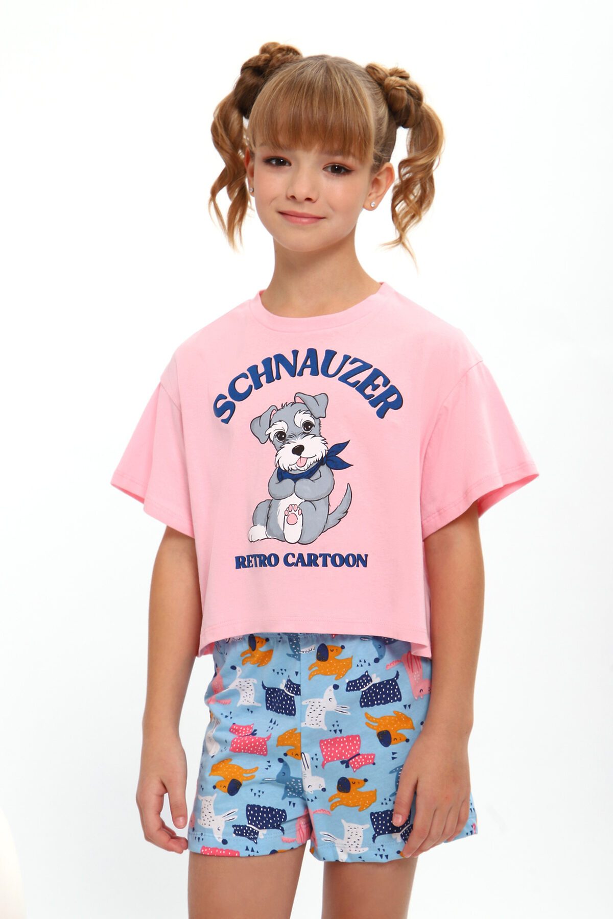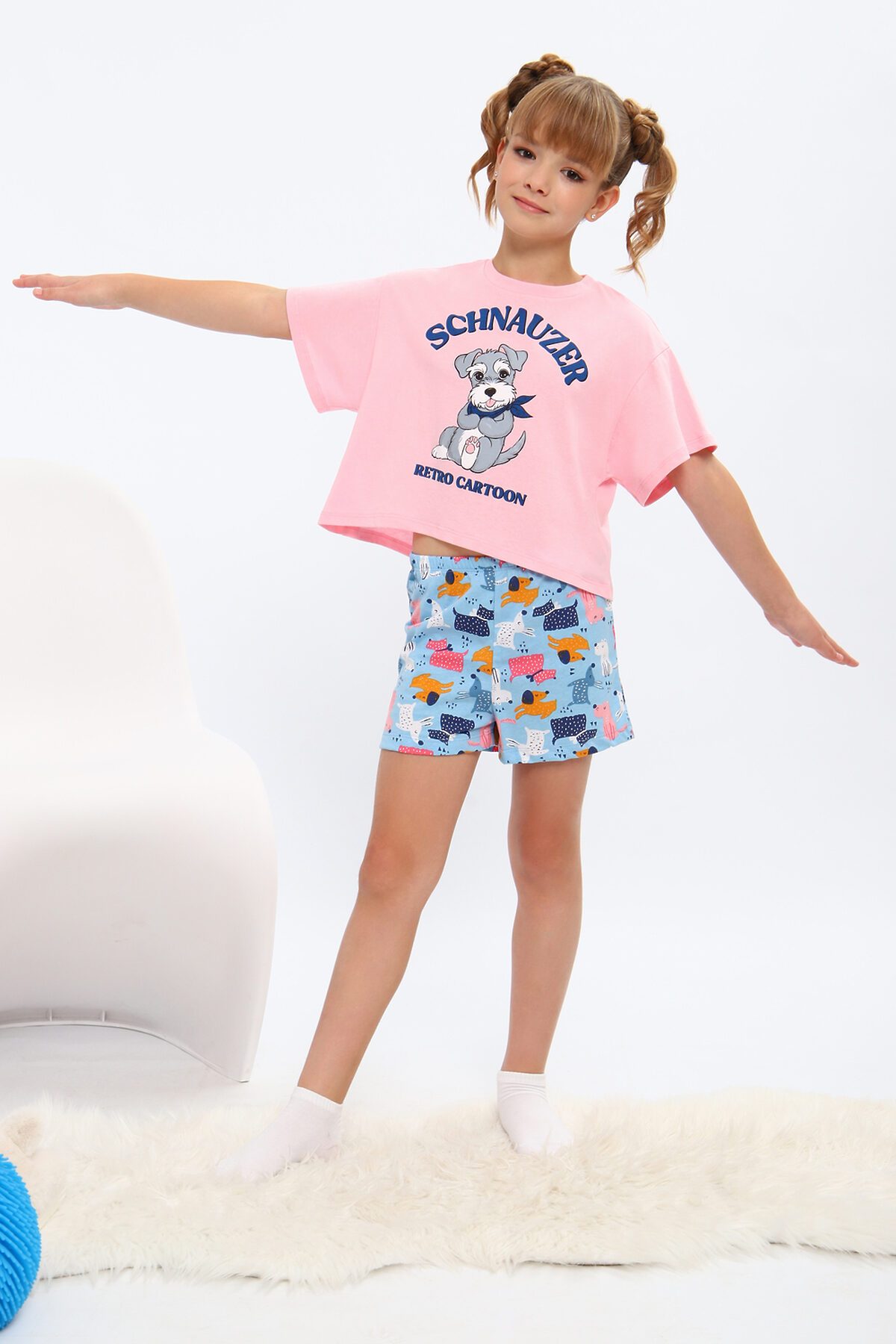 Пижама с шортами арт. ПД-019-081 НАТАЛИ, розовый/собачки голубые